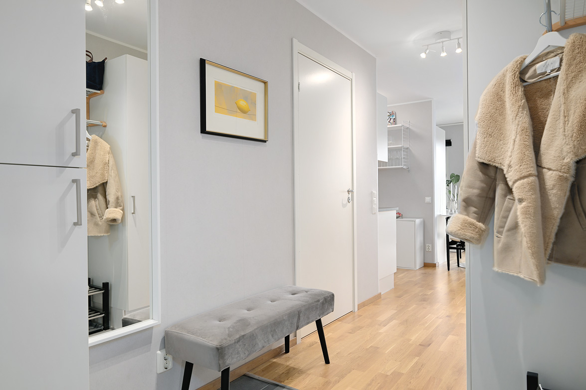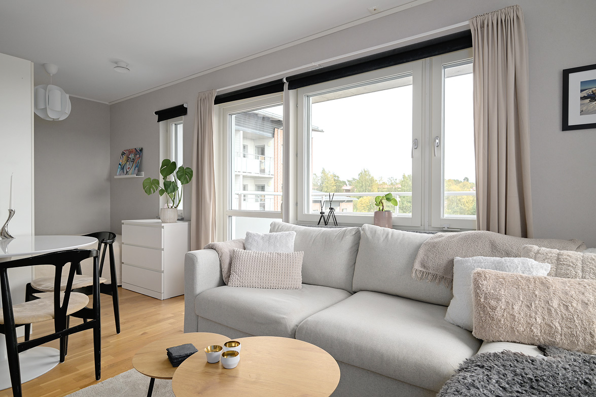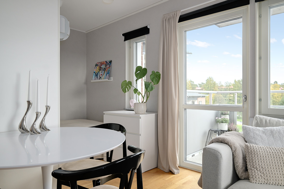 Välkommen till en ljus och välplanerad etta på sjunde våningen, där du får både fin utsikt över grönskande trädtoppar och en trevlig balkong! På Porfyrvägen 3C bor du i ett av områdets mest attraktiva lägen, med naturen runt knuten, trevliga promenadstråk och närhet till universitetet, flygplatsen, sjukhuset och goda kommunikationer. Lägenheten passar perfekt för dig som vill ha ett modernt, smart planerat boende – eller som söker en trygg investering i ett område som alltid är populärt bland studenter. Tack vare fönster i tre väderstreck fylls bostaden av ljus hela dagen, och med den fria utsikten upplevs den större och luftigare än vad kvadratmetrarna antyder. Genomgående ekparkett i hela bostaden förutom i hall och badrum. Den generösa hallen erbjuder gott om förvaringsmöjligheter genom sin förlängda planlösning – perfekt för ytterkläder, skor och extra förvaring. Badrummet är rymligt och fräscht med klinkergolv samt halvkaklade väggar. Här finns wc, handfat och dusch. Badrummet är förberett för installation av tvättmaskin. Den öppna bostadsytan rymmer allt du behöver i ett hem. Här samsas köket i en smart vinkel med plats för matbord, en mindre soffhörna samt en naturligt avskild sovalkov. Köket är modernt med gott om skåp och arbetsytor, utrustat med spishäll, ugn, kombinerad kyl/frys och diskmaskin. Balkongen är en riktig pärla – rymlig, insynsskyddad och med härlig förmiddagssol. BRF Cykeln ligger i ett lugnt och tryggt område med närhet till universitet, bussar, cykelvägar och service. Föreningen är stabil och välskött med bland annat cykelförråd, soprum och möjlighet till carport. Här tillåts juridisk person och det finns goda möjligheter till andrahandsuthyrning. Varmt välkommen på visning!