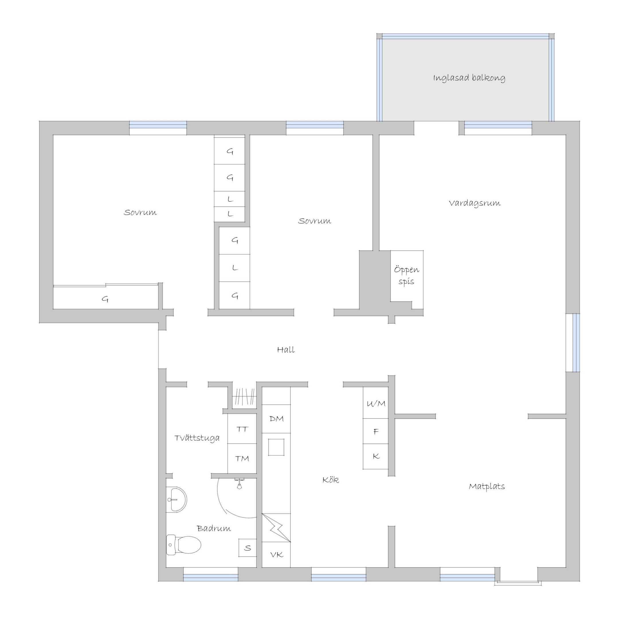 Hall Välkomnande hall med ljus mönstrad tapet. Direkt när man kommer in i hallen så har man genomsyn genom lägenheten och vidare ut genom gavelfönstret i vardagsrummet, det fina ljusflödet ger en inbjudande känsla. Hallen har en fin avhängningsmöjlighet för ytterkläder, i taket sitter det infälld spotlightbelysning. Hallen har liksom lägenhetens övriga bostadsrum ekparkettgolv och extra takhöjd. Vardagsrum och matrum Det stora vardagsrummet som ligger i fil med matrummet ger lägenheten en härlig rymd och fina utrymmen för socialt umgänge. Dessa båda rum har stora fönster i tre väderstreck. Vardagsrummet har en vacker öppen spis, det har även utgång till en stor inglasad balkong mot syd-sydväst. Här får man sol hela dagen till sena kvällen. Matplatsen som ligger i fil med vardagsrummet har en bred anslutning mot köket, matrummet har även en fransk balkong mot älven. Kök Smakfullt Nordenkök i vitt från 2021. Köket är stilrent och påkostat, bänkskivorna och stänkskydden är i silestone och i taket sitter det infälld spotlightbelysning. Här finns all maskinell utrustning man kan önska sig, köket har hög maskinell standard med kyl och frys i fullhöjd, induktionshäll med fläkt, Miele diskmaskin, vinkyl samt dubbla ugnar i högskåp, den ena av dessa ugnar fungerar även som micro. Badrum Stort helkaklat badrum med golvvärme, klinkergolvet är grått, väggarna är klädda med vitt kakel och i taket sitter det infälld spotlightbelysning. Tvättavdelningen har tvättmaskin och tumlare, ovan dessa har man en arbetsbänk och förvaring. Längre in i badrummet finns vikdusch, wc och tvättställ med kommod och ett badrumsskåp med speglar och belysning. Badrummet är försett med fönster. Sovrum Det första sovrummet är stort. Rummet har ljusa väggar, två fasta garderober och ett dubbelt linneskåp, här har man även en bred skjutgarderob vilket sammantaget ger gott om plats för kläder och förvaring. Sovrum två har även det ljusa väggar, detta sovrum har två fasta garderober och ett linneskåp. Detta är en mycket ljus och synnerligen tilltalande gavellägenhet med ett fint läge vid älven - helt nära centrum.