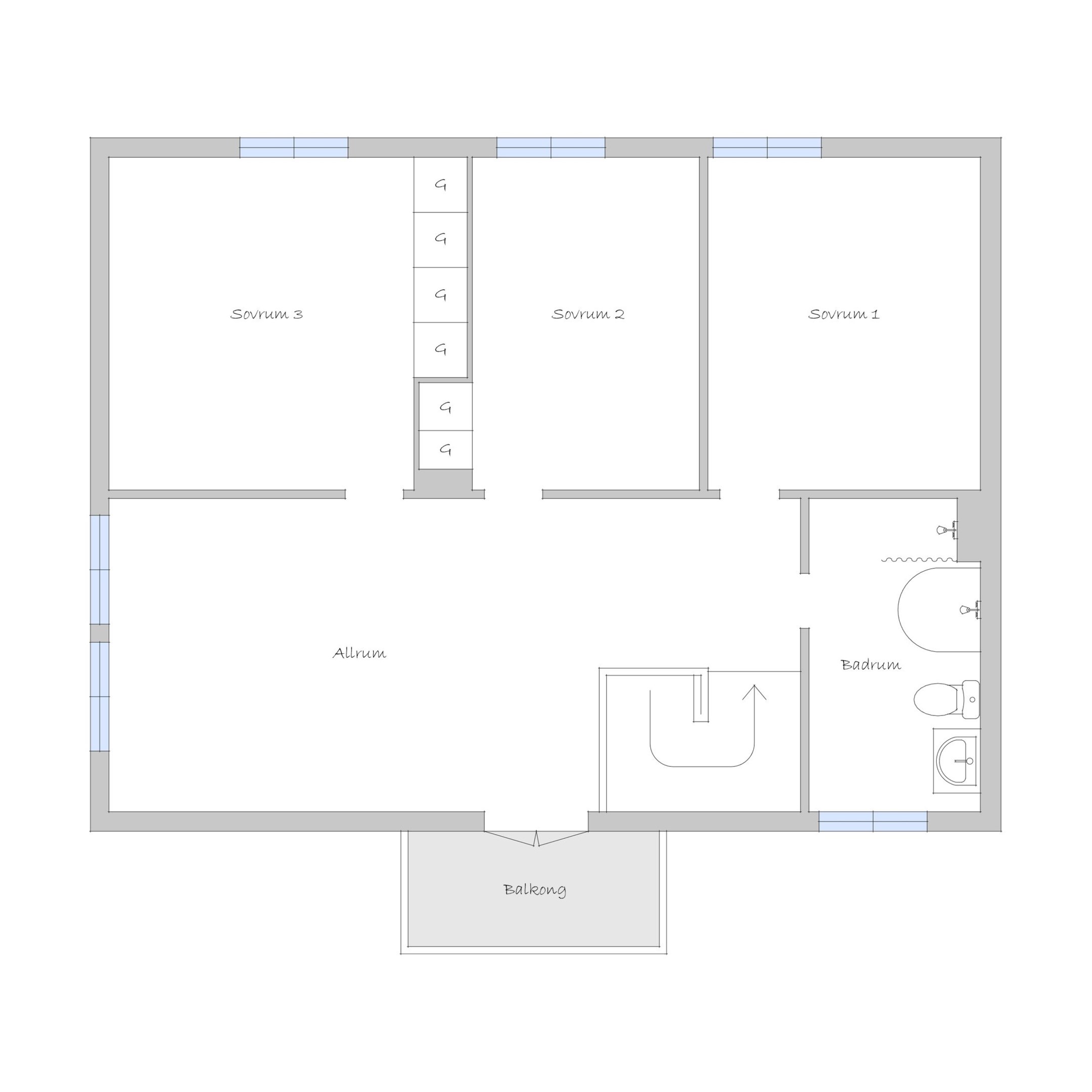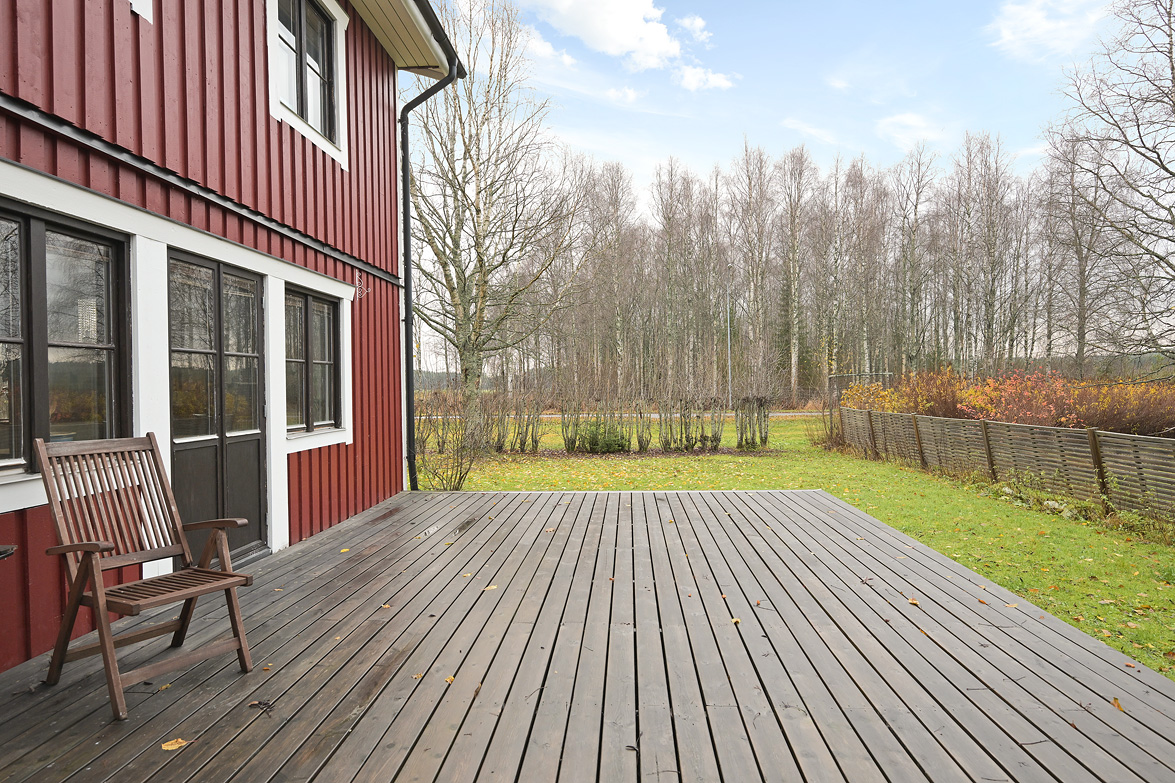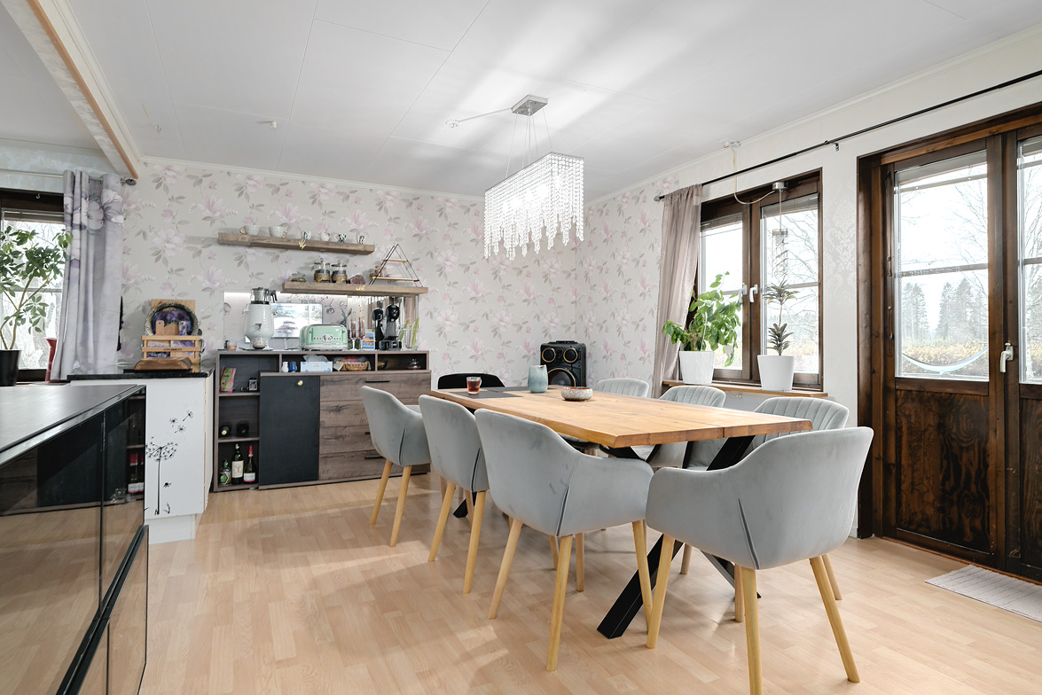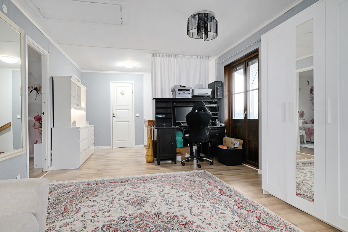 Hall En välkomnande hall som ger plats för ytterkläder och bra förvaring – perfekt för familjen som gillar ordning och reda. Golvet matchas fint med den ljusa väggarna. Kök Ett ljust och välplanerat kök där två fönster vetter mot natur och de öppna fälten - släpper även in rikligt med dagsljus på de stora arbetsytorna. Köket är utrustat med med hel kyl och frys, diskmaskin, diskbänk, spis med häll och ugn, samt en fläkt. Arbetsytorna erbjuder både utmärkt förvaring och extra arbetsyta – perfekt för både matlagning och sociala stunder. Vitt kakel till ljusa färger på skåp och vägg, enhetligt golv håller snyggt ihop kök och vardagsrum. Vardagsrum Ett ljust och rymligt vardagsrum med flera stora fönster som släpper in härligt dagsljus och skapar en luftig känsla. Pardörrar leder ut till trädgården och altanen, vilket suddar ut gränsen mellan inne och ute. Här finns gott om plats för både en stor matplats och en generös soffgrupp – perfekt för familjemiddagar och umgänge. Ljusa lätt mönstrade tapet på väggar Toalett En stilren och praktisk gästtoalett med en kommod med handfat och spegel. Rummet är inrett i härliga färger på både golv och väggar. En perfekt extra toalett för både familj och gäster. Tvättstuga En funktionell och tvättstuga utrustad med kombi-tvättmaskin (tvätt och tork i ett) och plats för skåp och hyllor som ger gott om förvaring för tvättmedel, handdukar och andra nödvändigheter. Ett fönster släpper in naturligt ljus och skapar en trivsam arbetsmiljö till tvättbestyren. Allrum - (ev sovrum 4) Ett rymligt och inbjudande allrum med fina ytor för umgänge och flexibel möblering. Här finns gott om plats för en bekväm soffa och en trivsam sällskapsyta. En dörr leder ut till balkongen, där du kan njuta av frisk luft och en härlig utsikt. Rummet har dessutom stor potential – vid behov kan det enkelt delas av för att skapa ett extra sovrum samtidigt som ett mindre allrum bevaras. Ljusgrå väggar och fint golv. Sovrum 1 Det största sovrummet har gott om plats för en större säng samt bra förvaring, vilket gör det till en perfekt föräldrasvit eller det största sovrummet för familjen. Här finns även möjlighet att inreda med extra möbler eller en liten sittgrupp om så önskas. Sovrummet går i ljusa färger, en mönstrad fondvägg i dova färger återfinns bakom sänggaveln. Sovrum 2 & 3 De två övriga sovrummen är också rymliga och erbjuder både plats för säng samt bra förvaring. Dessa rum fungerar utmärkt som barnrum, gästrum eller hemmakontor – med flexibilitet för olika behov. Färgen på väggarna är ljusa med livfulla tapeter, vilket ger en trivsam känsla. Badrum Rymligt badrum med vit tvättställskommod, spegel, wc och två takduschar som erbjuder en härlig duschupplevelse. Ett fönster släpper in naturligt ljus och ger möjlighet till vädring. Varm färg på melerade väggar till blåmelerat golv. Känns detta intressant, boka visningstid redan nu!