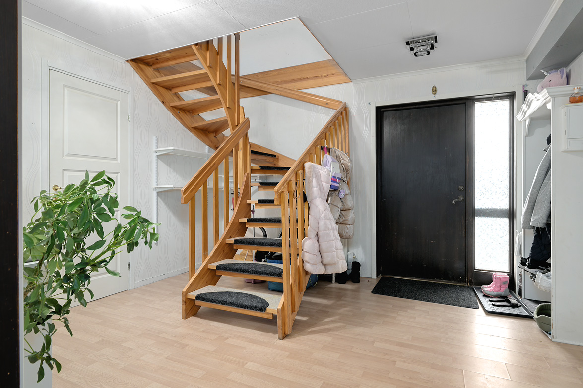 Välkommen till detta trevliga radhus med generösa ytor på hörntomt i fritt läge. Garage och bilplats ingår. Här får du ett hem som kombinerar funktionalitet och en mysig utemiljö – perfekt för familjen! Ljust och välplanerat kök med praktiska arbetsytor som bjuder in till både matlagning och sociala stunder. Vardagsrummet rymmer både en stor matplats och en bekväm soffgrupp, härifrån leder pardörrar ut till den härliga altanen – en perfekt plats för avkoppling och umgänge. På entréplanet finns även en rymlig hall med bra förvaring, praktisk tvättstuga och en liten gästtoalett. En trapp upp finner du tre rymliga sovrum samt ett mysigt allrum som vid behov kan byggas om till ytterligare ett sovrum. Badrum med två duschar och ett fönster som ger dagsljus. Från balkongen har du en fin utsikt över omgivningarna. Den lummiga och mysiga hörntomten är en riktig pärla! Här finns träd och perenna växter som återkommer år efter år. Hörntomten bjuder på både avskildhet och härliga ytor att umgås på. Till huset hör ett rymligt garage i länga, vilket ger både smidig parkering och extra förvaringsutrymme. Här bor du i ett trivsamt och naturnära område där enkla skogspromenader/skidturer/skoterturer nås från tomten - med närhet till skolor, badhus, kyrka, golfbana och ett centrum med flertalet butiker, frisör, restauranger och all tänkbar service. Kommunikationen från Robertsfors till Umeå och Skellefteå är god då många pendlar till sina jobb med buss eller bil. I Robertsfors trivs man, många återvänder när det är dags att bilda familj. Välkommen på visning – här kan du skapa ditt drömboende!