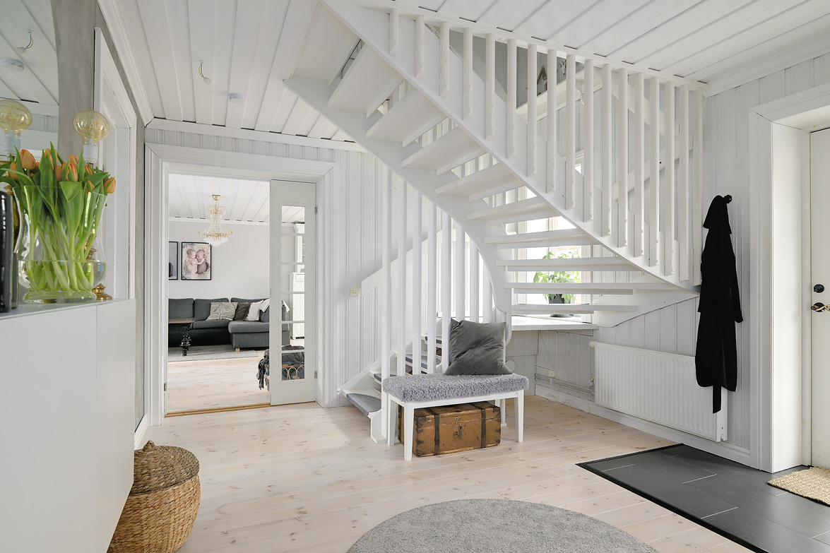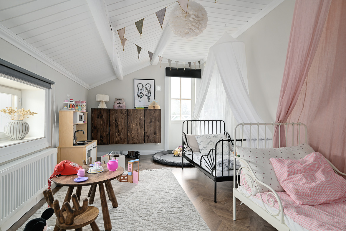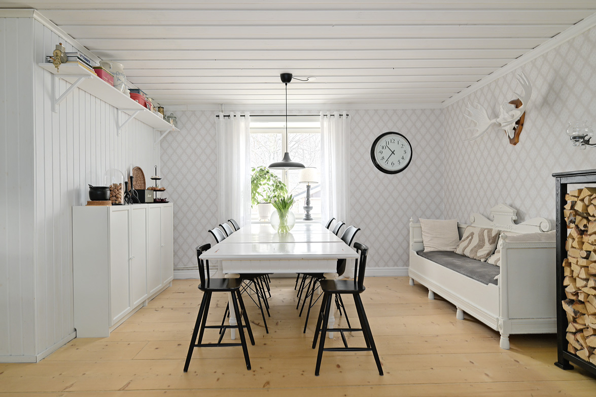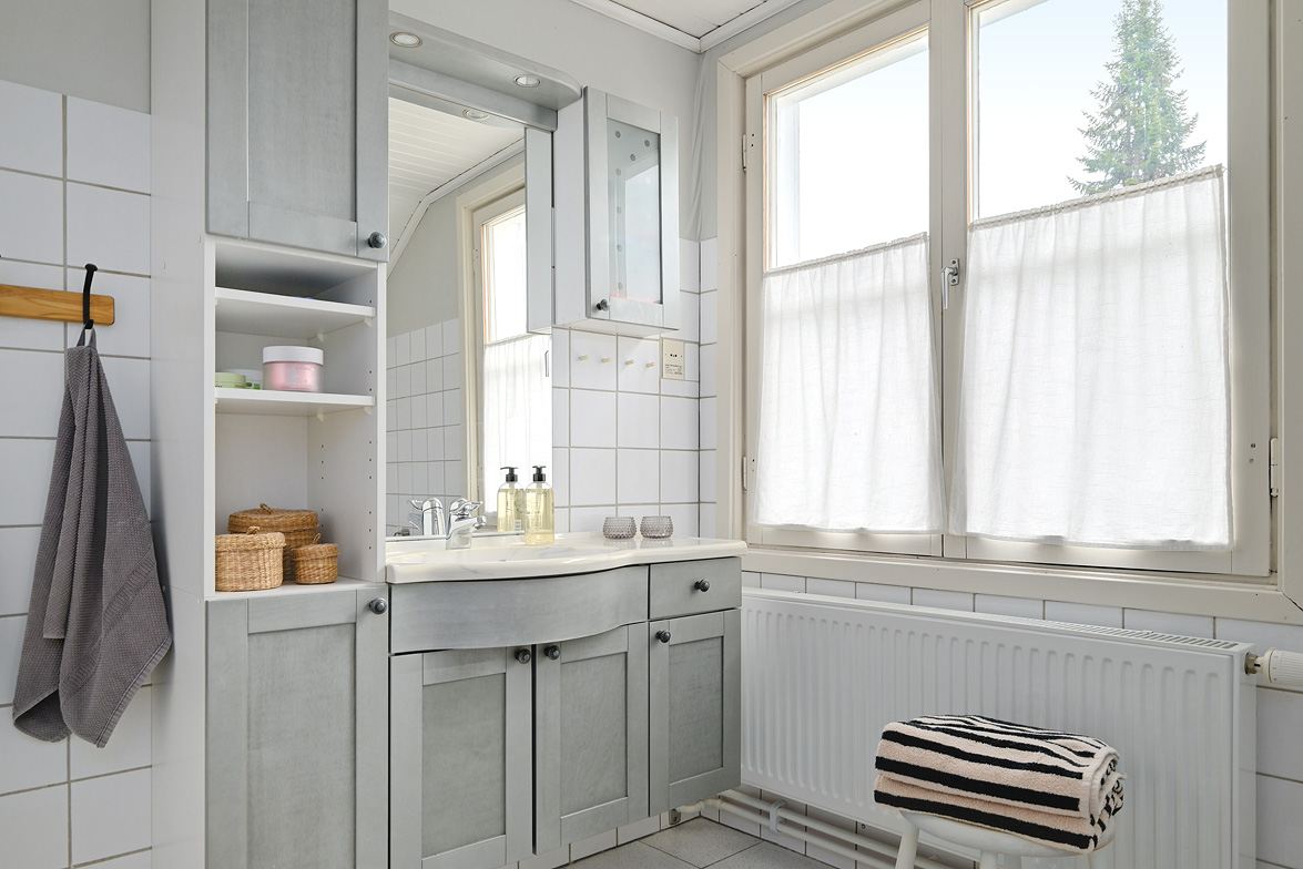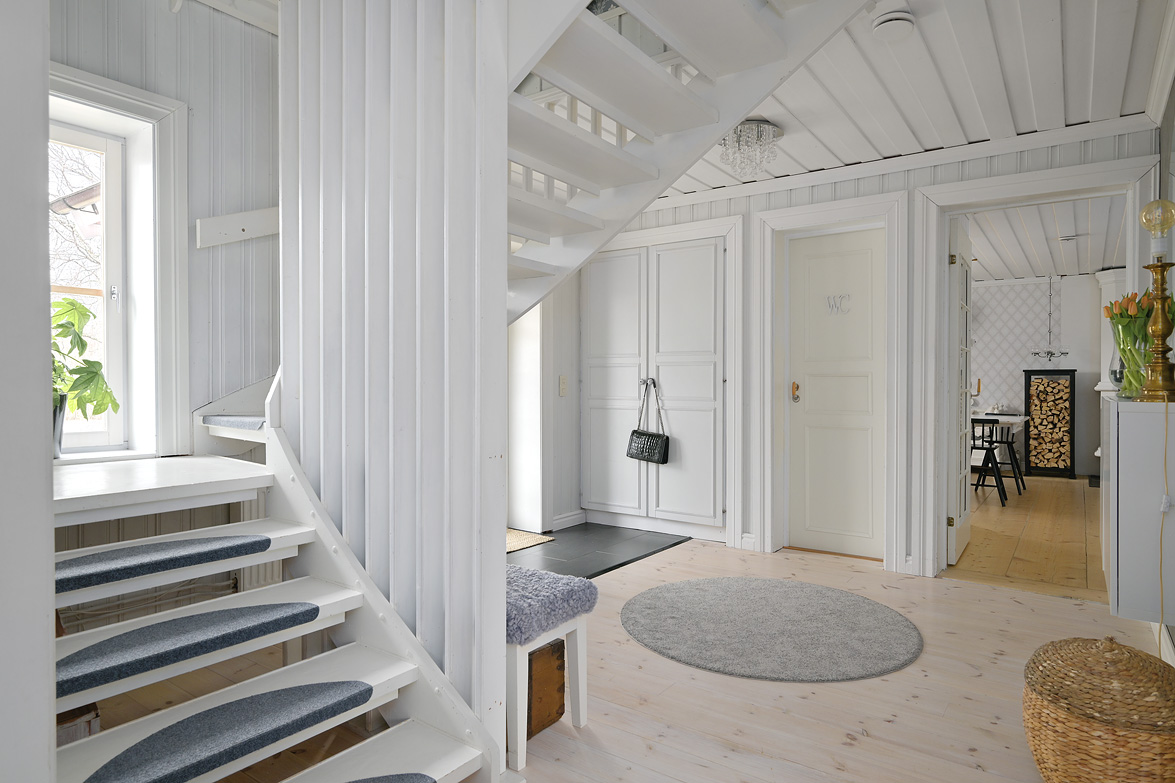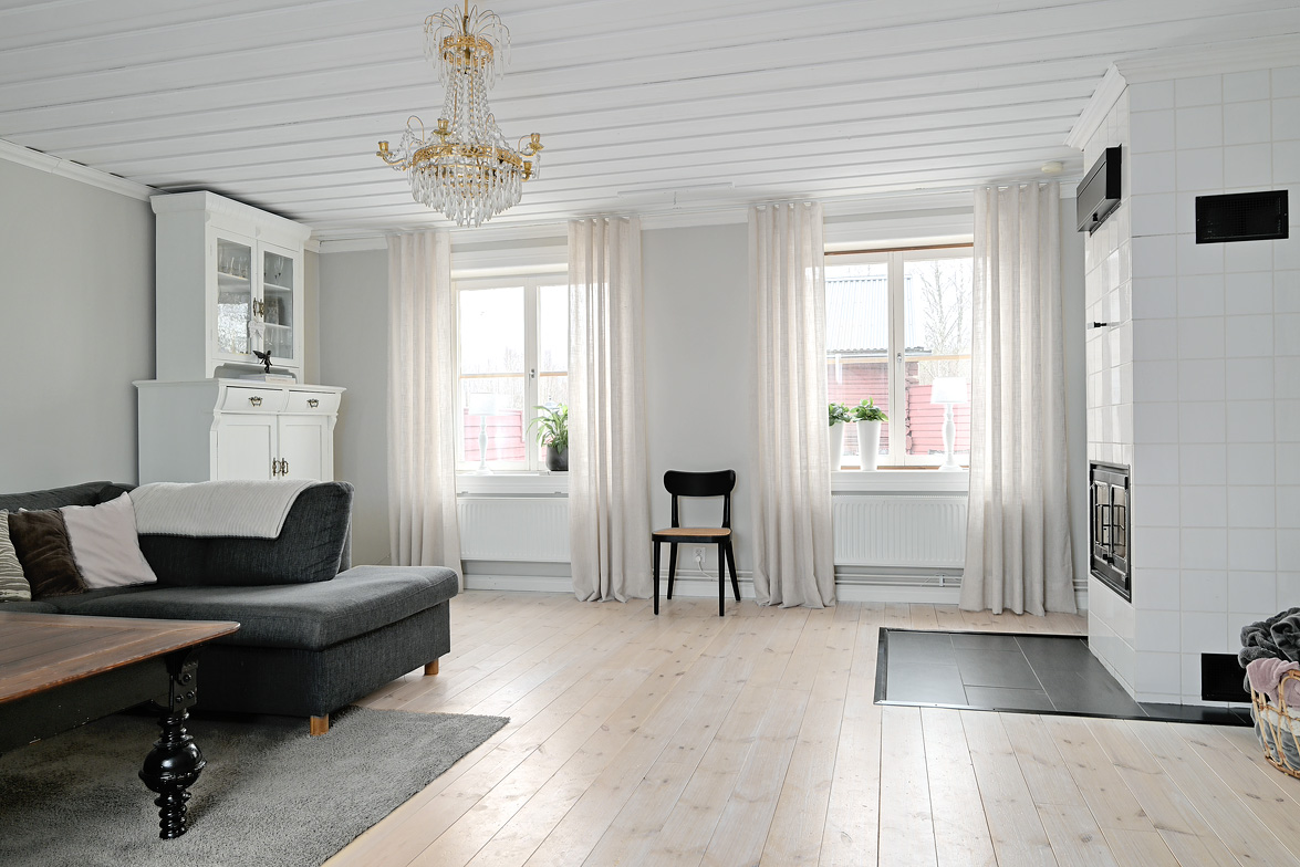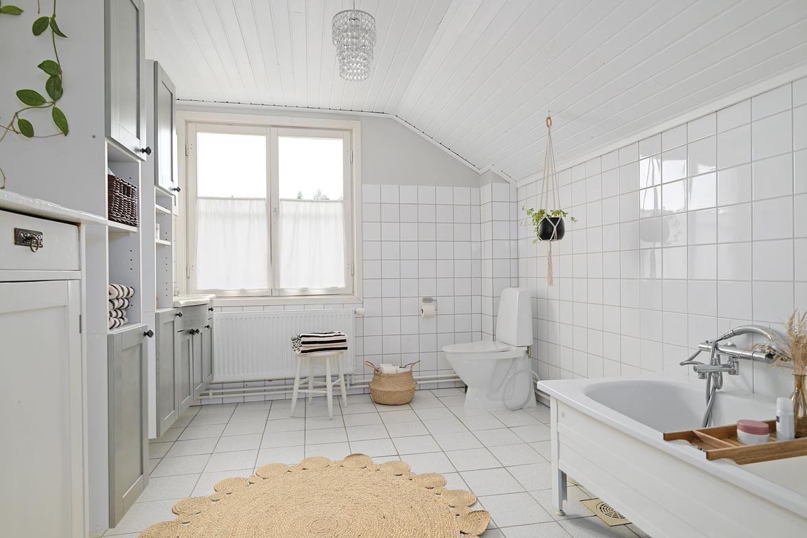 Hall Välkommen in i en ljus och luftig hall med gott om plats för både avhängning och möblering. Här kombineras praktisk klinker vid entrén med ett vackert ljust plankgolv som löper vidare in mot bostadens sociala ytor. Väggarna går i en harmonisk grå ton tillsammans med ljus panel som skapar en varm och inbjudande känsla. Kök Köket är hemmets självklara hjärta – en plats att samlas på. Den värmande kaminen bidrar till en mysig och ombonad atmosfär. Här erbjuds ett klassiskt vitt kök med generösa förvaringsmöjligheter i skafferi, skåp och lådor. Vitt kakel ovan arbetsytorna och fönster i två väderstreck ger ett härligt ljusinsläpp. Matplatsen är placerad vid fönster med vacker utsikt över öppna fält, där både familj och gäster ryms med lätthet. Köket är utrustat med spis med häll och ugn, fläkt, diskmaskin samt fullstor kyl och frys. Ljust plankgolv möter smakfullt mönstrade tapeter. Vardagsrum Ett generöst vardagsrum med stora fönsterpartier som ger ett fantastiskt ljus och en luftig känsla. Här finns gott om plats för både soffgrupp och matsalsmöbel om så önskas. Den pampiga kaminen blir rummets naturliga mittpunkt och höjer trivseln ytterligare. Ljust plankgolv i kombination med ljusgrå väggar skapar en stilren helhet. WC (entréplan) Smakfull gästtoalett med vit bröstpanel och en charmig blommig tapet. Här finns wc, handfat med spegel samt praktiska hyllplan för förvaring. Sovrum 1 Rymligt sovrum på entréplan med plats för dubbelsäng och god förvaring i garderober. Härifrån nås altanen på baksidan via balkongdörr – perfekt för lugna morgnar och kvällar. Inre hall Praktisk groventré via garaget som leder in till en inre hall med skjutdörrsgarderob och goda förvaringsmöjligheter. Väggar i grå ton och slitstarkt golv. Här skulle man kunna sätta in en dörr direkt ut om man inte vill gå via garaget. Badrum/Tvättstuga (entréplan) Stort, helkaklat badrum med integrerad tvättdel. Här finns dusch, tvättmaskin, torktumlare, tvättho samt gott om förvaring i skåp och lådor. Betongglas släpper in ett behagligt dagsljus. Stilrena färgval i grått och beige ger ett lugnt intryck. Övre plan Allrum / Sovrum 2 Ett rymligt och charmigt rum med synliga takstockar, vackert plankgolv och smakfulla tapeter. Härifrån nås även en praktisk klädkammare. Används idag till sovrum. Badrum Rymligt badrum med badkar, tvättställskommod och wc. Fönster ger ett fint ljusinsläpp och möjlighet till vädring. Vitt kakel kombineras med klinker och gråmålade väggpartier. Sovrum 3 & 4 Två rymliga sovrum med plats för större säng och övrig möblering. Väggarna går i grå toner och en vacker timmervägg pryder ett av rummen, snyggt och stilfullt! Garderober finns i det ena rummet. Från båda rummen nås en balkong med härlig dag- och kvällssol. Kontor Mindre kontor – perfekt som arbetsplats eller studierum. Vit panel på väggarna till plankgolv. Klädkammare/Förråd Praktiskt förrådsutrymme med gott om plats för säsongsförvaring. Perfekt för den som gillar ordning och reda! Övrigt Det stora garaget och den charmiga ladan på gården erbjuder fantastiska möjligheter för hobby, projekt och generös förvaring. Välkommen till ett hem att verkligen trivas i! Känns detta intressant? Varmt välkommen att anmäla dig till visning.