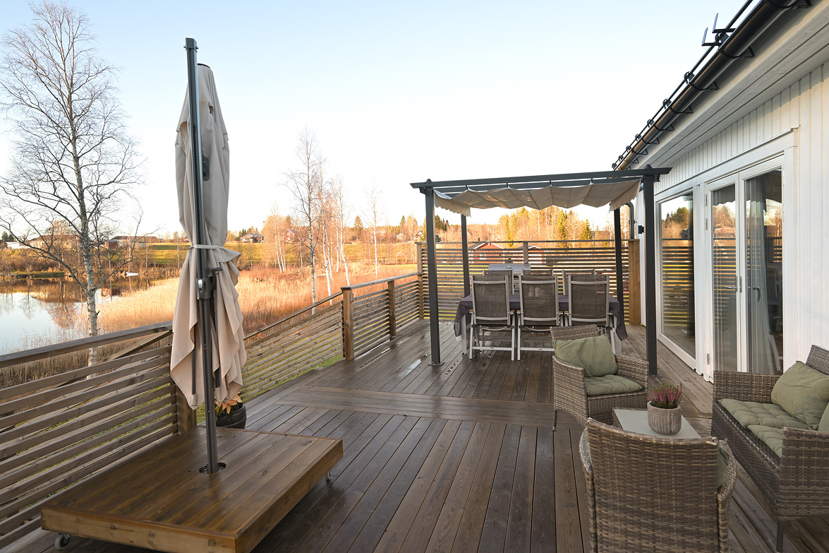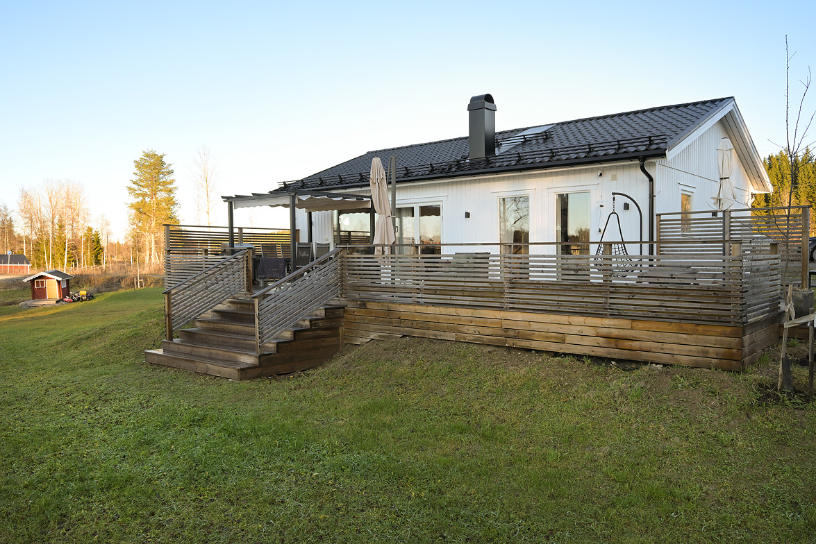 Nybyggd villa med västerläge mot Pengsjön. Huset håller en genomgående hög standard, vattenburen golvvärme, infällda spotlights, braskamin, öppen planlösning mellan kök och vardagsrum samt braskmain. Helkaklat badrum med takdusch. Rymlig altan med pergola, brygga med med båtplats, båtnedsläpp finns i närheten. På tomten finns även lekstuga, gungställning, odlningslådor samt fristående pergola med grillplats. Intill huset så finns ett varmgarage. Pengsjö är en levande by med en aktiv klubbförening som engagerar stora och små. Fem minuter bort så hittar du Pengsjögården med intilliggande badstrand och brygga, här kan du även köp glass och fika på sommaren samt hyra kanot. Pengsjö har ett ordentligt djup och bra fiske, här kan du bland annat fiska gös. Skoterled går via sjön och in till fina skoterleder i skogarna. Välkommen på visning!