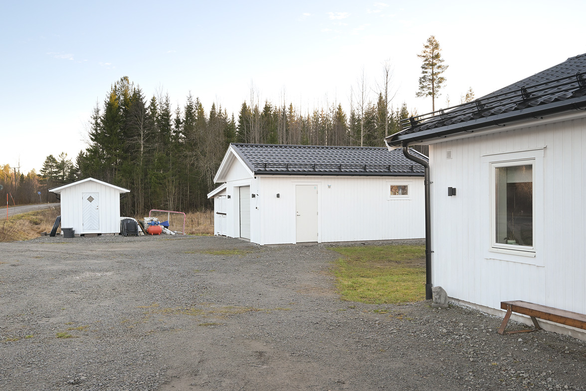 Varmgarage med tillbyggt kallförråd. Separat kallförråd.
