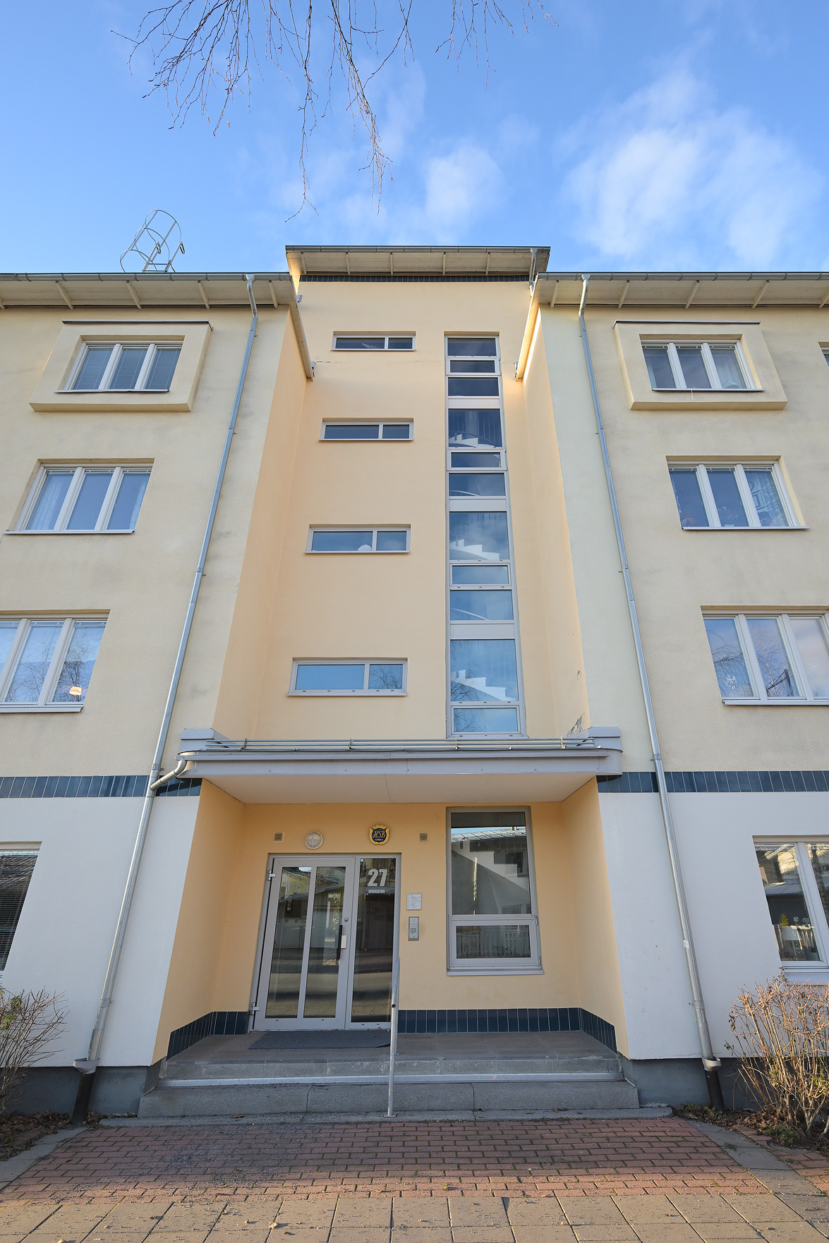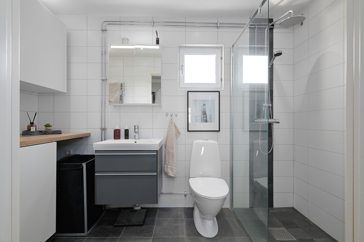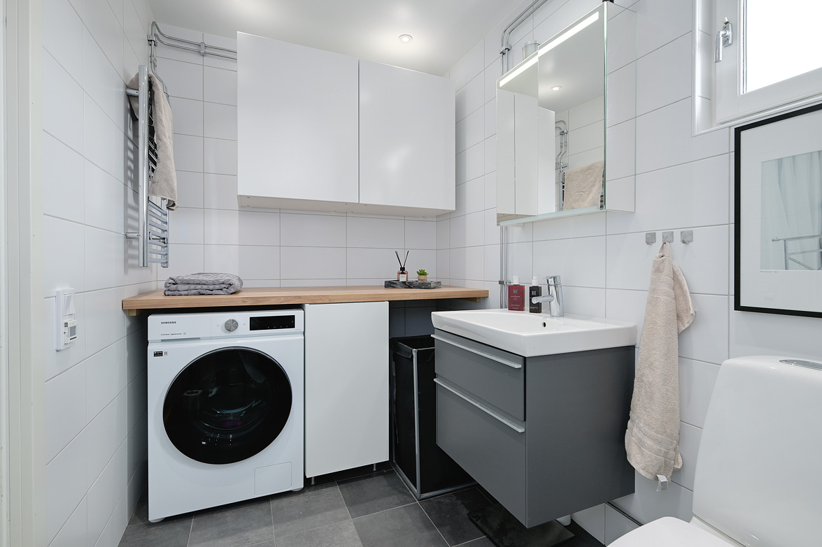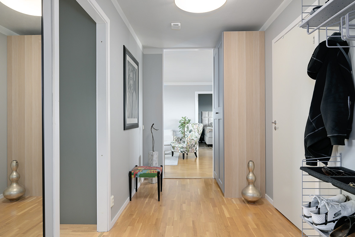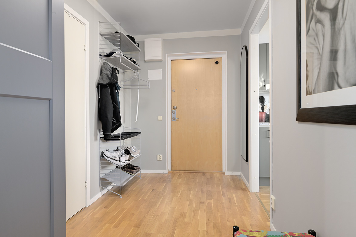 Hall Välkomnande hall med plats för avhängning. Extra förvaring finns i en garderob som matchar köksinredningen. Ekparkett som löper vidare genom hela lägenheten och skapar ett enhetligt intryck. Vardagsrum Ljust och luftigt vardagsrum med stora fönsterpartier och plats för både soffgrupp och matsalsmöbel. Ljusa väggar och fin ekparkett. En liten trappa leder direkt upp till bostadens härliga terrass i soligt sydvästläge. Kök Trivsamt och funktionellt kök med gott om arbetsyta och förvaring. Perfekt planerat för både vardag och matlagning med vänner. Sovrum Rofyllt sovrum med plats för större säng och förvaring. Ekparkett även här, och ett lugnt läge i bostaden. Badrum Stilrent och helkaklat badrum med klinkergolv och skön golvvärme. Utrustat med tvättmaskinsdel som gör hemmet extra bekvämt. Terrass Underbar terrass i sydvästläge – perfekt för soliga dagar, odlingar, avkoppling och kvällsmiddagar under bar himmel. En riktig förlängning av vardagsrummet. Förråd Praktiskt lägenhetsförråd precis utanför ytterdörren – bekvämt och lättillgängligt.