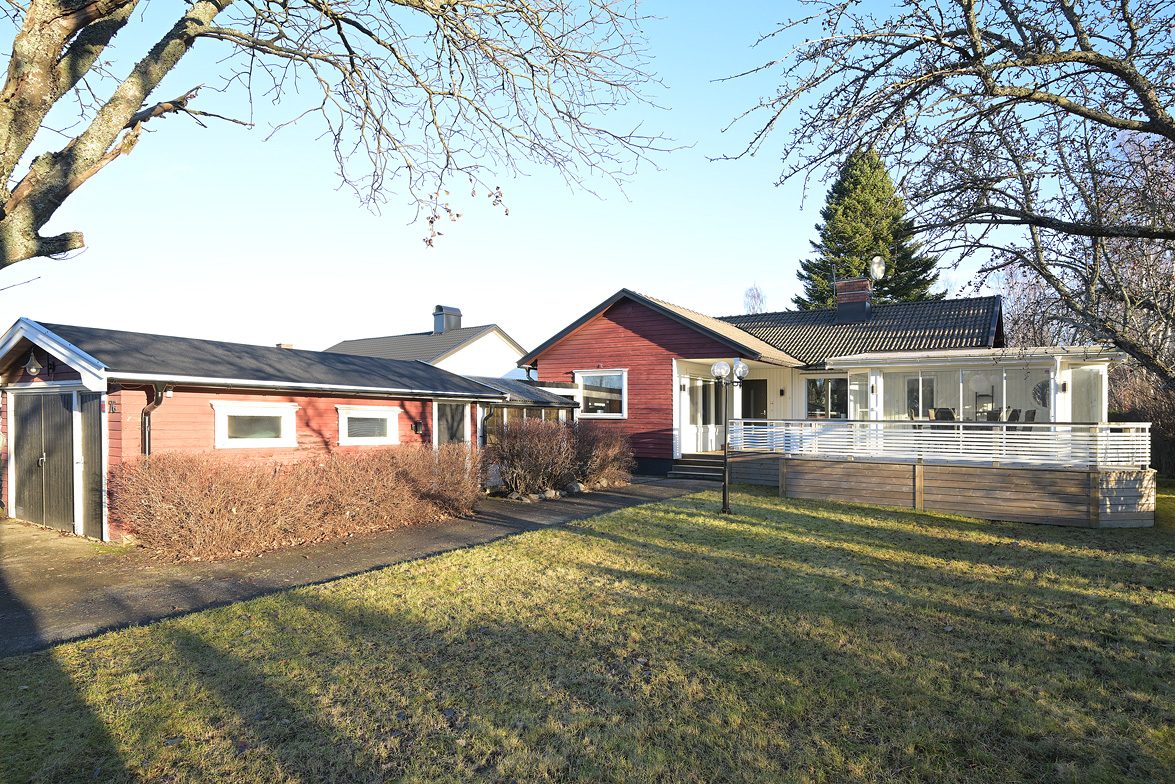 Fin Söderslättsvilla på insynsskyddad tomt med sydvästläge - högklassigt uterum och Bergvärme