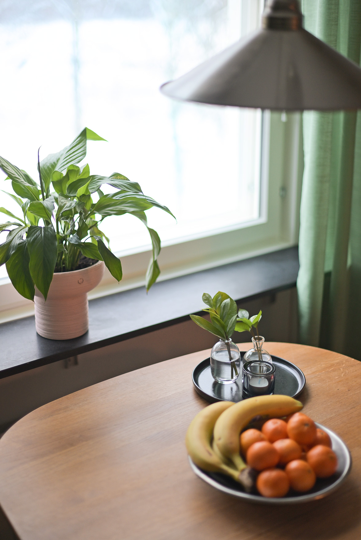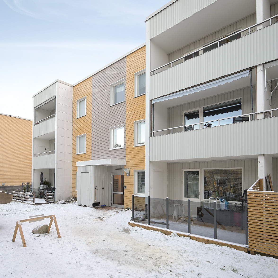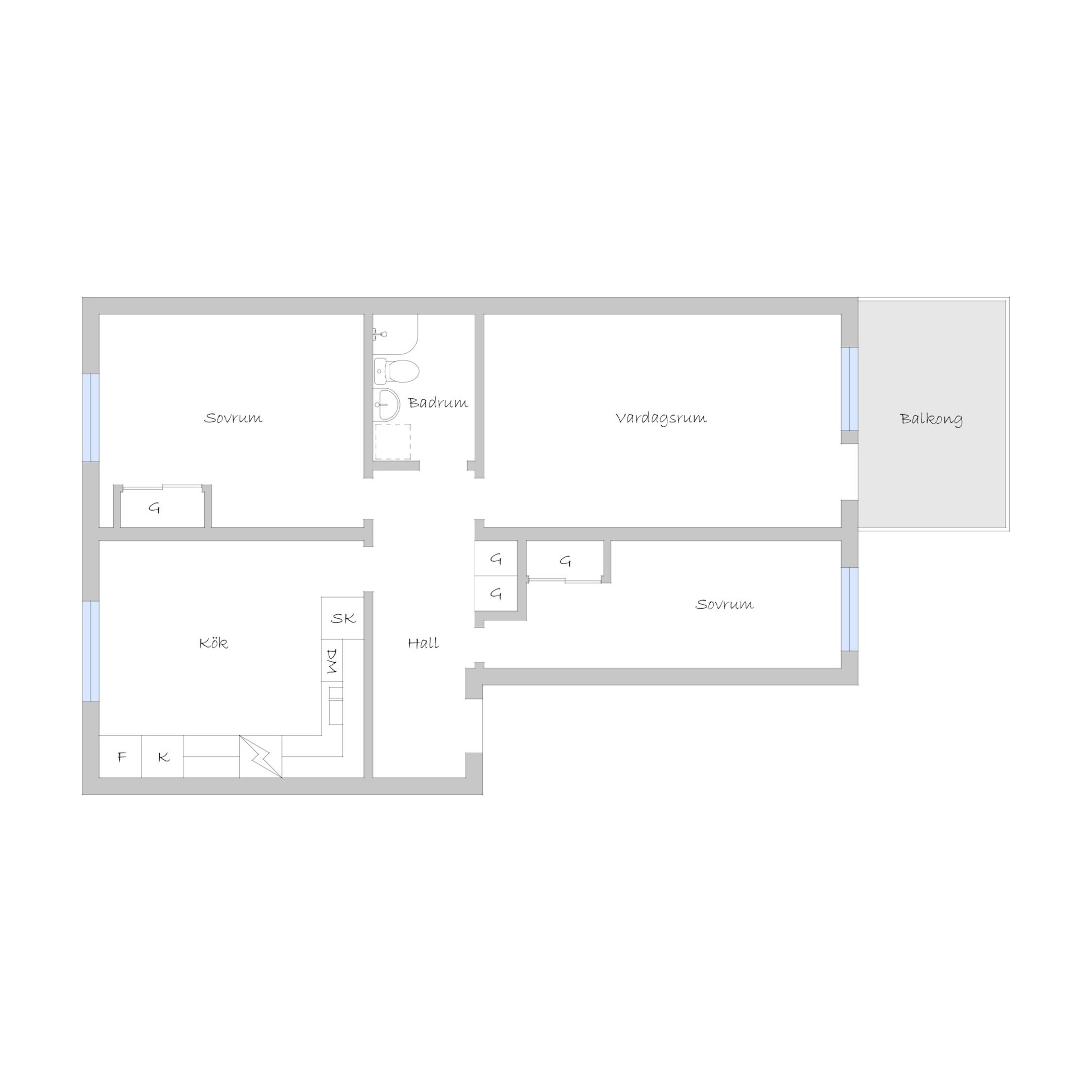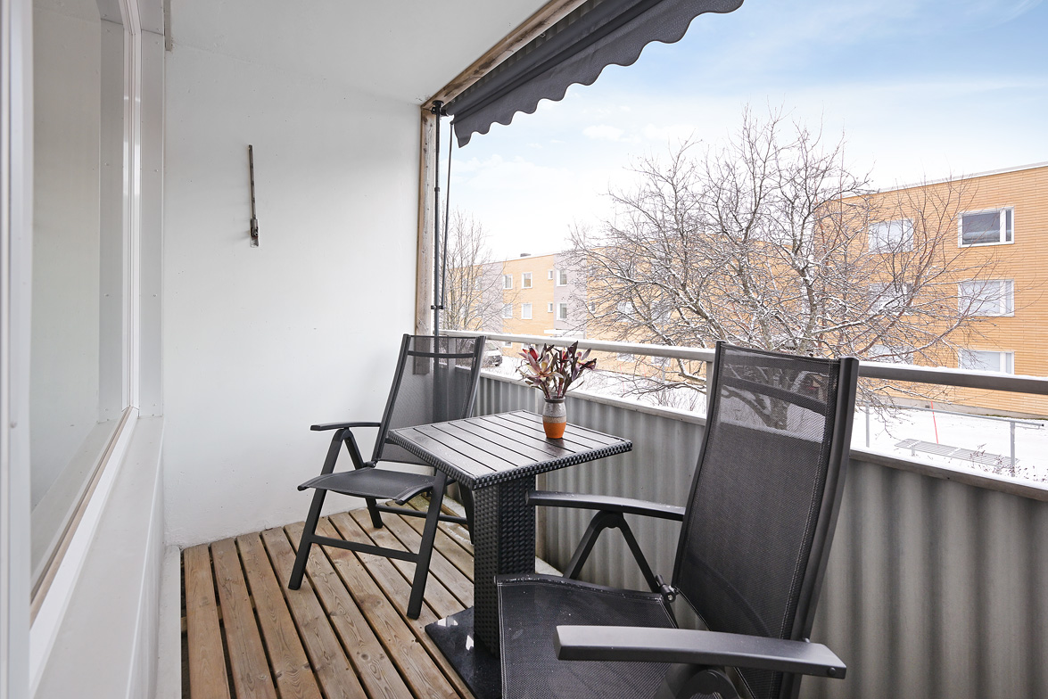 Hall Hall med ljust laminatgolv och ljusa väggar. I hallen finns avhängningsmöjligheter för ytterkläder samt ett inbyggt städskåp. Kök Kök med köksinredning i vitt, köket har mörka laminatbänkskivor med matchande kakel ovanför. Här finns det gott om plats även för ett större matbord, och från matplatsen har man fin utsikt mot skog och grönområden. Köket är välutrustat, det är försett med fullstor kyl och frys i rostfritt (Båda 2021), diskmaskin, hällspis med fläkt samt skafferi. Köket har även det ljusa väggar och laminatgolv. Vardagsrum Rymligt vardagsrum med ljusa väggar och laminatgolv, från rummet har man utgång till balkongen som har västerläge. Vardagsrummet rymmer enkelt både en soffgrupp och en matsalsmöbel. Badrum Badrum med dusch, wc samt handfat med spegel. Badrummet är försett med våtrumsvinyler på golv och vägg, det är även förberett för tvättmaskin. Sovrum Det större sovrummet har laminatgolv samt ljusa väggar kompletterat med en mörk fondvägg. I sovrummet finns en fin dubbel skjutdörrsgarderob. Det andra sovrummet har ljusa väggar, laminatgolv och en fin blommönstrad fondväggstapet. Även i detta sovrum finns en dubbel skjutgarderob. Lägenheten har genomgående fina laminatgolv och ljus färgsättning.