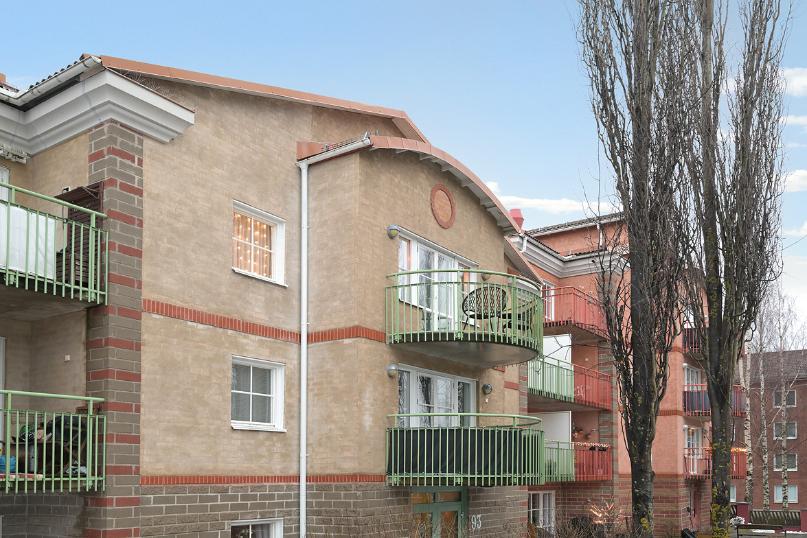 Välkommen till Älvans väg 93 och denna trivsamma 2:a ,(1,5:a enl mäklarbild), belägen högst upp i huset – ett hem som kombinerar charm, funktion och ett lugnt gårdsläge. Lägenheten präglas av ett fint ljusinsläpp, genomgående ljust golv och väggar i en genomgående lila nyans som skapar en varm och ombonad känsla. Det generösa vardagsrummet är bostadens hjärta och bjuder på vackra dubbeldörrar med fönsterpartier på vardera sida, vilket ger ett fantastiskt ljusflöde. Här finns gott om plats för både soffgrupp, matplats och vitrinskåp. Från vardagsrummet nås den unika balkongen i halvmåneform som vetter mot innergården – en perfekt plats för morgonkaffet eller sommarkvällar i lugn miljö. Sovrummet är rymligt och rofyllt med fönster mot innergården. Här ryms en dubbelsäng samt skrivbord eller ytterligare förvaring om så önskas. Köket är ljust och trevligt med fönster mot innergården och erbjuder goda arbetsytor samt över- och underskåp, spis, kyl/frys, diskho och diskmaskin. Det stilrena badrummet är smakfullt renoverat 2022 med mönstrat klinkergolv, kakel i duschhörnan och en elegant kommod med bra förvaring. Här finns även tvättmaskin som förenklar vardagen. Du möts av en välkomnande hall med utrymme för ytterplagg direkt du kliver in genom dörren. Ett hem med genomtänkt planlösning, fina materialval och ett attraktivt läge – perfekt för dig som söker ett inflyttningsklart boende med det lilla extra. Älvans väg ligger nära kommunikationer, Nya coop Tomtebo samt Universitetet och grönområden såsom Nydalasjön.