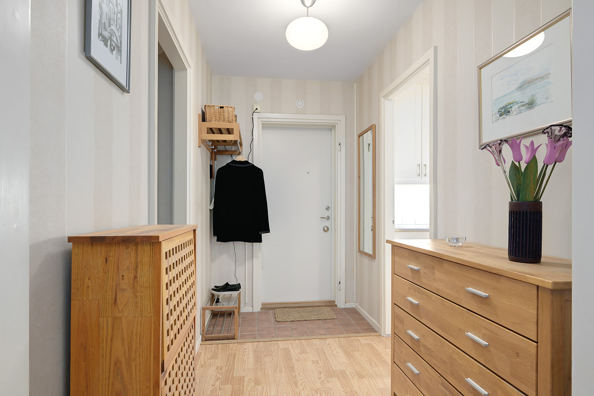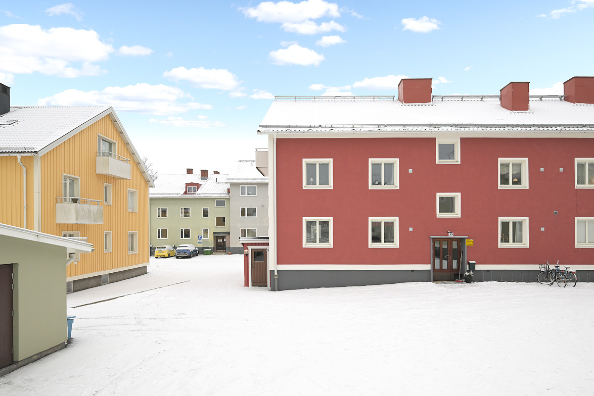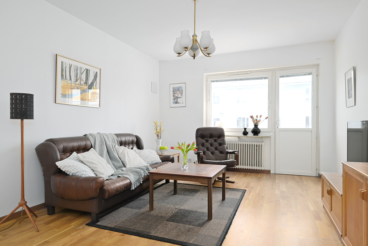 Välkommen till denna trivsamma och välplanerade bostadsrätt belägen på eftertraktade Haga, i en ekonomiskt stark och välskött förening där allt ingår i månadsavgiften. Här erbjuds ett boende som kombinerar funktion, ljus och ett attraktivt läge. Lägenheten är belägen på gaveln, vilket ger ett fantastiskt ljusinsläpp genom fönster i tre väderstreck. Det skapar en ljus och luftig känsla som genomsyrar hela bostaden och bidrar till en mycket behaglig boendemiljö. Vardagsrummet är rymligt och lättmöblerat med plats för både soffgrupp och matbord – en naturlig samlingspunkt för såväl vardag som umgänge. Från vardagsrummet når man även den soliga balkongen i söderläge. Köket är funktionellt utformat med goda arbetsytor, bra förvaring och utrymme för matlagning i lugn och ro. Bostaden disponeras med två sovrum, vilket gör den flexibel och väl lämpad för såväl paret, den lilla familjen eller dig som önskar ett extra rum för arbete eller gäster. Det större sovrummet erbjuder plats för dubbelsäng och förvaring, medan det andra sovrummet fungerar utmärkt som barnrum, gästrum eller hemmakontor. Badrummet är praktiskt och fräscht utformat med tvättmaskin, och hallen erbjuder bra avhängning och förvaringsmöjligheter. Planritningen visar tydligt bostadens genomtänkta disposition och effektiva nyttjande av ytorna. Denna bostad erbjuder även två förråd, ett på vinden och ett i källaren. Här bor du i ett mycket omtyckt område med närhet till grönområden, service, caféer, restauranger och goda kommunikationer. Ett hem som passar perfekt för dig som söker ett ljust, välplanerat boende i ett lugnt men centralt läge. Varmt välkommen på visning!