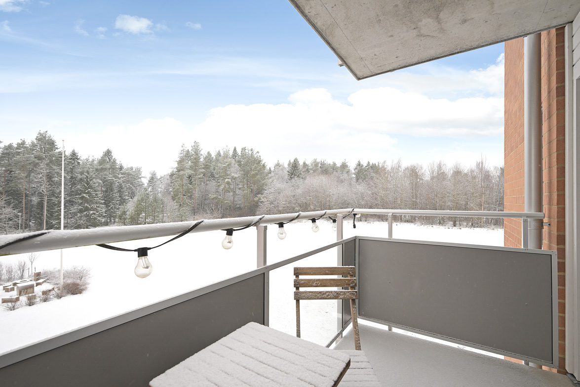 Balkong, uteplats och bilplats