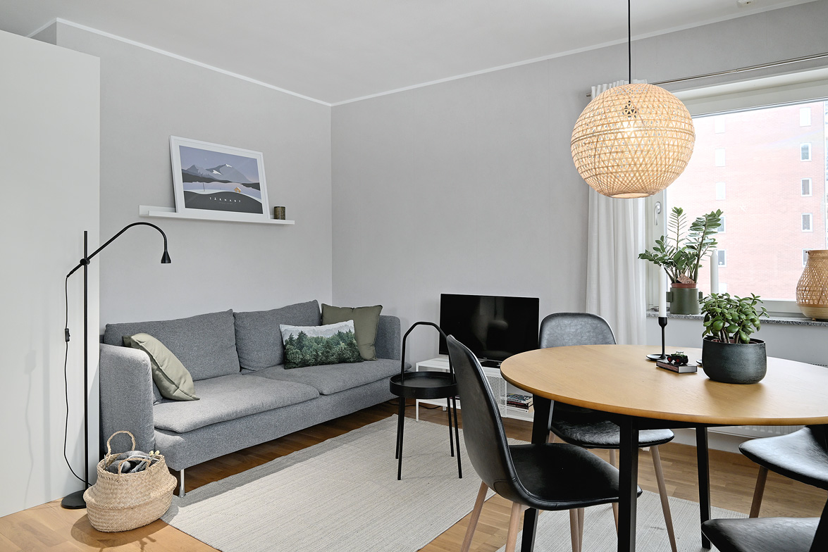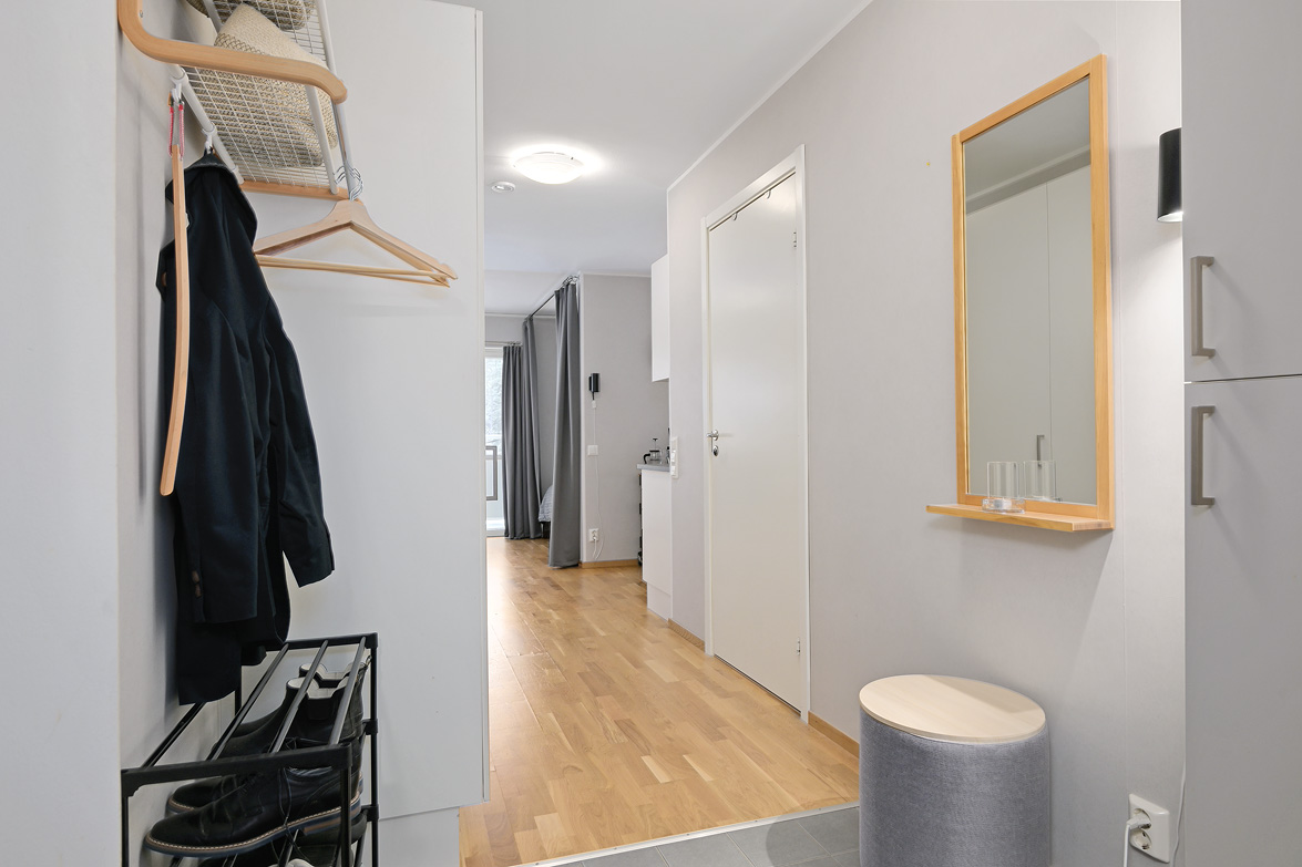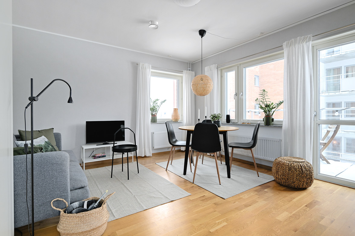 Välkommen till en välplanerad och hemtrevlig bostad där varje kvadratmeter är genomtänkt. Här erbjuds ett modernt boende med ljusa ytskikt, vacker parkett och stora fönsterpartier som ger ett fint ljusflöde genom hela lägenheten. Vardagsrummet är generöst tilltaget och har en naturlig plats för både soffgrupp och matplats. Den öppna planlösningen mot köket skapar en social yta som passar lika bra för vardag som för umgänge. Från vardagsrummet nås balkongen i sydväst-läge – en härlig förlängning av bostaden med plats för möblemang och utsikt mot föreningens lugna grönområde. Köket är stilrent och funktionellt med gott om förvaring och arbetsyta. Här finns även diskmaskin! Den smarta sovalkoven är avskild från sällskapsytorna och erbjuder plats för dubbelsäng, vilket skapar en tydlig sovdel utan att ta yta från vardagsrummet. Badrummet har klinker på golv och bitvis kaklade väggar. Badrummet är fräscht och utrustat med dusch, wc, handfat samt egen tvättmaskin – ett stort plus i vardagen. Hallen är rymlig med goda förvaringsmöjligheter i garderober. Fastigheten är modern och välskött med trevliga gemensamma utemiljöer. Läget kombinerar närhet till grönområden och natur med goda kommunikationer och service inom räckhåll. Ett perfekt boende för dig som söker ett bekvämt, lättskött och stilrent hem.