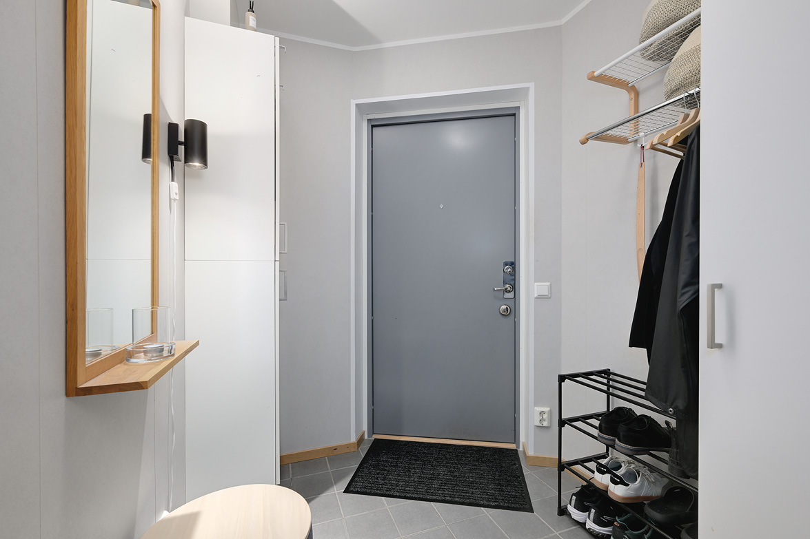 Hall Välkomnande hall med klinkergolv vid entrén och sedan löper ett fint parkettgolv vidare i bostaden. Goda avhängningsmöjligheter samt garderober som erbjuder förvaring. Vardagsrum Ljust och luftigt vardagsrum med plats för soffgrupp och övrigt möblemang. Öppen planlösning mot köket skapar en social yta. Stora fönster i två väderstreck ger fint ljusinsläpp. Utgång till balkong. Balkong Trivsam balkong med plats för bord och stolar. Lugn utsikt i kvällssolen. Kök Stilrent kök i ljus färgsättning med goda arbetsytor och förvaring i under- och överskåp. Utrustat med spis/ugn, fläkt, diskmaskin, kyl/frys samt diskho. Köksdelen är utrustat med ett litet fönster över diskho. Sovalkov Smart planerad sovalkov med plats för dubbelsäng. Avskild från vardagsrummet med en mörkläggningsgardin vilket skapar en ombonad sovdel. Badrum Badrummer har klinkergolv och delvis kaklade väggar, allt i ljusa toner. Utrustat med dusch, wc, handfat med kommod, spegelskåp samt tvättmaskin. Välkomna till Porfyrvägen 3A!