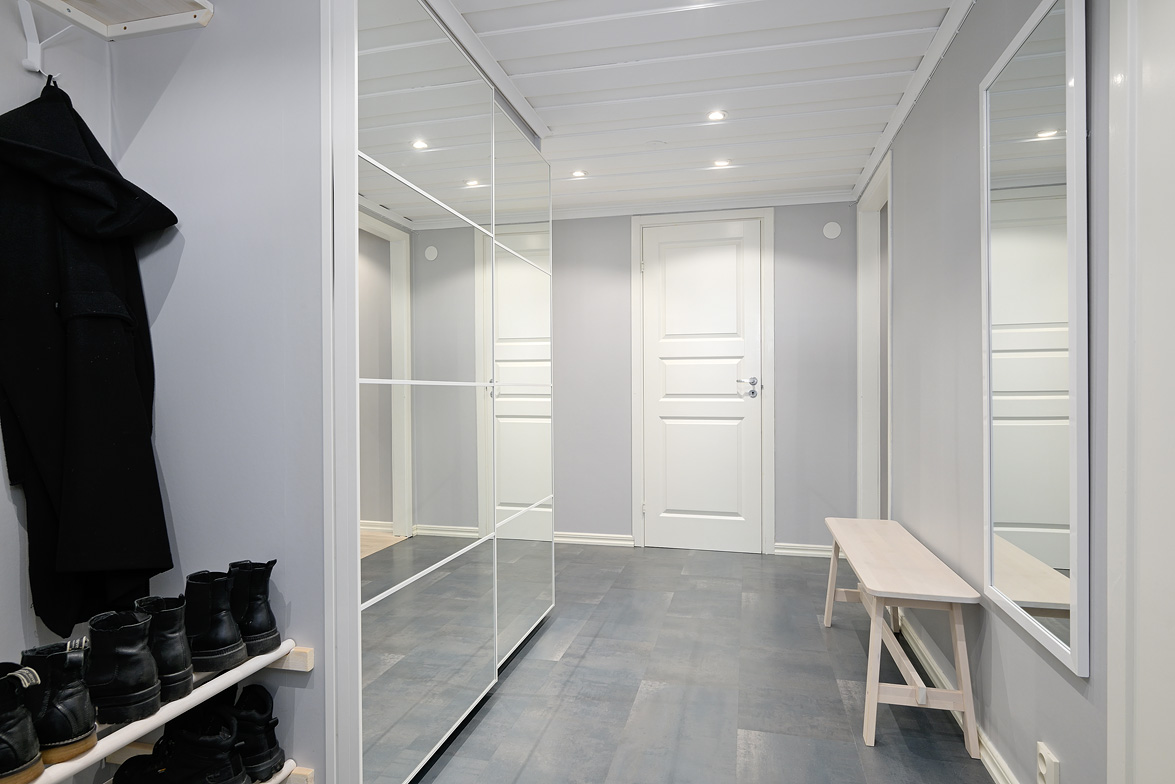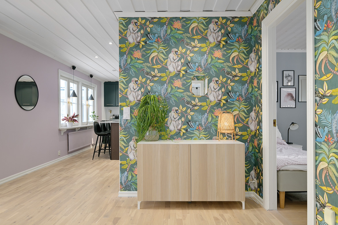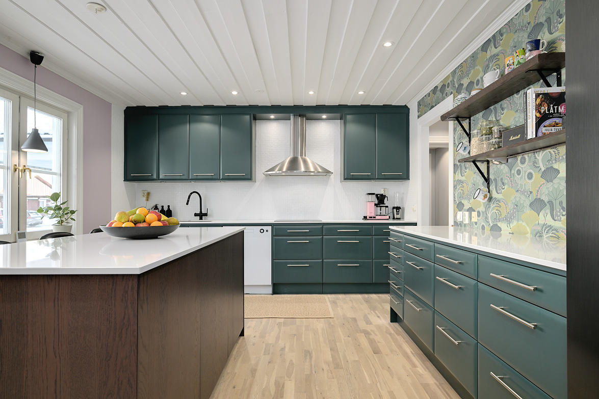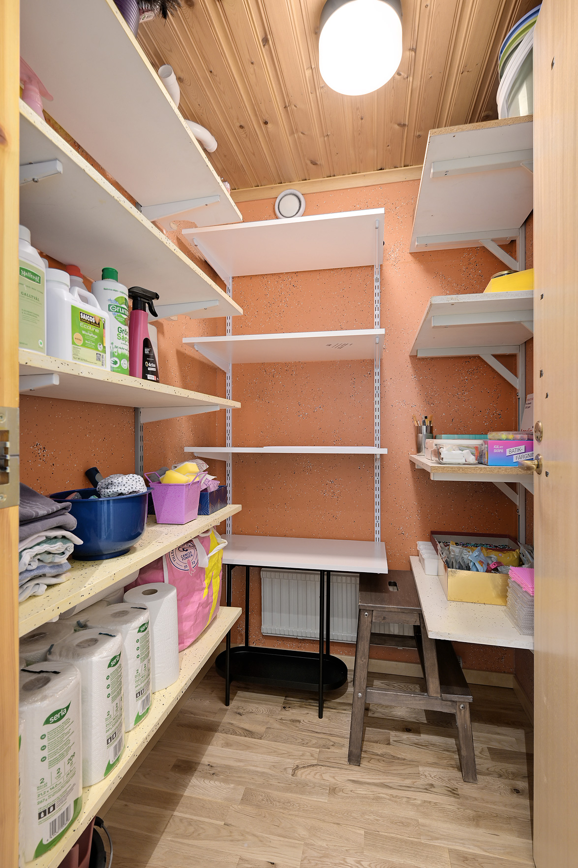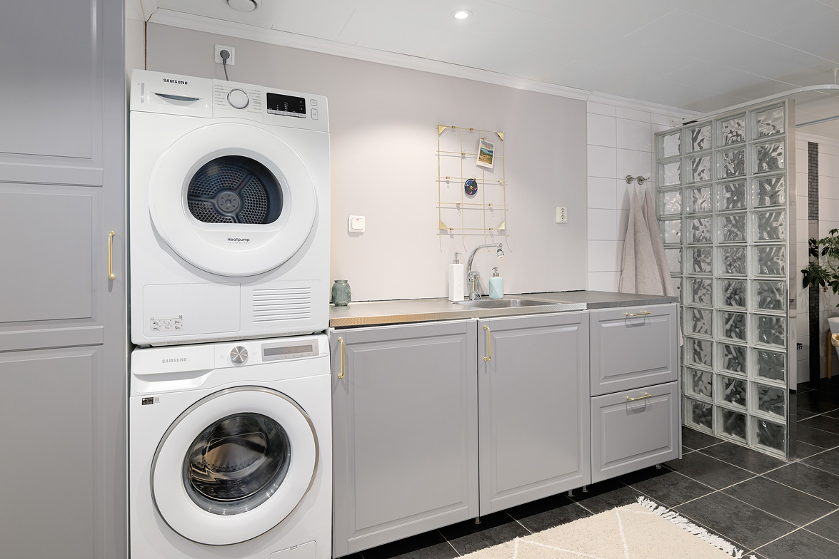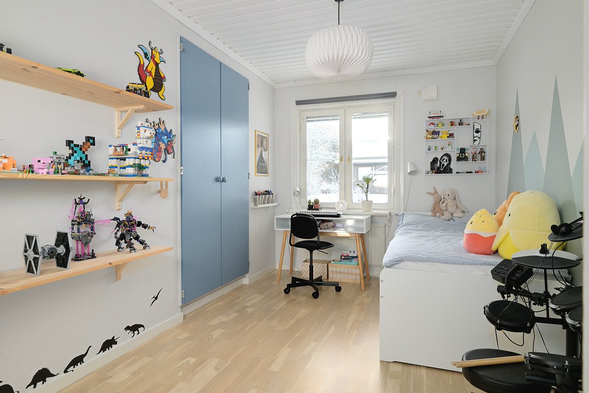 Välkommen in till en skön och hemtrevlig känsla där ett ljust parkettgolv löper från rum till rum, social planlösning, genomtänkta materialval och fönstersättning som skapar ett ljust och trivsamt hem. Hall Perfekta ytor där familjens kläder kan hängas upp öppet och dolt i skjutdörrsgarderob eller i garagedel direkt till vänster - perfekt yta för blöta kläder och skor. Ljusgrå väggar, gråmelerat golv och härliga spotlight i tak som ger både en ljus och lyxig känsla. Toalett Mindre toalett nås direkt från hall med wc, handfat med kommod och spegelskåp samt wc. Ljusa väggar till ljusgrå färg på golv. Kök Ljuvligt kök med allt man kan önska där infällda spotlights i tak och under överskåp ger ett härligt arbetsljus och en lyxig känsla. Köksinredningen erbjuder bra förvaring i flertalet skåp och lådor. Generösa och gedigna silestone-bänkskiva pryder arbetsytorna i köket och på den generösa köksön dukas det enkelt upp en härlig buffé under helger och årets alla högtider. Ett vitt kakel harmonierar fint till köksinredningen. Maskinerna består av öppen rostfri fläktkåpa, induktionshäll, ugn och mikro i högkåp samt diskmaskin och rostfri kyl och frys. Livfull blommig tapet till lätt rosa väggar och ljust parkettgolv.. Vardagsrum - ev sovrum 5 Här flödar ljuset från fönster i tre väderstreck med en kamin centralt placerad mellan de härliga sociala ytorna. Både matplats och den generösa soffan välkomnar familj och vänner. Ljusa väggar till vackert ljust parkettgolv. Om så önskas kan del av vardagsrum delas av till ett femte sovrum, se alternativ planlösning. Inglasad del Möblera fritt och njut under era lediga stunder i bästa solläge medan ni blickar ut över gården och dess gröna ytor - för odling, lek och bus. Klinker och parkettgolv till ljusa väggar. Glaspartierna kan öppnas upp så inne och utemiljön vävs samman på ett mycket smakfullt sätt. Nyttjas från tidig vår till sen höst, ett favoritrum helt enkelt, Sovrum 1 Är generöst och ger plats för dubbelsäng och övriga möbler. Har tidigare varit familjens allrum med direkt utgång till det inglasade uterummet. Väggarna har en dunkelt blå ton till skön mjuk matta på golv. Badrum Helkaklat badrum med vit tvättställskommod, högskåp, spegelskåp med infälld belysning, dusch och wc. Fönster vetter mot framsidan och möjliggör vädring och sprider ett härligt dagsljus. Grå melera klinker på golv till ljust kakel samt mörk mosaik på vägg. Golvet har skön golvvärme. Sovrum 2 Detta rum nås från inre hall och ger plats för säng, garderob och övrig möblering, fönster vetter mot basidan. Ljusa och målade väggar till fint parkettgolv. Sovrum 3 Även här ett rum som ger plats för valfri möblering som säng och skrivbord. Fönster mot baksidan och väggarna har en vit och blågrå ton. Sovrum 4 – Gym Här kan du möblera fritt efter familjens behov. Idag används rummet till gym och lekrum. Snacka om att enkelt få till träningen hemmavid. Ljusa väggar, parkettgolv med idag ett mjukt gymgolv, perfekt dämpande vid träning. Här finns även en matkällarlucka där du kan förvara sylt, saft och höstens skörd. Bad - Tvättstuga Här kan du ta ett värmande bad och sen direkt kliva ut till det mysiga uterummet och trädgården. Här finns även dusch och en gladbetongvägg som avgränsar ytorna mot tvättdelen. Välplanerad med bra förvaring i skåp och lådor. Arbetsbänk och tvättho gör vardagen enkel. Här finns tvättmaskin och torktumlare. Gråmelerat klinkergolv med skön golvvärme. Badrumsdel med klinker på vägg och övriga väggar har en lätt grå ton. Spotlight i tak ger ett skönt ljus. Gården Utemiljön är mycket trivsam med pallkragar, planteringar och altaner med olika sollägen där framsidan har morgon och kvällssol och baksidan har sol hela dagen. Den inglasade delen används stora delar av året, här vävs inne och utemiljön ihop. Garage med carport Rymlig dubbelcarport leder oss in till garage med bra ytor, perfekt för familjen med många intressen. Bra förvaring med plats för cyklar, skidor och familjens prylar de behöver i vardagen. Lätt att ställa en vagnskyddat under carporten eller styra in i det varma garaget. Välkommen till en välplanerad och rymlig enplansvilla – hoppas vi ses på visning!