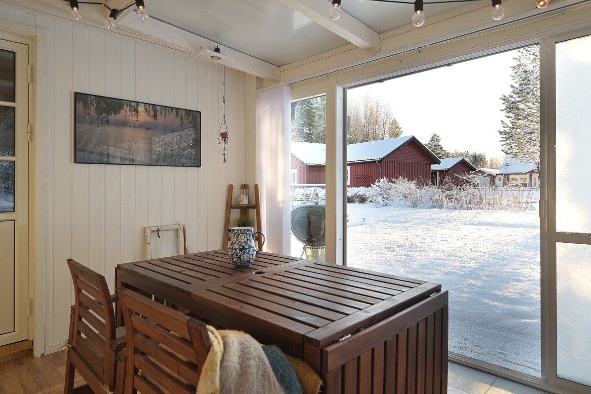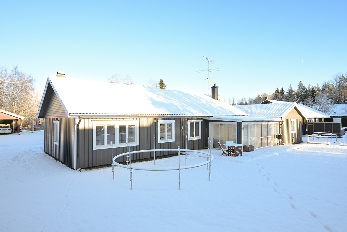 Välplanerad enplansvilla med härliga sociala ytor, underbart kök med trevlig köksö - perfekt för den som gillar att laga mat eller bara vill hänga bredvid. På baksidan nås det inglasade uterummet som blivit familjens favoritrum stora delar av året! Genom pardörrar i glas nås den soliga uteplatsen på framsidan där ni kan njuta av en ledig dag eller en god grillmiddag i solen. Vardagsrummet är generöst med plats för den större soffan och en rymlig matplats. Den värmande kaminen är centralt placerad i vardagsrummet och sprider både värme och en skön hemtrevlig känsla. Här erbjuds två badrum, toalett, tre fina sovrum och ett fjärde rum som är inrett till familjens hemmagym - önskar man ytterligare ett sovrum så finns möjlighet att dela av det stora vardagsrummet. Entrén har bra förvaring både öppet och väl dolt i skjutdörrsgarderob. Här finns plats för både barnvagn, skolväskor samt familjens fritidsartiklar vilket är perfekt i vardan. Innanför garaget har man inrett det fjärde rummet som varit ungdomsrum, gästrum, kontor och som idag är familjens hemmagym, snacka om smidig träning! Rymlig dubbelcarport med plats för två bilar, perfekt för den aktiva familjen med många intressen och skoterled nås från kvarteret. Villan omringas av stora gröna ytor på insynsskyddad tomt som vetter mot en skogsdunge. Här bor ni på barnvänligt kvarter med närhet till skog, förskola, skola och all tänkbar service som ICA, apotek, blomaffär, frisör mm. Aktiv idrottsförening med fotbollsplaner, elljusspår, simhall, gym, sporthall, tennisbana, hockeyplan mm. Kommunikationen från Sävar är god då många pendlar till sina jobb med cykel, bil eller buss. I Sävar trivs man och många väljer att återvända till sin hemby när det är dags att bilda familj. Missa inte denna välplanerade familjevilla - Hör av dig om du är intresserad av visning!