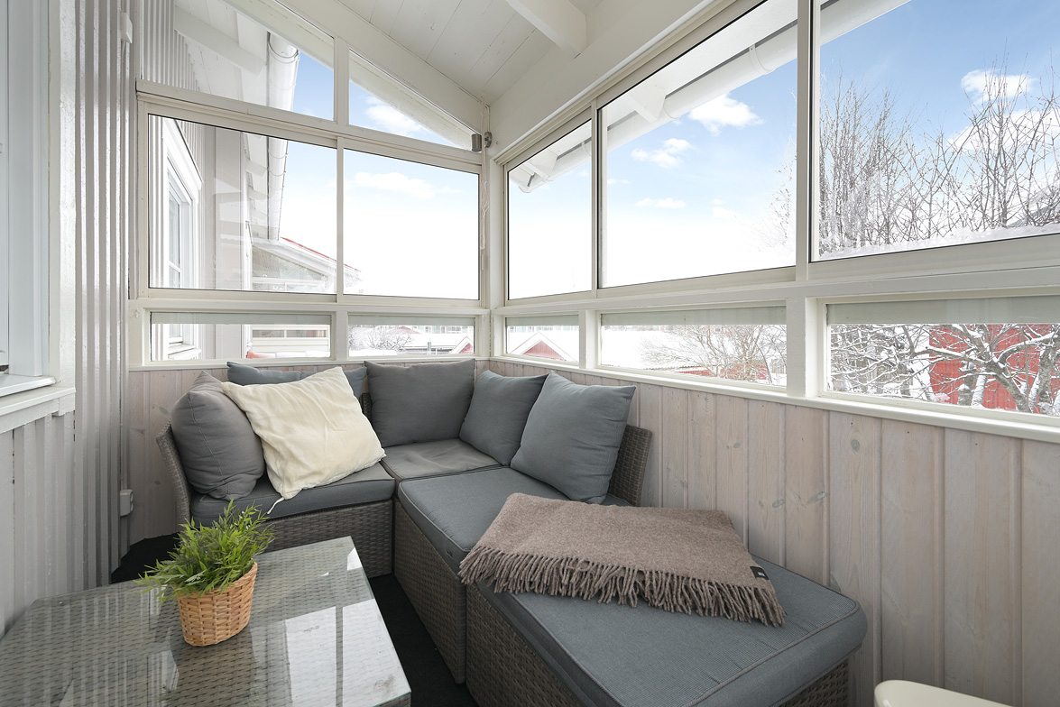 Lägenheten har en inglasad sydvästbalkong. På balkongen är infravärme installerat vilket förlänger säsongen. Det finns även trevliga gemensamma uteplatser i föreningen.