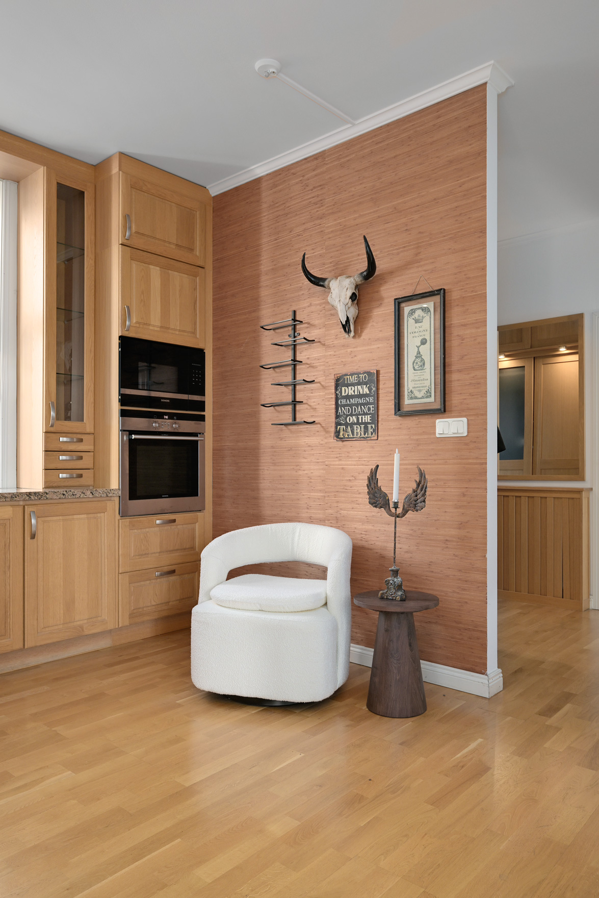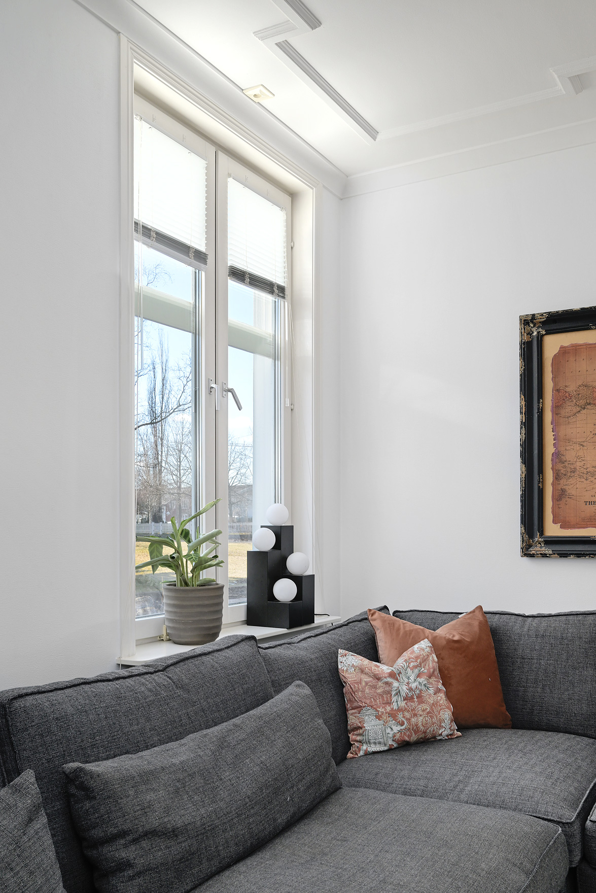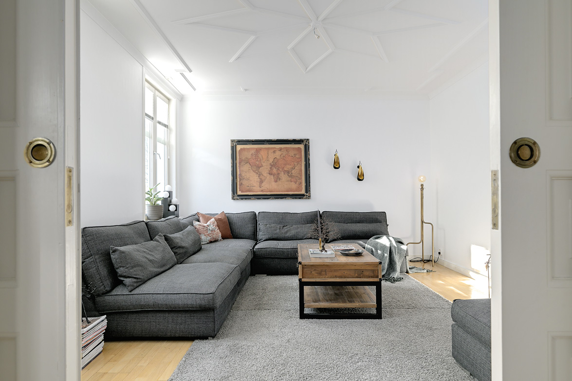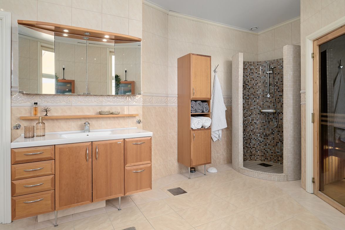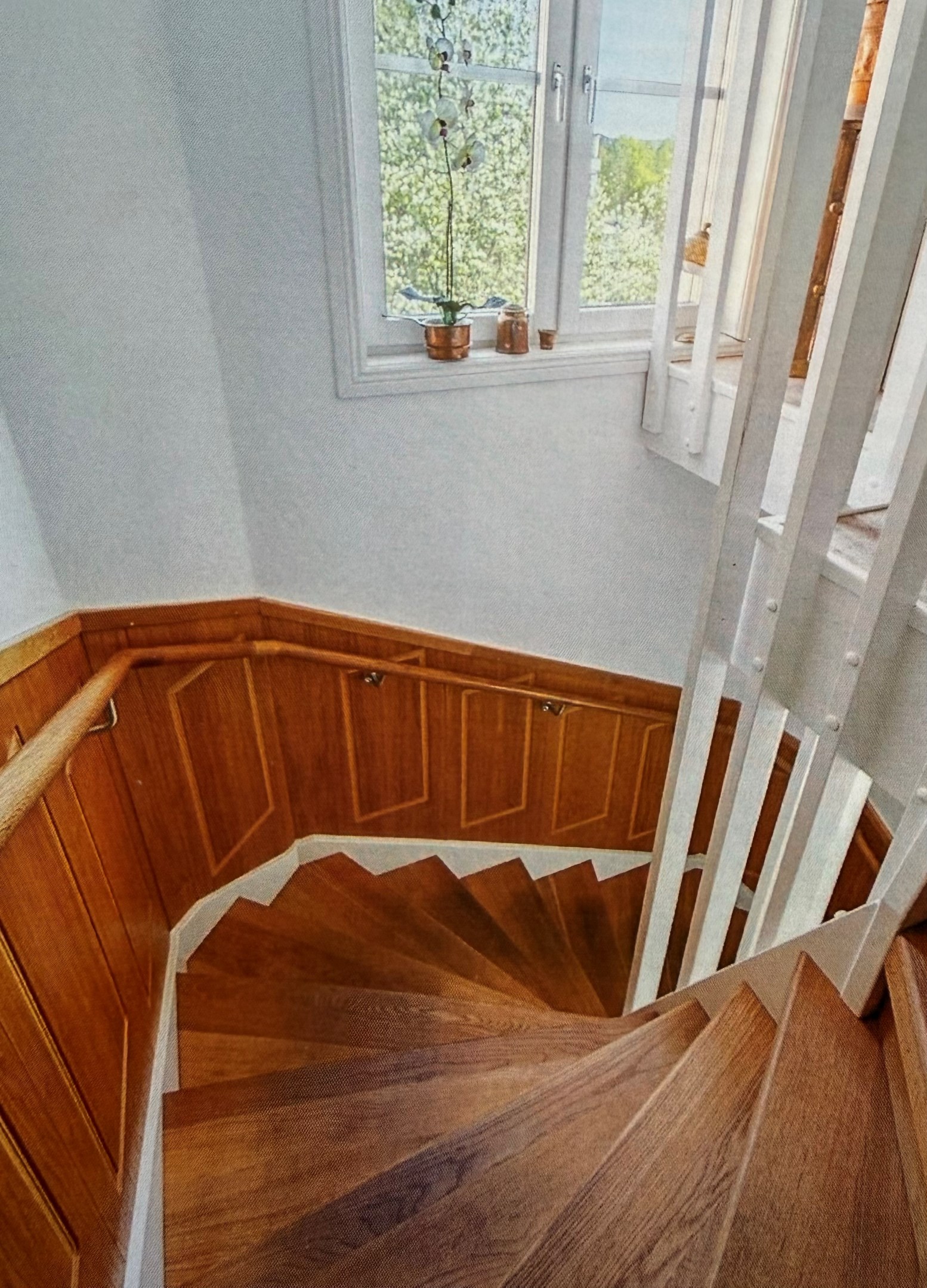 Bottenplans lägenheten om ca 140 kvm och övre plan om ca 90 kvm. Lägenhet bottenplan Luftig och inbjudande hall, här finns gott om plats för ytterkläder i en platsbyggd skjutdörrsgarderob i massiv ek, byggd av lokal snickare och utrustad med både spegel och infälld belysning. De vackra golvytorna pryds av klassisk ekparkett som löper vidare genom hemmets rum och skapar en enhetlig känsla, väggarna har en ljus ton. Rakt fram från hallen öppnar bostaden upp sig mot den representativa delen med matrum och vardagsrum. Här möts ni av tidstypiska skjutdörrar mellan rummen, vacker stuckatur och takmålningar utförda av den kände formgivaren och konstnären Otto Wretling. Den stilsäkra öppna spisen ger både värme och karaktär (behöver ses över innan eldning) och blir en naturlig samlingspunkt under årets kallare månader. Väggarna har en ljus tapet som förstärker rummens rymd. Vidare in i vardagsrummet väntar samma generösa takhöjd och stora fönsterpartier som skapar ett fantastiskt ljusflöde. De rymliga ytorna ger stor flexibilitet att möblera med såväl soffgrupp som övrigt möblemang. Även här återfinns vacker stuckatur i taket, genomgående ljusa väggar och parkettgolv som knyter samman hemmet på ett smakfullt sätt. Direkt till vänster från hallen finner ni ett helkaklat tvättrum med tvättmaskin, i stilrena blå och vita toner – fullt utrustat för att möta familjens behov av smidig klädvård. Från hallen nås även ett av hemmets badrum. Smakfullt inrett med kakel och klinker i gråblå nyanser samt behaglig golvvärme. Här finns kommod med handfat och spegelskåp, wc samt ett härligt badkar. Fönster bidrar med både dagsljus och möjlighet till vädring – en praktisk och trivsam lösning i vardagen. Köket är en dröm för den matglade. Ett generöst Tibrokök med luckor i massiv ek, vackra vitrinskåp och infälld belysning skapar en exklusiv känsla. De påkostade bänkskivorna i italiensk marmor harmonierar med ljust beige kakel. Maskinparken i rostfritt består av side-by-side kyl och frys, diskmaskin, inbyggd ugn och mikro samt fläktkåpa. En trevlig vinkellösning med ekskiva och skifferliknande ytskikt ramar in den infällda diskhon. Intill finns en mysig matplats med karaktärsfull bambutapet – perfekt för såväl vardagsmiddagar som långa frukostar. Det större badrummet är ett riktigt hemmaspa. Helkaklat och generöst tilltaget med spotlights och stämningsfull stjärnhimmel i taket. Två stora fönster ger rikligt med ljus över väggar och golv i varma vit/beige toner. Här finns duschhörna med välvda mosaikväggar, rymlig kommod i körsbärsträ med tillhörande spegelskåp, wc, en rymlig bastu samt ett inbjudande bubbelbadkar (ej använt funktionerna på länge). Sovrummet på entréplan erbjuder gott om plats för en större säng. Längs ena väggen löper skjutdörrsgarderober i massiv ek som rymmer en generös förvaring. Väggarna är ljusa och skapar en lugn atmosfär. En vacker ektrappa leder upp till ytterligare två sovrum samt wc. Båda rummen har ljusa väggar och fint ljusinsläpp från fönster. Det ena rummet är utrustat med skjutdörrsgarderob i massiv ek med infällda spotlights. Mellan rummen finns en inbyggd bokhylla som ger charm och karaktär, samt en mindre wc. Även här löper den vackra ekparketten vidare och binder samman våningsplanet på ett enhetligt och stilfullt sätt. Lägenhet övre plan Trapphuset leder oss upp till en unik och charmfull 3:a om ca 90 kvm. Redan vid entrén möts ni av en vacker ytterdörr och en praktisk hallmöbel där ytterkläder smidigt kan hängas av. Hallen är storslagen med sina unika och välbevarade takmålningar av Otto Wretling – en detalj som ger bostaden en alldeles särskild karaktär. Om elden sprakar i öppna spisen när du kliver in infinner sig genast en varm och inbjudande känsla. Väggen mot köket går inte hela vägen upp, vilket skapar ett härligt ljusflöde och en luftig atmosfär. Ljusgrå tapeter och vacker ekparkett, som löper vidare mot kök, vilket ger ett harmoniskt intryck. Till vänster från hall finns en rymlig klädkammare med gott om förvaring för både kläder och annat som behöver stuvas undan. Från hallen nås även det helkaklade badrummet i mjukt ljusrosa toner. Här finns handfat med spegel, wc och badkar. Det stora fönstret ger rummet ett fint dagsljus och en känsla av rymd. Rakt fram öppnar bostaden upp sig mot den representativa delen med luftigt matrum (idag musikrum) och vardagsrum. Tidstypiska skjutdörrar, vacker stuckatur, generös takhöjd och stora fönster skapar en elegant och trivsam miljö. Köket är klassiskt vitt med vita luckor och kakel samt flera öppna sidoskåp som ger både charm och praktisk förvaring. Den mörka bänkskivan bryter av stilfullt mot det ljusa och diskhon är elegant infälld. Fönstrets placering ger fint ljus över arbetsytorna. Side-by-side kyl och frys, spis med häll och ugn samt fläkt. Även här löper en färg på väggarna och binder samman bostadens stil. Sovrummet erbjuder gott om plats för säng och kompletterande möbler. Här finns praktisk förvaring i garderob samt ett generöst fönster som ger ett härligt ljusinsläpp och möjlighet till vädring. Rummet präglas av ljusa väggar och ett vackert ekparkettgolv som skapar en trivsam och ombonad känsla. Källare I källarplanet möts du av klinkergolv och ljusa väggar. Här finns en rymlig tvättstuga samt flera förråd, varav ett lämpar sig utmärkt som vinkällare. Helt enkelt en bostad med själ och vackra tidstypiska detaljer med centralt läge – perfekt för dig som söker något utöver det vanliga.