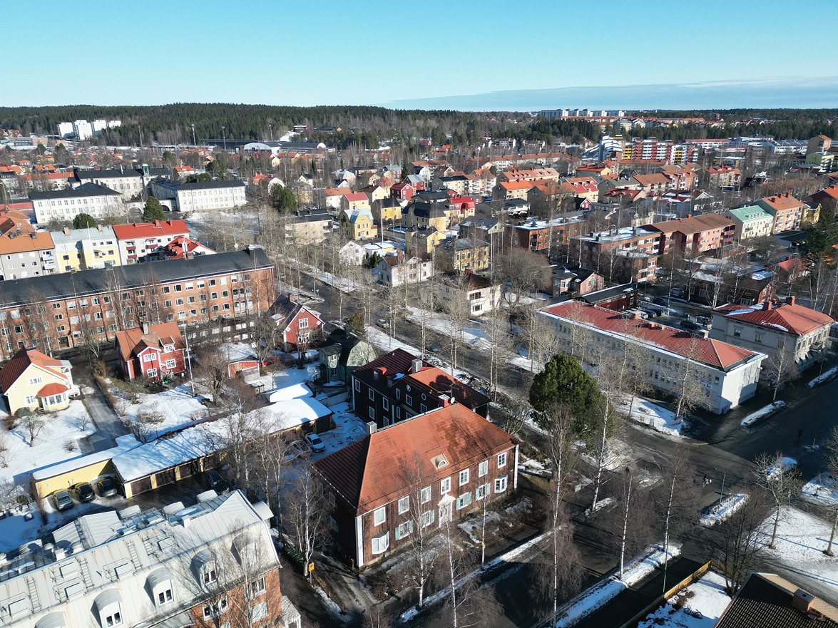 Öst på stan är ett mycket eftertraktat och populärt område med centralt läge mellan centrum och universitetet och sjukhuset. Här är bebyggelsen blandad med många vackra äldre hus och nyare lägenhetshus. Öst på stan finns många mindre butiker, restauranger, gallerier, och caféer. I söder angränsar Umeälven med vackra promenadstråk. Här bor du nära Konstnärligt campus där Bildmuseet, Arkitekthögskolan, Designhögskolan och gymmet Iksu Plus huserar.