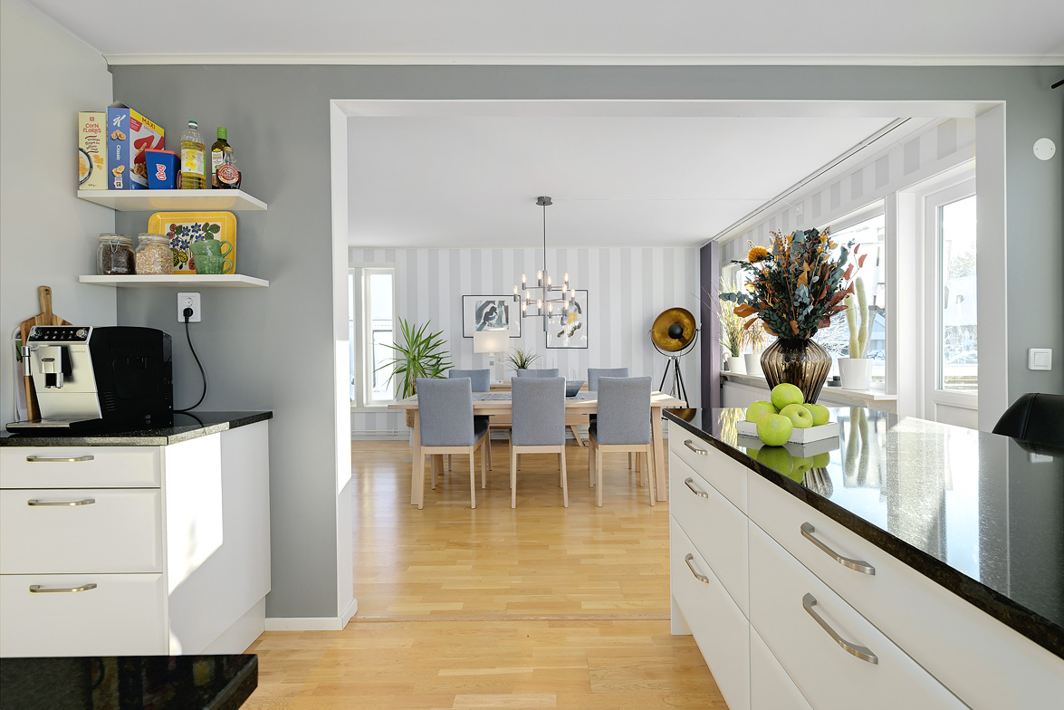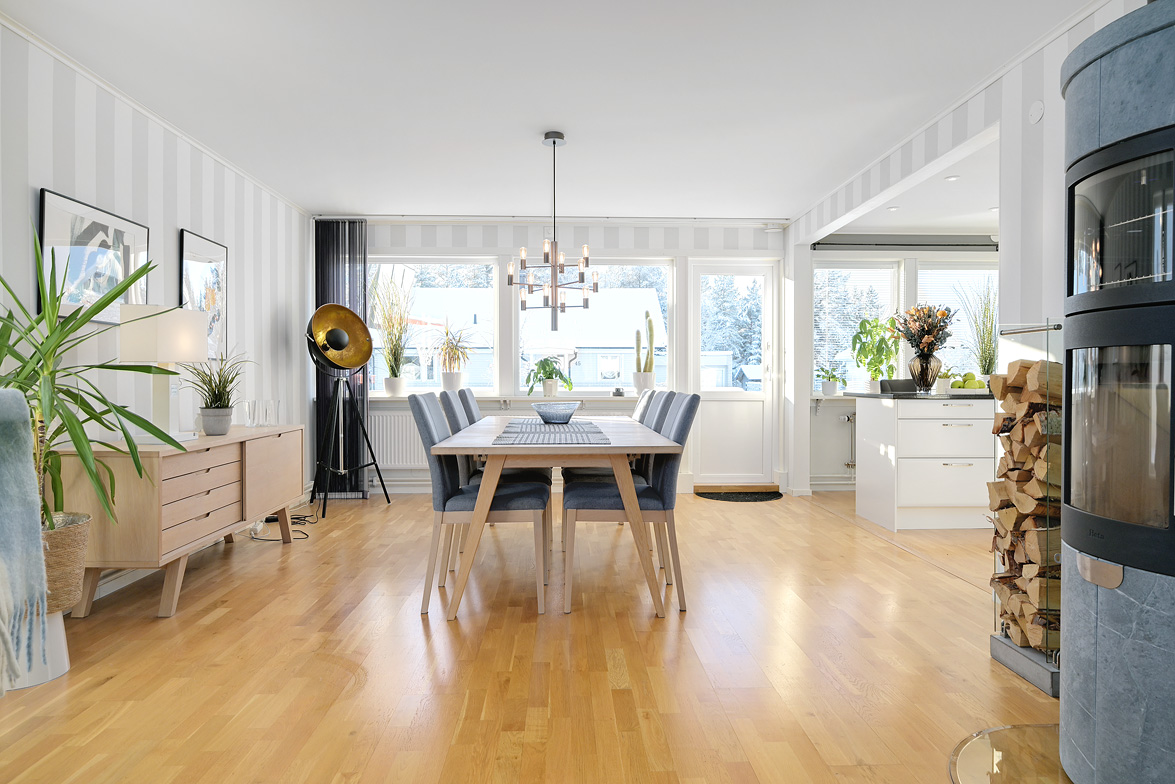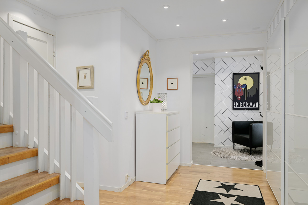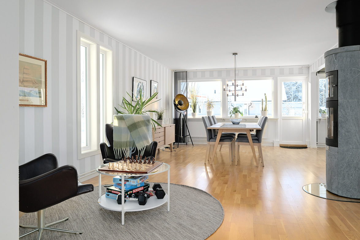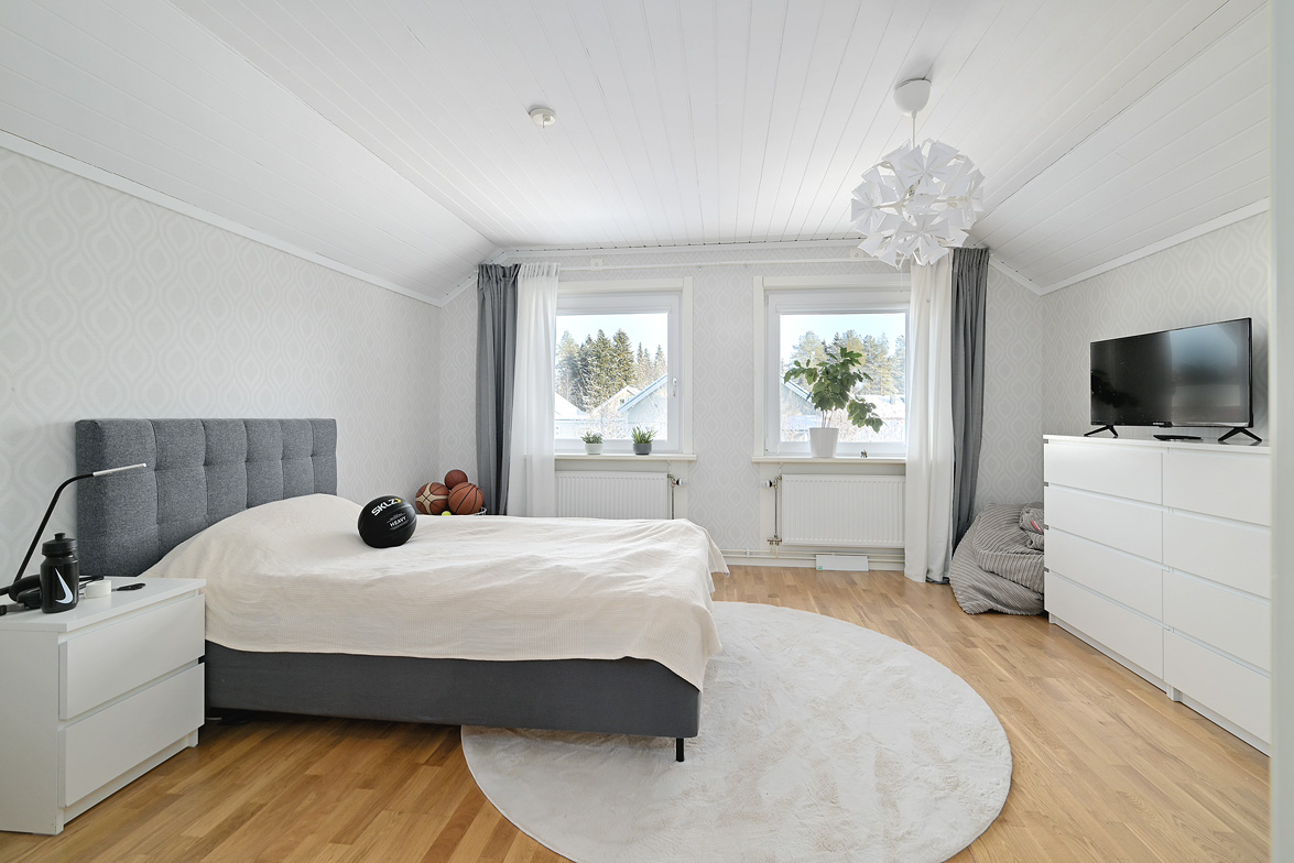 Fiskestigen 22 välkomnar dig till en smakfullt renoverad villa i natursköna Holmsund – ett hem som erbjuder både lugn och närhet till allt som behövs i vardagen. Här bor du med bekvämt avstånd till skolor, förskolor, idrottsanläggningar, vårdcentral, äldreboende, frisörer, restauranger och bageri. Samtidigt når du centrala Umeå med en kort bilfärd, och goda bussförbindelser gör pendlingen enkel och smidig. Huset är i princip helt renoverat invändigt och till stora delar även utvändigt. Redan i entrén möts du av klinkergolv med behaglig golvvärme, och vidare genom bostaden löper ett enhetligt ekparkettgolv som skapar en varm och harmonisk känsla. Det påkostade köket från 2019 är hemmets naturliga samlingspunkt. Här finns generösa arbetsytor, exklusiva bänkskivor i granit och en praktisk köksö som bjuder in till både matlagning och umgänge. I anslutning väntar ett rymligt vardagsrum med plats för såväl soffgrupp som matbord. Den vackra täljstenskaminen med bakugn bidrar inte bara till en hög mysfaktor utan sprider också behaglig värme under årets kallare månader. Bostaden är flexibel och erbjuder möjlighet till upp till fem sovrum, varav tre nyttjas idag. På övervåningen finns dessutom ett stort allrum – perfekt som extra vardagsrum, lekyta eller tv-rum – samt ett sovrum med en generös walk-in-closet som ger en lyxig och privat känsla. Utomhus väntar en härlig altan i västerläge där du kan njuta av många soltimmar och långa sommarkvällar tillsammans med familj och vänner. Till fastigheten hör även ett dubbelgarage utrustat med luftvärmepump och fjärröppnare, vilket ger både komfort och praktiska förvaringsmöjligheter. Som en extra bonus är huset utrustat med solceller som genererar över 6000 kWh per år. Säljarna erbjuder dessutom att köpa loss anläggningen från Umeå Energi till köparen för 120 000 kr – en investering som bidrar till lägre driftkostnader och ett mer hållbart boende. Detta är ett hem att trivas i från första stund – modernt, energieffektivt och med gott om plats för både vardagsliv och framtidsplaner. Varmt välkommen att upptäcka allt som Fiskestigen 22 har att erbjuda.