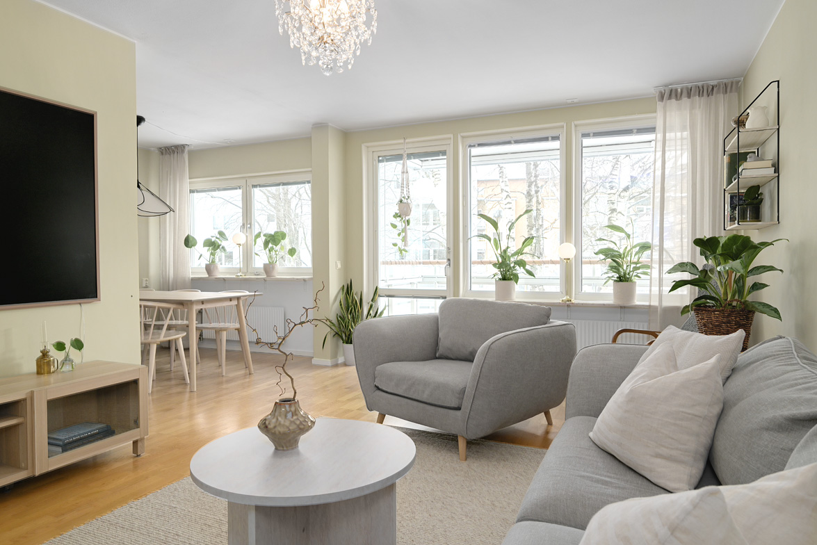 Välkommen till denna trivsamma, luftiga och välplanerade lägenhet med den sällsynta lyxen av två inglasade balkonger. Här bor du på populära Väst på Stan, omgiven av grönskande innergårdar i en lugn och skön miljö, samtidigt som du har Umeå centrum på bekvämt promenadavstånd – det bästa av två världar. Bostaden tillhör en välmående och ekonomiskt stabil förening där allt ingår i månadsavgiften, vilket skapar ett bekvämt och tryggt boende. Redan i hallen möts du av ett stilrent och välkomnande intryck med klinkergolv, gott om plats för avhängning samt generösa förvaringsmöjligheter. Det helkaklade badrummet är smakfullt inrett och erbjuder dubbla handfat, torktumlare, tvättmaskin och golvvärme för extra komfort i vardagen. Vardagsrummet är rymligt och lättmöblerat med gott om plats för en större soffgrupp där hela bekantskapskretsen får plats. Härifrån når du den ena inglasade balkongen – en perfekt plats för avkoppling med familj och vänner eller en lugn stund på egen hand med en bra bok. Från vardagsrummet når du även bostadens kök och matplatsdel. Köket är fräscht och praktiskt utformat med dubbelsidig arbetsyta som ger gott om bänkyta och förvaring. Intill finns en rymlig matplats med plats för ett större matbord, vilket gör detta till en naturlig samlingspunkt i hemmet. Lägenheten erbjuder två rymliga sovrum. Det större sovrummet rymmer enkelt en dubbelsäng och har gott om förvaringsmöjligheter. Härifrån når du även den andra inglasade balkongen, som precis som den första blir en härlig förlängning av bostaden och en självklar plats för såväl umgänge som avkoppling. Det andra sovrummet är även det generöst tilltaget och lämpar sig lika väl som sovrum, barnrum, gästrum eller hemmakontor. Är du en kräsen bostadsköpare som enbart nöjer dig med det bästa? Då har du äntligen hittat rätt. Varmt välkommen att anmäla ditt intresse!