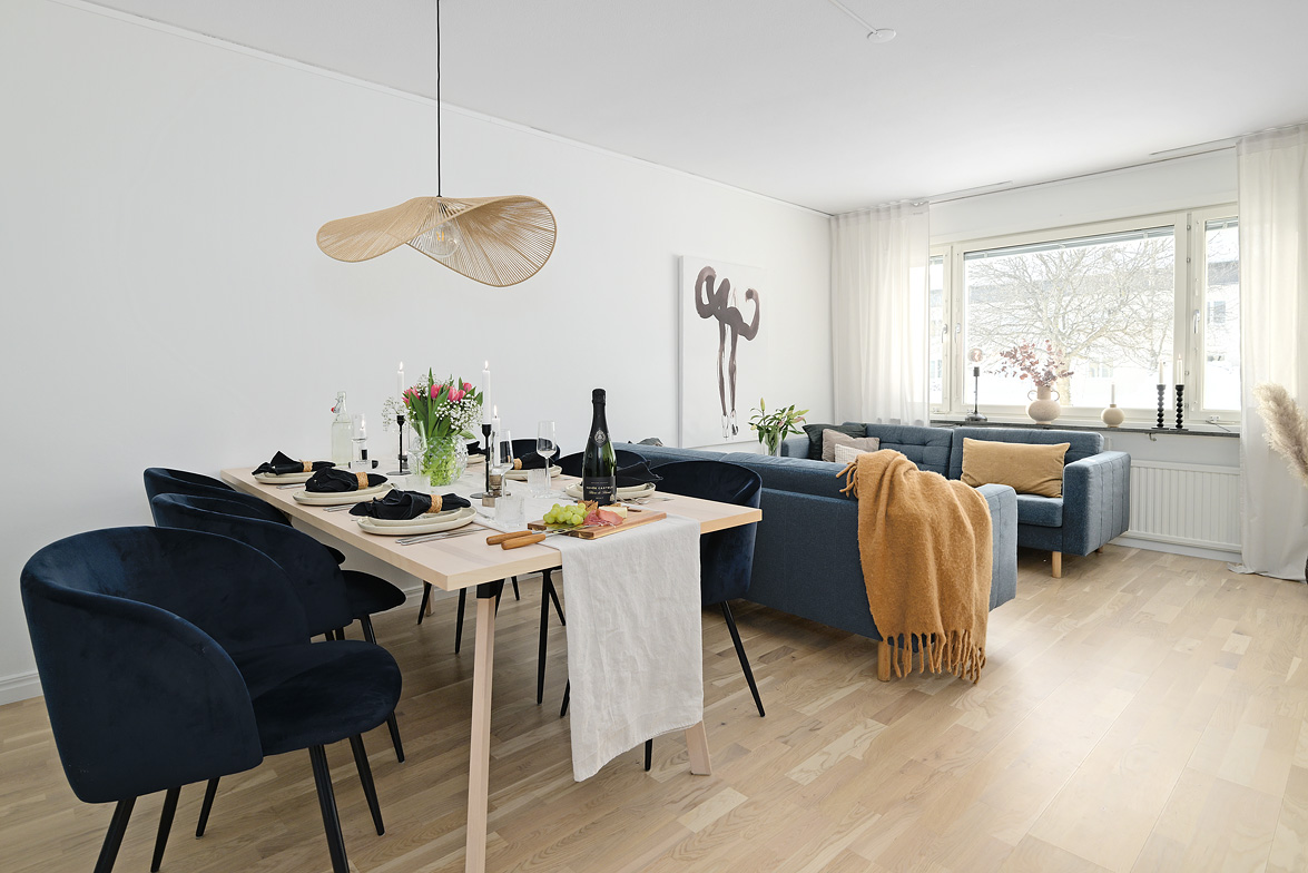 Välkommen till Kråkbärsvägen och denna totalrenoverade 3a en halvtrappa upp! Här möts du av en genomtänkt helhet där varje rum har sin egen karaktär, samtidigt som den röda tråden av ljusa golv, stilrena materialval och noggrant utvalda kulörer binder samman hemmet. Planlösningen är optimal med en tydlig uppdelning mellan sociala och privata ytor. Vardagsrum och kök ligger i en öppen och inbjudande del av bostaden – perfekta för umgänge och middagar – medan sovrummen är placerade mer avskilt. Generöst med ljusflöde tack vare fönster i två väderstreck. Köket är modernt och smakfullt med dämpat gröna luckor, mässingsdetaljer och stilrent vitt kakel som stänkskydd vilket skapar en tidlös känsla. Badrummet är helrenoverat med en grå matta på golv och vägg som matchas till svarta detaljer. Båda sovrummen har bra storlek och erbjuder gott om förvaring. Som pricken över i:et finns den mysiga inglasade balkongen mot föreningens lugna innergård. Här skapas ett extra rum större delen av året – en skyddad och rofylld plats att njuta av morgonkaffet, läsa en bok eller umgås med vänner. Här är det bara att flytta in och börja trivas! Välkommen på visning.