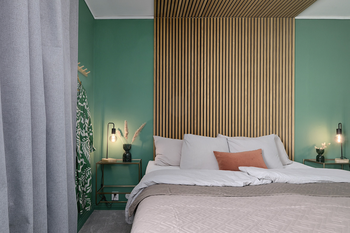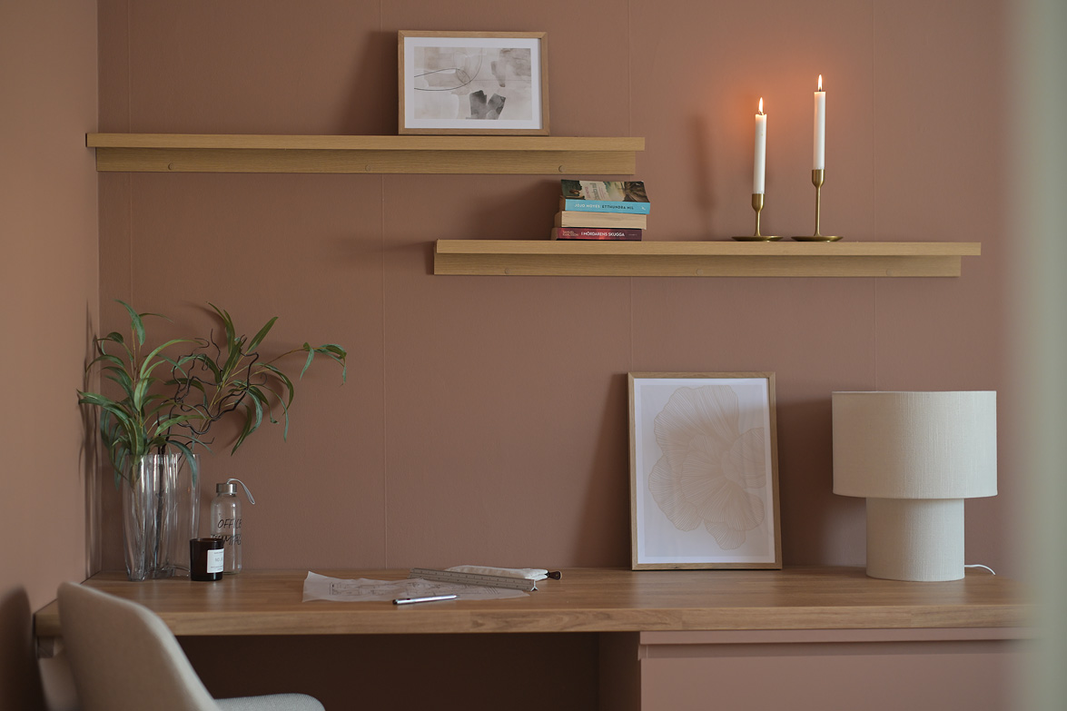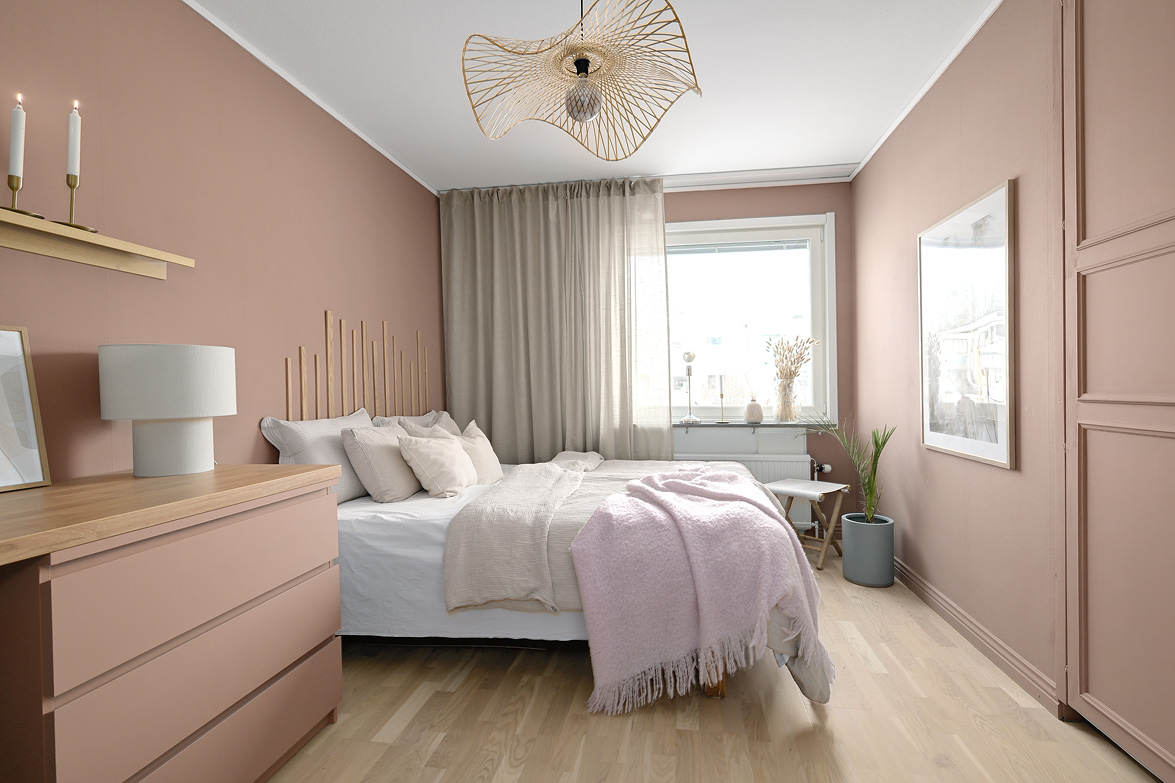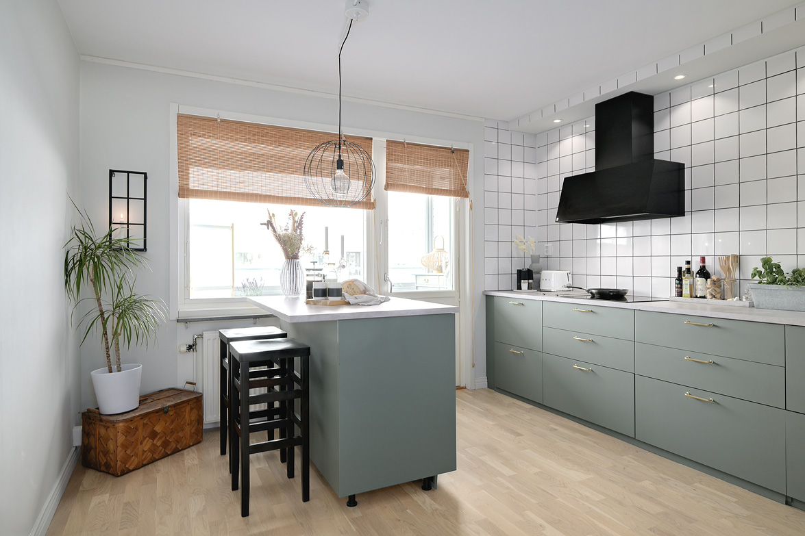 Hall Välkomnande och ljus entré med vitmålade väggar och genomgående ljus parkett som leder vidare genom bostaden och skapar en fin helhet. Här finns goda förvaringsmöjligheter i stilrena garderober med mässingshandtag som ger en elegant detalj. Mellan garderoberna finns plats för bänk eller annan möbel. Hallens neutrala bas låter bostadens övriga färgsättning ta vid på ett harmoniskt sätt. Kök Ett smakfullt totalrenoverat kök där färgvalet verkligen sätter tonen. Luckorna går i en dämpad salviagrön kulör som tillsammans med mässingshandtag skapar en mjuk och exklusiv känsla. Ovan arbetsytorna sitter vitt kakel i klassiskt rutmönster som ger ett tidlöst uttryck och förstärker ljuset i rummet. Kökets maskinpark består av integrerad diskmaskin, spishäll, fläkt, kyl/frys samt ugn och micro i modern och bekväm arbetshöjd. Bänkskivan i ljus ton ger en fin kontrast mot de gröna luckorna och den svarta köksfläkten adderar modern karaktär. Den fina köksön med förvaring fungerar både som arbetsyta och en perfekt frukostplats. Köksön är inte skruvad i golvet och går därför att ta bort om man hellre önskar ett matbord här. Stora fönster samt utgång till inglasningen skapar ett fint ljusflöde! Vardagsrum Ett generöst och ljust rum med stora fönsterpartier och vitmålade väggar som skapar en perfekt bas för inredning. Här ryms både soffgrupp och matplats. Bakom nuvarande TV-bänk finns en smakfull akustikpanel. Här ligger samma fina ekparkett som övrig bostadsyta. Sovrum 1 Ett mer uttrycksfullt sovrum med gröna väggar som ger en djup och ombonad känsla. Den ribbade träpanelen bakom sängen skapar en fin varm kontrast. De rymliga och platsbyggda garderoberna i matchande grön kulör smälter in stilrent samtidigt som som erbjuder stora förvaringsmöjligheter. Båda sovrummen har fönster mot föreningens innergård. Sovrum 2 Det större sovrummet är målat i en varm, dämpad terracotta-ton som skapar en mjuk känsla. Färgen ger rummet karaktär samtidigt som den upplevs harmonisk och omfamnande. Här finns gott om plats för dubbelsäng, sängbord och förvaring. Badrum Helrenoverat och stilrent badrum i smakfulla grå toner på både väggar och golv. Den enhetliga färgsättningen ger ett lugnt och modernt uttryck. Svarta detaljer i takdusch, duschvägg och handdukstork skapar en fin kontrast. Kommoden går i grått med mörk bänkskiva och ovanpå sitter ett stilrent runt handfat. Här finns även tvättmaskin med praktisk arbetsbänk ovanför till klädvård. Inglasad balkong En verklig förlängning av bostaden. Golvet i trä ger en varm och naturlig känsla medan den generösa inglasningen skapar ljus och skydd. Placeringen mot föreningens innergård ger en lugn och trivsam vy.