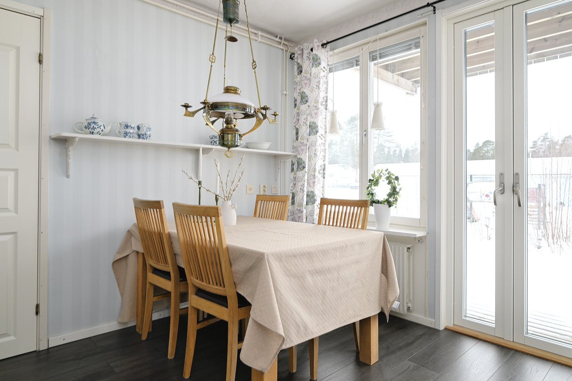 Välkommen till denna trivsamma och välplanerade lägenhet med två uteplatser, en på framsidan och en härlig uteplats mot grönskande innergård på baksidan. Bostaden ingår i en ekonomiskt stabil förening belägen på populära Umedalen. Här bor du med ett lugnt och omtyckt läge som kombinerar naturnära omgivningar med närhet till service, kommunikationer och centrala Umeå. Bostaden erbjuder en genomtänkt planlösning där varje kvadratmeter tas tillvara på bästa sätt och gott om förvaring. Vardagsrummet är ljust och inbjudande med generöst ljusinsläpp och plats för både soffgrupp och matbord. Köket är funktionellt och trivsamt med bra arbetsytor och gott om förvaring. Intill fönstret finns plats för matbord, vilket ger en ljus och trevlig matplats. Härifrån nås uteplatsen på baksidan som blir en naturlig förlängning av bostaden under årets varmare månader. Med sitt skyddade läge mot föreningens innergård skapas en rofylld och privat miljö – perfekt för morgonkaffet, middagar med vänner eller en stunds avkoppling i grönskans närvaro. Båda sovrummen är praktiska och rymliga samt erbjuder gott om förvaringsutrymme. Badrummet är stilrent, fräscht och lättskött. Föreningen är välskött och ekonomiskt stabil, vilket ger en trygg och långsiktig boendesituation. Den gröna och välordnade innergården bidrar till den trivsamma atmosfären i området. På Umedalen bor du med närhet till matbutik, restauranger, gym och goda bussförbindelser. Samtidigt finns fina promenadstråk och rekreationsområden alldeles i närheten. Detta är ett hem för dig som söker ett bekvämt och välplanerat boende med uteplatser i ett lugnt och attraktivt område. Varmt välkommen att boka din visning!