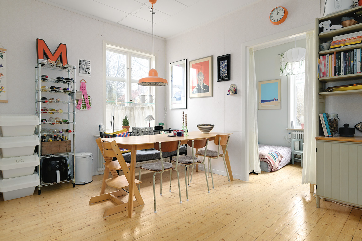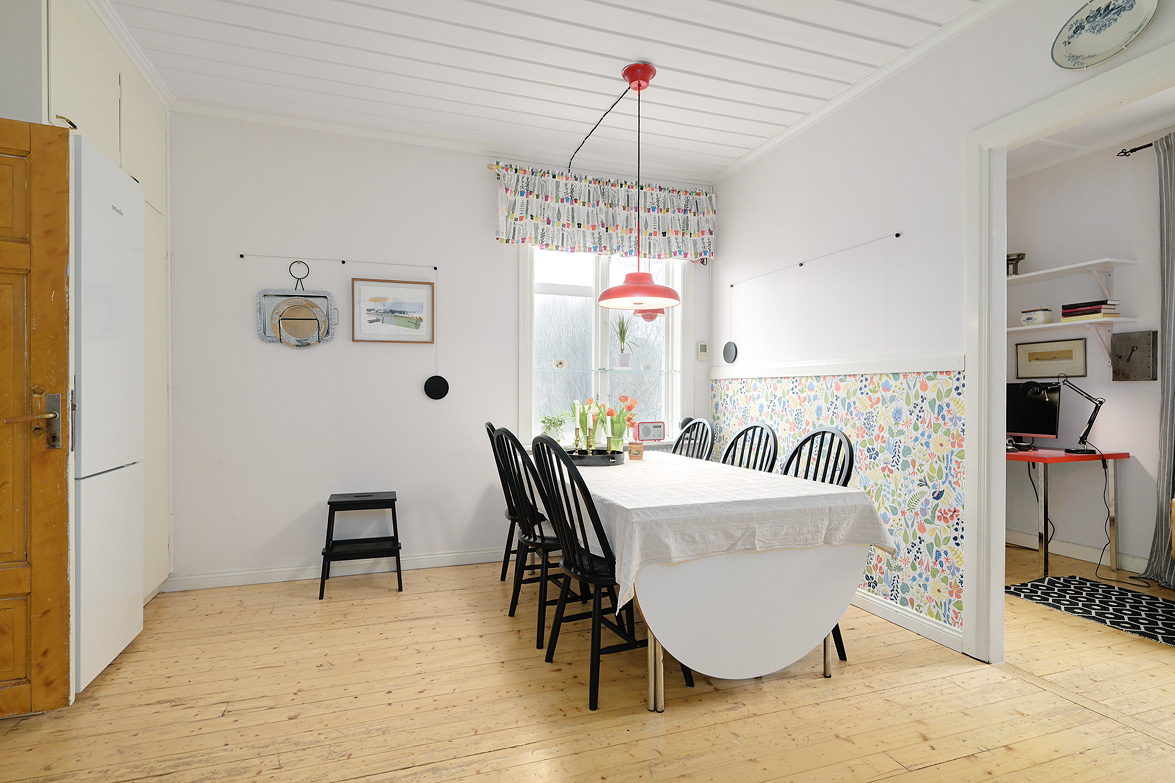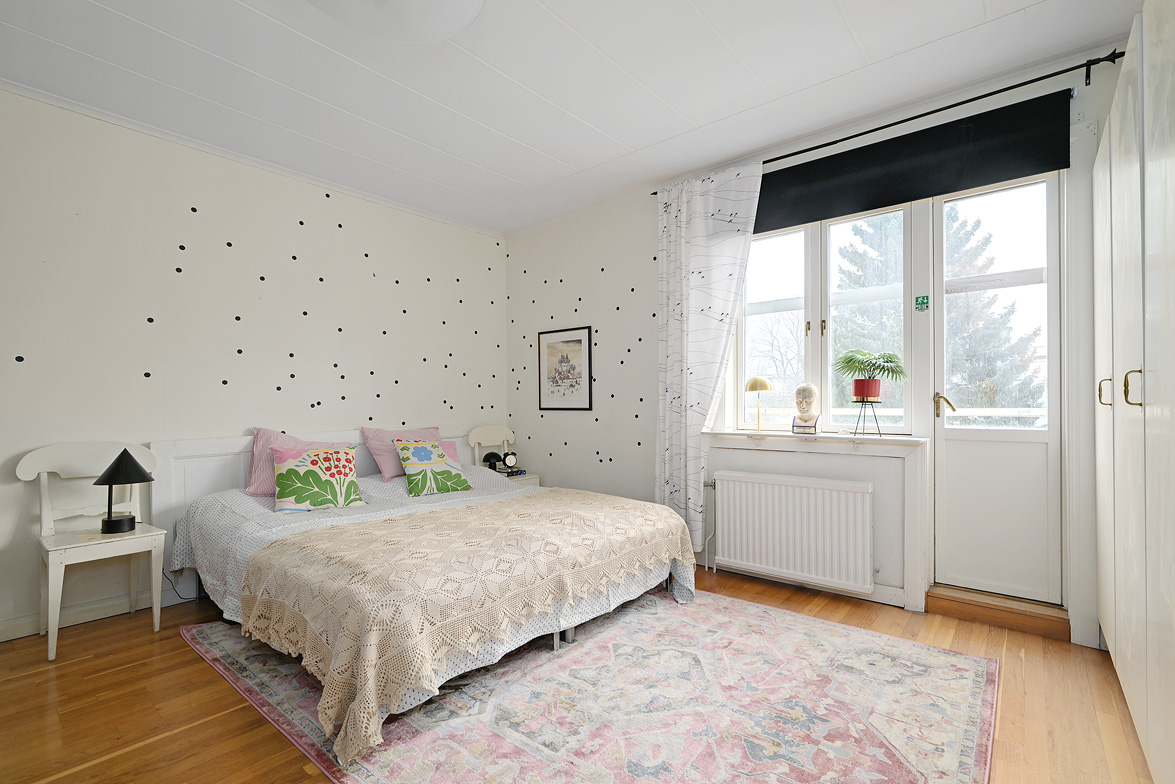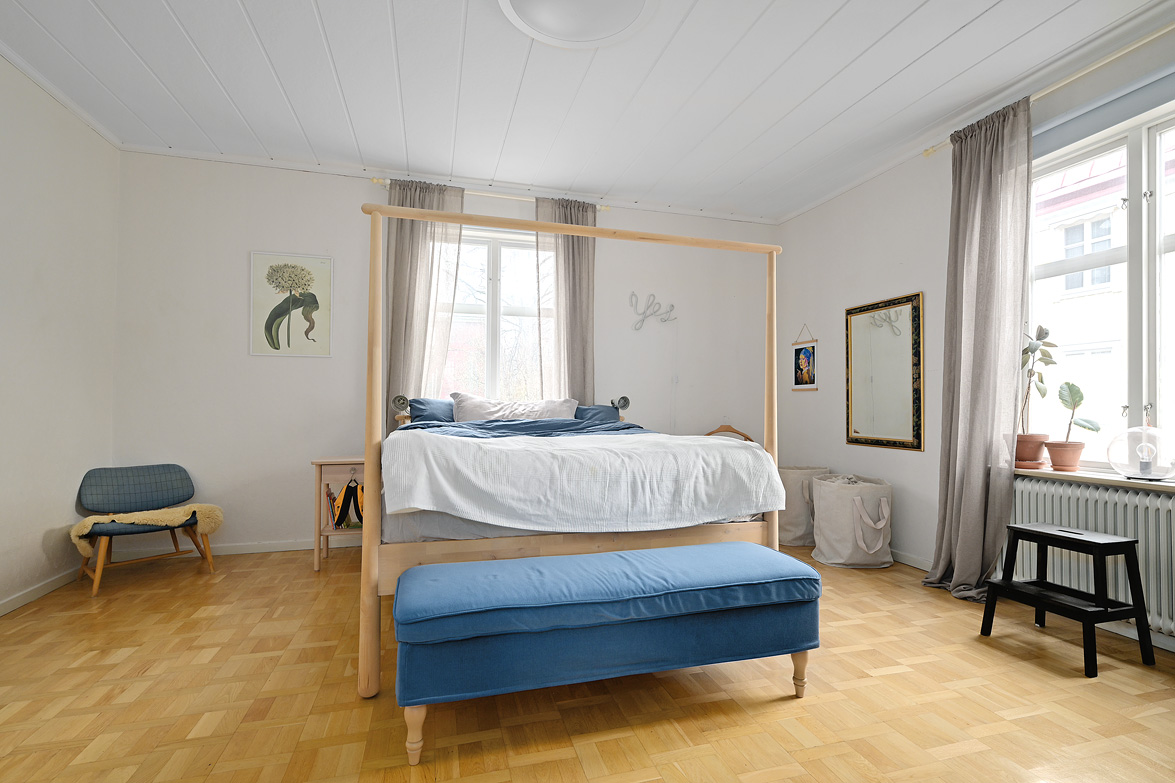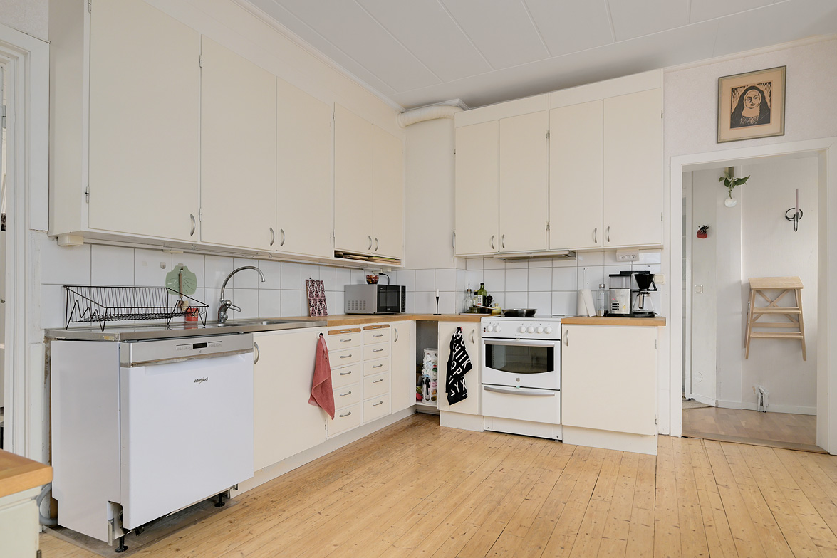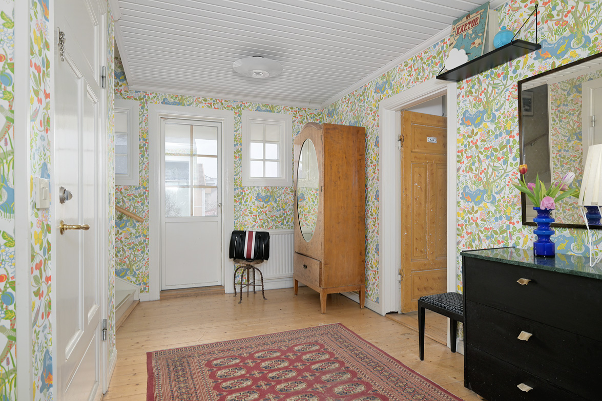 Här erbjuds en unik och flexibel boendemiljö med lägenhet på bottenplan om ca 90 kvm, en rymlig lägenhet om ca 180 kvm fördelad över två plan samt ett gårdshus om ca 60 kvm. Lägenhet bottenplan ca 90 kvm Hall Luftig och inbjudande hall med generös takhöjd som direkt sätter tonen för bostaden. Här finns gott om plats för ytterkläder, både öppet och i garderob, samt möjlighet till smakfull möblering. Klassisk ekparkett och väggar i ljus ton skapar en varm och trivsam känsla. Vardagsrum Från hallen öppnar bostaden upp sig mot vardagsrummet, ett härligt sällskapsrum med stora fönsterpartier som ger fint ljusinsläpp och den vackra takhöjd som är så typisk för huset. Här finns gott om plats för soffa, fåtöljer och övrigt möblemang. Ljusa väggar och vackra golv bidrar till den harmoniska helheten. Matrum/rum I anslutning till vardagsrummet ligger ytterligare ett rymligt och ljust rum som idag används som sovrum. Rummet lämpar sig lika väl som matrum, extra sällskapsrum eller ett generöst sovrum, beroende på familjens behov. Ljusa väggar möter parkettgolv och skapar en tidlös och trivsam miljö. Förvaring I passagen mellan rummen finns mycket god förvaring i inbyggda garderober, eller skrubbar som det kallades förr. Här ryms sänglinne, kläder och annat som man gärna vill ha undanplockat men nära till hands. Kök Det ljusa och rymliga köket nås även det från hallen. Här finns de höga överskåpen bevarade, vilket ger både karaktär och god förvaring. Matplatsen är fint placerad vid fönstren och blir en naturlig plats för såväl vardagsmiddagar som långa frukostar. Här möts ljusa väggar av vackert plankgolv. Köket är utrustat med spis med häll och ugn, fläkt, diskmaskin samt kyl/frys. Sovrum/kontor Innanför köket ligger ett extra rum som kan användas som sovrum, kontor eller hobbyrum. Ett fint fönster, ljusa väggar och plankgolv skapar en trivsam känsla även här. Badrum Från hallen nås hemmets badrum och är inrett med ljus väggmatta, mörk golvmatta och behaglig el-golvvärme. Här finns kommod med handfat, spegelskåp, wc och dusch med vikväggar. Fönster ger både dagsljus och möjliggör vädring. Lägenhet övre plan ca 180 kvm Den generösa, tidstypiska 20-talstrappan leder upp till den större lägenheten. Här möts man av hög takhöjd, fina originaldetaljer och en vacker kombination av parkett- och plankgolv som binder samman hemmet på ett smakfullt sätt. Hall Den stora hallen välkomnar med varm och ombonad känsla. Här samsas ljuvliga tapeter med rejält plankgolv och gott om plats för möblering. Förvaring finns i garderober och skåp, och via dörr nås en balkong mot gården. Vardagsrum Från hallen öppnar bostaden upp sig mot vardagsrummet, ett ljust och representativt sällskapsrum med stora fönsterpartier och härligt ljusflöde. Här finns gott om plats för både soffgrupp och övrigt möblemang. Ljusa väggar och parkettgolv skapar en elegant bas. Matrum/rum Intill ligger ytterligare ett rymligt rum med många användningsmöjligheter. Det fungerar lika fint som matrum, sällskapsrum eller sovrum. Grå väggar tillsammans med parkettgolv ger rummet en stilren och behaglig känsla. Förvaring I passagen mellan rummen finns även här bra förvaringsmöjligheter i inbyggda garderober och skrubbar, perfekt för kläder, linneskåp och sådant som behöver en naturlig plats i vardagen. Kök Det ljusa köket erbjuder gott om plats och har fin karaktär med bevarade höga överskåp som ger bra förvaring. Matplatsen är trivsamt placerad vid fönstren och bjuder in till både vardag och helg. Härligt plankgolv möter ljusa väggar. Köket är utrustat med spis med häll och ugn, fläkt, diskmaskin samt kyl/frys. Sovrum/kontor Innanför köket finns ytterligare ett rum som passar utmärkt som sovrum, arbetsrum eller gästrum. Här finns fint ljusinsläpp, plankgolv och ljusa väggar. Badrum 1 Från hallen nås badrum, smakfullt inrett med kakel och klinker i ljusa nyanser samt behaglig el-golvvärme. Här finns kommod med handfat, spegelskåp, wc samt dusch med vikväggar. Fönster bidrar med fint dagsljus och möjlighet till vädring. Övre plan i lägenheten Den generösa trappan leder vidare upp till lägenhetens övre plan. Här uppe flödar ljuset in genom olika tidstypiska fönstersättningar och skapar en luftig och trivsam atmosfär. Hall Här möts vi av en ljus hall med fint fönster och plats för mysig möblering. Ljusa väggar och matta på golv. Fyra rum – sovrum/allrum Här finns fyra rejäla rum som passar utmärkt som sovrum, allrum eller arbetsrum. Två av de större rummen rymmer utan problem dubbelsäng och kan även användas som extra vardagsrum eller tonårsdel. Från ett av de större rummen finns utgång till balkong. De två mindre rummen passar perfekt som barnrum, gästrum eller kontor. Samtliga rum har fina tapeter och parkettgolv, och flera platsbyggda garderober erbjuder mycket bra förvaring. Badrum 2 Även detta badrum är ljust och trivsamt, med väggmatta, mörk golvmatta och en livfull putsad vägg som ger rummet karaktär. Här finns tvättställskommod, spegelskåp, wc och dusch. Källarplan I källaren erbjuds många praktiska ytor som underlättar familjelivet. Här finns bland annat bastu med relax, tvättstuga med bra arbetsytor, förråd, matkällare, hobbyrum samt teknikrum. Gårdshus ca 60 kvm Det ljusa gårdshuset uppfördes 1994 - ursprungligen en verkstad för fritidsintressen men har senare inretts som lägenhet. Här finns en trivsam och flexibel yta med många möjligheter. Allrum Stort och luftigt allrum med full takhöjd, många fönster och fint ljusinsläpp. Här finns plats för generös möblering och sociala ytor. Ljusa väggar och plankgolv ger en varm och inbjudande känsla. Kök Köksdelen ligger i öppen planlösning mot allrummet, vilket skapar en social och lättmöblerad yta. Köket är utrustat med kyl/frys, spis med ugn