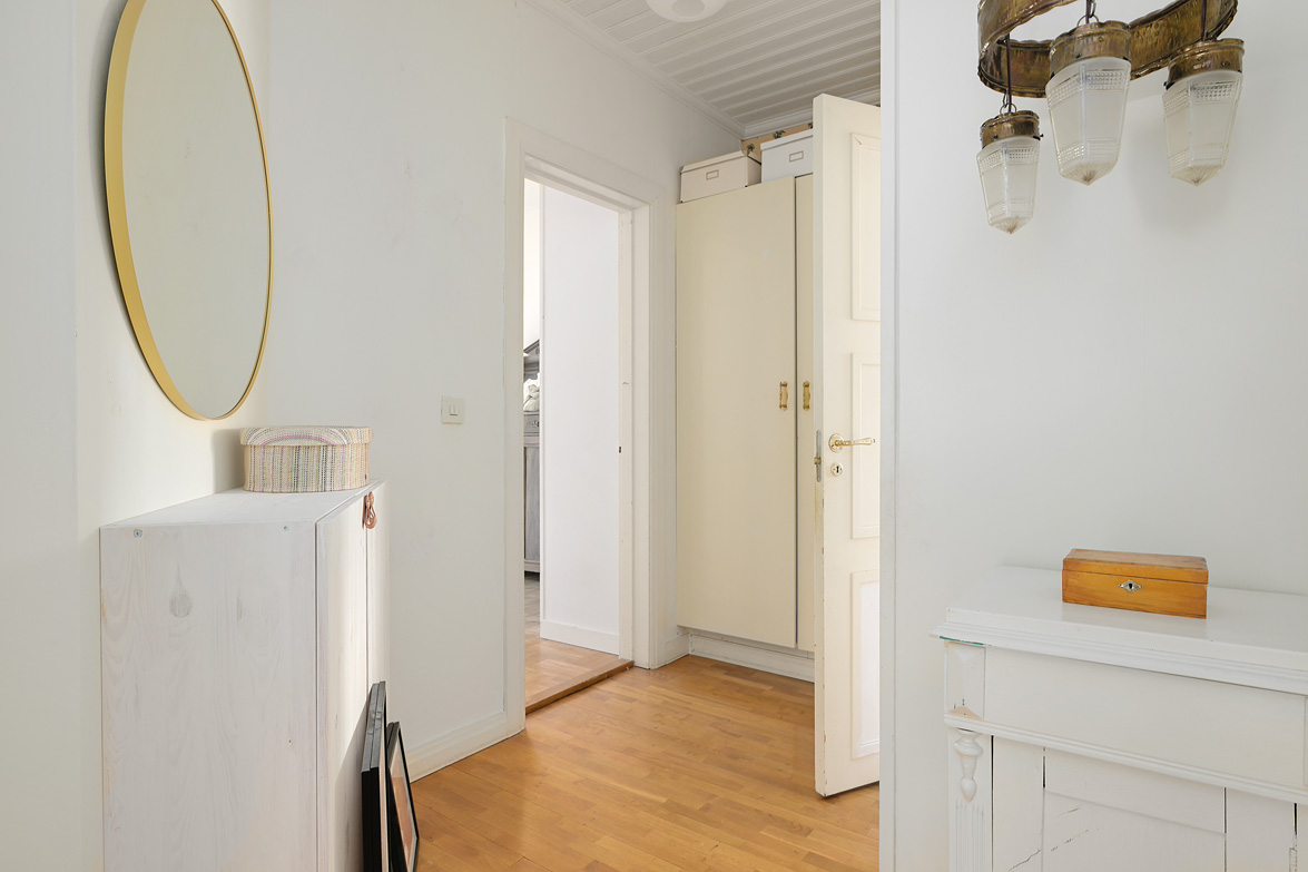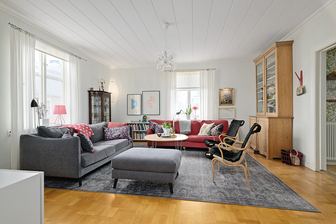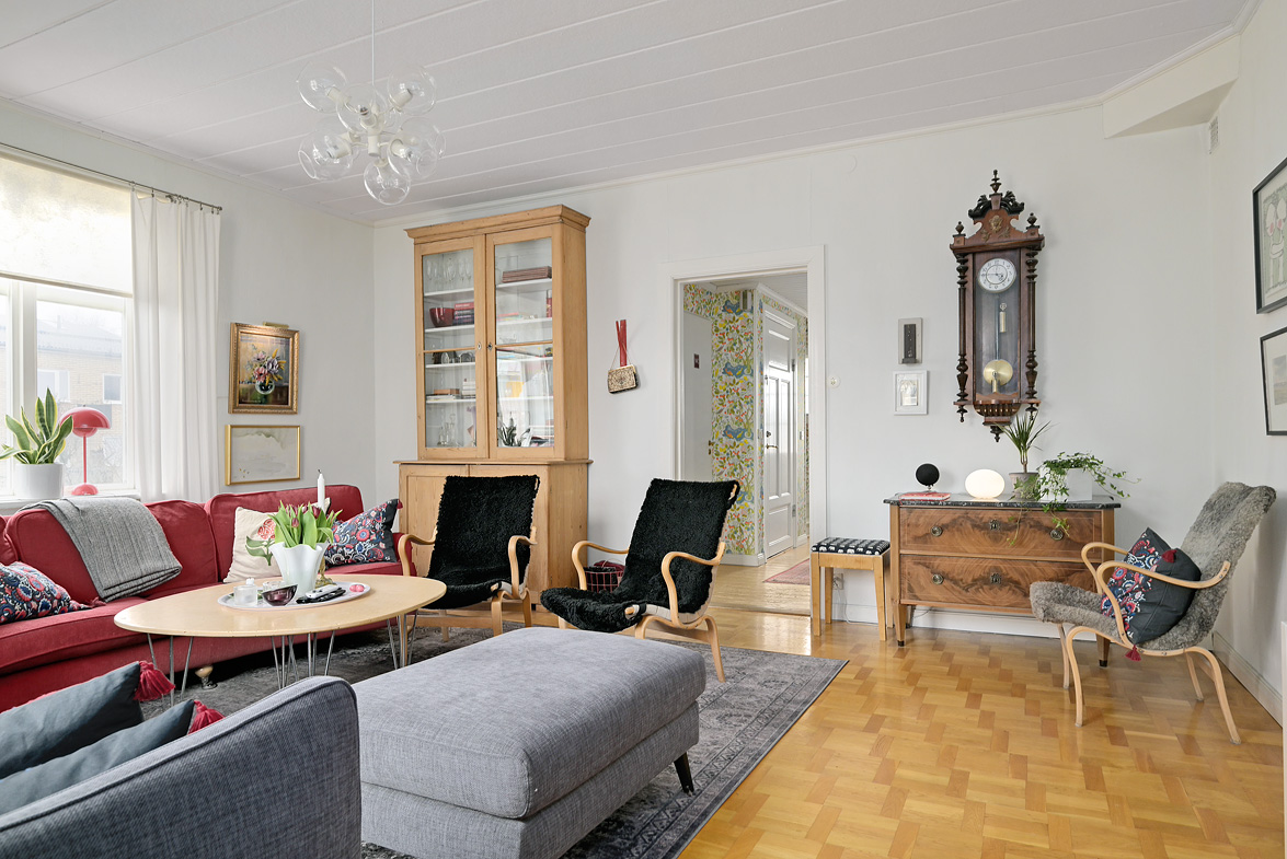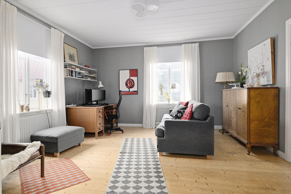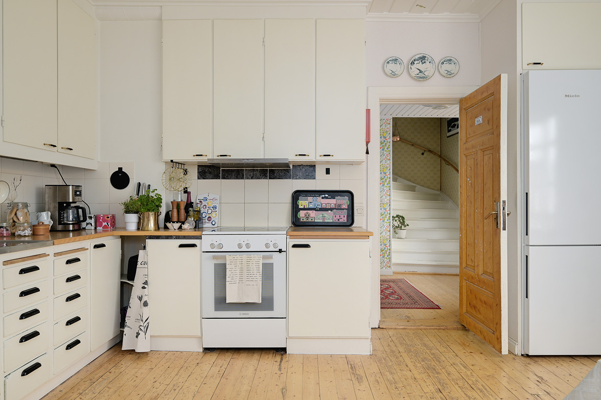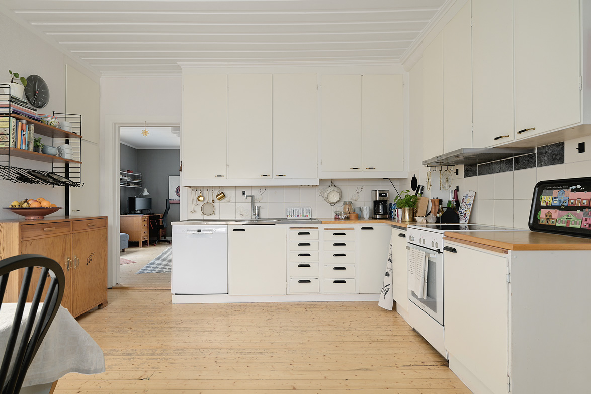 Här erbjuds en unik och flexibel boendemiljö med lägenhet på bottenplan om ca 90 kvm, en rymlig lägenhet om ca 180 kvm fördelad över två plan samt ett gårdshus om ca 60 kvm. Lägenhet bottenplan ca 90 kvm Hall Luftig och inbjudande hall med generös takhöjd som direkt sätter tonen för bostaden. Här finns gott om plats för ytterkläder, både öppet och i garderob, samt möjlighet till smakfull möblering. Klassisk ekparkett och väggar i ljus ton skapar en varm och trivsam känsla. Vardagsrum Från hallen öppnar bostaden upp sig mot vardagsrummet, ett härligt sällskapsrum med stora fönsterpartier som ger fint ljusinsläpp och den vackra takhöjd som är så typisk för huset. Här finns gott om plats för soffa, fåtöljer och övrigt möblemang. Ljusa väggar och vackra golv bidrar till den harmoniska helheten. Matrum/rum I anslutning till vardagsrummet ligger ytterligare ett rymligt och ljust rum som idag används som sovrum. Rummet lämpar sig lika väl som matrum, extra sällskapsrum eller ett generöst sovrum, beroende på familjens behov. Ljusa väggar möter parkettgolv och skapar en tidlös och trivsam miljö. Förvaring I passagen mellan rummen finns mycket god förvaring i inbyggda garderober, eller skrubbar som det kallades förr. Här ryms sänglinne, kläder och annat som man gärna vill ha undanplockat men nära till hands. Kök Det ljusa och rymliga köket nås även det från hallen. Här finns de höga överskåpen bevarade, vilket ger både karaktär och god förvaring. Matplatsen är fint placerad vid fönstren och blir en naturlig plats för såväl vardagsmiddagar som långa frukostar. Här möts ljusa väggar av vackert plankgolv. Köket är utrustat med spis med häll och ugn, fläkt, diskmaskin samt kyl/frys. Sovrum/kontor Innanför köket ligger ett extra rum som kan användas som sovrum, kontor eller hobbyrum. Ett fint fönster, ljusa väggar och plankgolv skapar en trivsam känsla även här. Badrum Från hallen nås hemmets badrum och är inrett med ljus väggmatta, mörk golvmatta och behaglig el-golvvärme. Här finns kommod med handfat, spegelskåp, wc och dusch med vikväggar. Fönster ger både dagsljus och möjliggör vädring. Lägenhet övre plan ca 180 kvm Den generösa, tidstypiska 20-talstrappan leder upp till den större lägenheten. Här möts man av hög takhöjd, fina originaldetaljer och en vacker kombination av parkett- och plankgolv som binder samman hemmet på ett smakfullt sätt. Hall Den stora hallen välkomnar med varm och ombonad känsla. Här samsas ljuvliga tapeter med rejält plankgolv och gott om plats för möblering. Förvaring finns i garderober och skåp, och via dörr nås en balkong mot gården. Vardagsrum Från hallen öppnar bostaden upp sig mot vardagsrummet, ett ljust och representativt sällskapsrum med stora fönsterpartier och härligt ljusflöde. Här finns gott om plats för både soffgrupp och övrigt möblemang. Ljusa väggar och parkettgolv skapar en elegant bas. Matrum/rum Intill ligger ytterligare ett rymligt rum med många användningsmöjligheter. Det fungerar lika fint som matrum, sällskapsrum eller sovrum. Grå väggar tillsammans med parkettgolv ger rummet en stilren och behaglig känsla. Förvaring I passagen mellan rummen finns även här bra förvaringsmöjligheter i inbyggda garderober och skrubbar, perfekt för kläder, linneskåp och sådant som behöver en naturlig plats i vardagen. Kök Det ljusa köket erbjuder gott om plats och har fin karaktär med bevarade höga överskåp som ger bra förvaring. Matplatsen är trivsamt placerad vid fönstren och bjuder in till både vardag och helg. Härligt plankgolv möter ljusa väggar. Köket är utrustat med spis med häll och ugn, fläkt, diskmaskin samt kyl/frys. Sovrum/kontor Innanför köket finns ytterligare ett rum som passar utmärkt som sovrum, arbetsrum eller gästrum. Här finns fint ljusinsläpp, plankgolv och ljusa väggar. Badrum 1 Från hallen nås badrum, smakfullt inrett med kakel och klinker i ljusa nyanser samt behaglig el-golvvärme. Här finns kommod med handfat, spegelskåp, wc samt dusch med vikväggar. Fönster bidrar med fint dagsljus och möjlighet till vädring. Övre plan i lägenheten Den generösa trappan leder vidare upp till lägenhetens övre plan. Här uppe flödar ljuset in genom olika tidstypiska fönstersättningar och skapar en luftig och trivsam atmosfär. Hall Här möts vi av en ljus hall med fint fönster och plats för mysig möblering. Ljusa väggar och matta på golv. Fyra rum – sovrum/allrum Här finns fyra rejäla rum som passar utmärkt som sovrum, allrum eller arbetsrum. Två av de större rummen rymmer utan problem dubbelsäng och kan även användas som extra vardagsrum eller tonårsdel. Från ett av de större rummen finns utgång till balkong. De två mindre rummen passar perfekt som barnrum, gästrum eller kontor. Samtliga rum har fina tapeter och parkettgolv, och flera platsbyggda garderober erbjuder mycket bra förvaring. Badrum 2 Även detta badrum är ljust och trivsamt, med väggmatta, mörk golvmatta och en livfull putsad vägg som ger rummet karaktär. Här finns tvättställskommod, spegelskåp, wc och dusch. Källarplan I källaren erbjuds många praktiska ytor som underlättar familjelivet. Här finns bland annat bastu med relax, tvättstuga med bra arbetsytor, förråd, matkällare, hobbyrum samt teknikrum. Gårdshus ca 60 kvm Det ljusa gårdshuset uppfördes 1994 - ursprungligen en verkstad för fritidsintressen men har senare inretts som lägenhet. Här finns en trivsam och flexibel yta med många möjligheter. Allrum Stort och luftigt allrum med full takhöjd, många fönster och fint ljusinsläpp. Här finns plats för generös möblering och sociala ytor. Ljusa väggar och plankgolv ger en varm och inbjudande känsla. Kök Köksdelen ligger i öppen planlösning mot allrummet, vilket skapar en social och lättmöblerad yta. Köket är utrustat med kyl/frys, spis med ugn