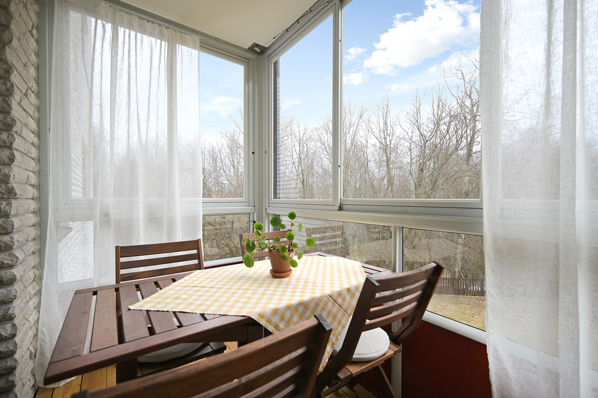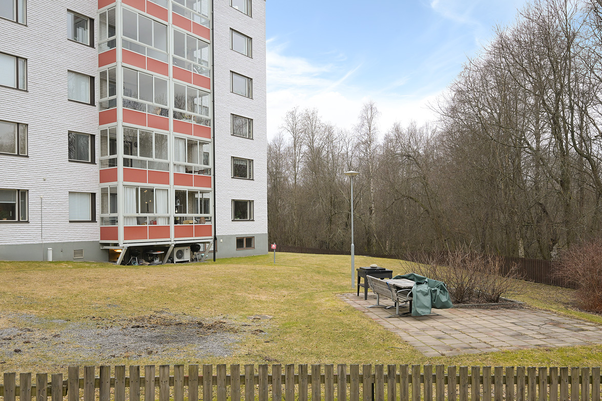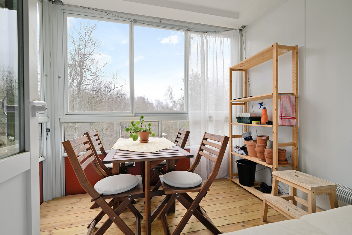 Balkong, uteplats och bilplats