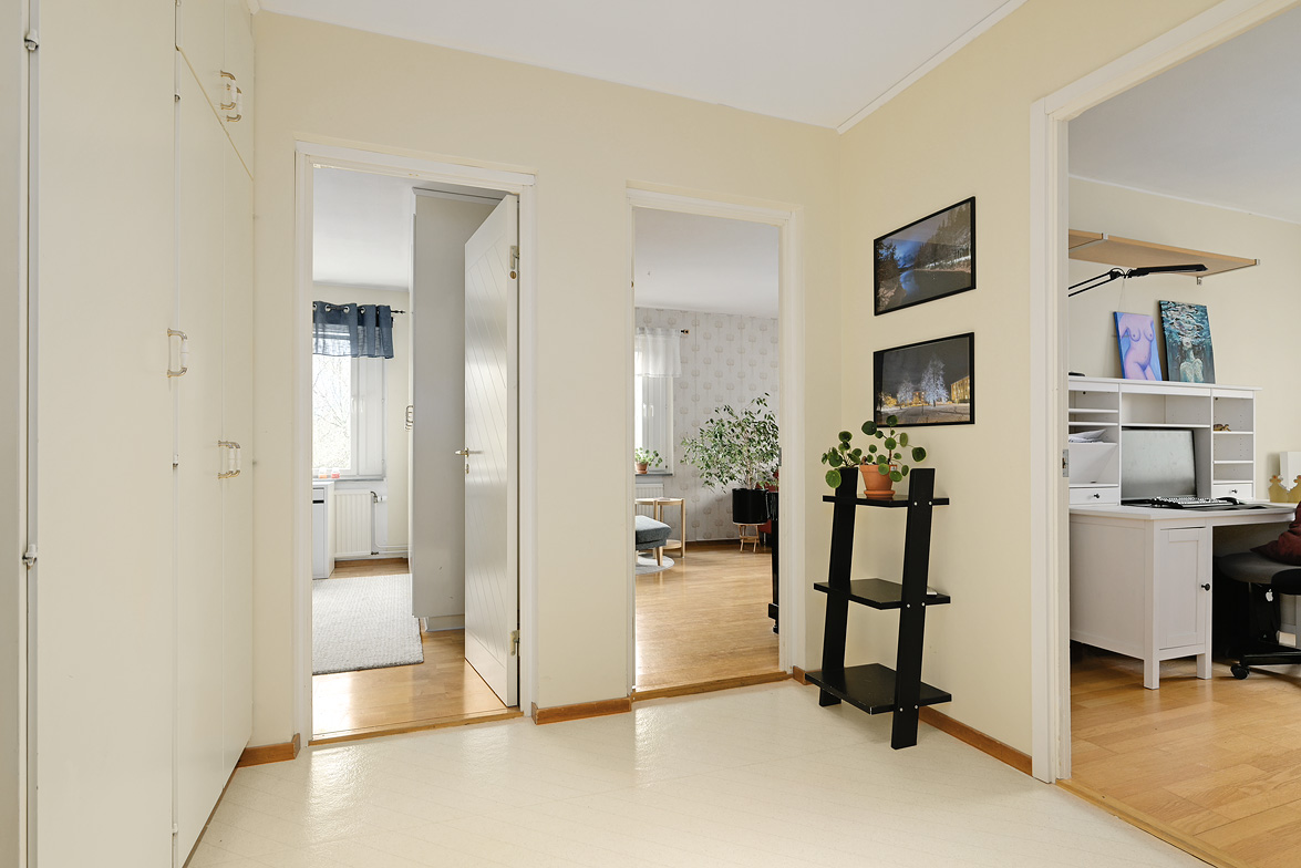 Välkommen till en trivsam, ljus och välbehållen lägenhet med smart planlösning och stora möjligheter! Här erbjuds ett boende som kan anpassas efter dina behov – oavsett om du vill skapa ett kostnadseffektivt boende genom uthyrning, ordna generationsboende, bedriva verksamhet eller helt enkelt njuta av de generösa ytorna själv. Bostaden är belägen i en mycket välskött och ekonomiskt stark förening med välkomnande grannar. Den låga belåningsgraden om endast ca 2 000 kr/kvm skapar trygga boendeförhållanden och möjliggör en mycket låg månadsavgift samt fördelaktiga parkeringskostnader. För närvarande finns dessutom en carport ledig för endast 270 kr/mån. I huset finns även en nybyggd och fräsch relaxavdelning högst upp samt träningsrum – en vardagslyx utöver det vanliga! Läget på attraktiva Väst på stan är svårslaget, med både älven och Tvärån som närmsta granne. Här bor du med vacker grönska, vatten och härliga promenadstråk precis utanför dörren. Invändigt möts du av en rymlig och välkomnande hall med goda förvaringsmöjligheter. Vardagsrummet är luftigt och erbjuder gott om plats för större soffgrupp, matplats eller annan möblering efter behov. Det dubbelsidiga köket har generösa arbetsytor och plats för matbord, härifrån nås även den rymliga inglasade balkongen med utsikt mot den pittoreska Tvärån. Bostaden rymmer tre sovrum, varav två i huvuddelen. Samtliga har plats för större säng, förvaring och exempelvis skrivbord. Här finns även ett relativt nyrenoverat badrum samt en separat wc. En extra hall finns vid entrén till den möjliga uthyrningsdelen, vilket skapar ytterligare flexibilitet. Detta är ett hem för dig som söker ett attraktivt läge, en stabil förening med låga kostnader och ett boende som erbjuder både komfort och möjligheter. Här har du äntligen hittat rätt!