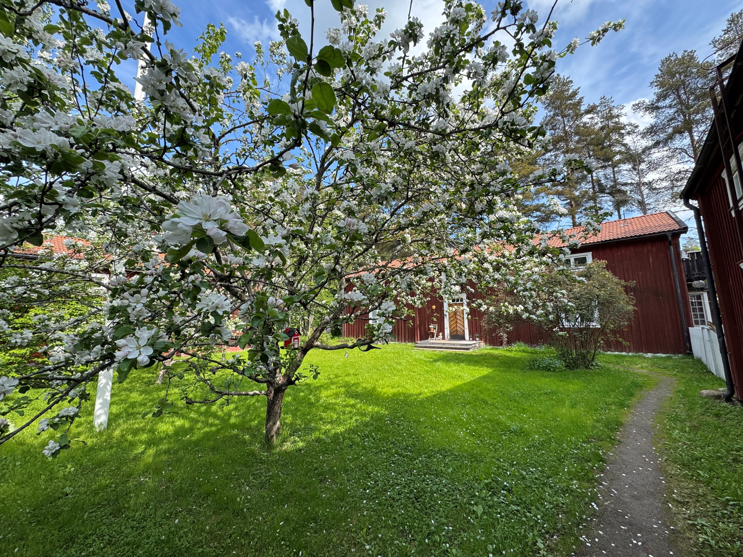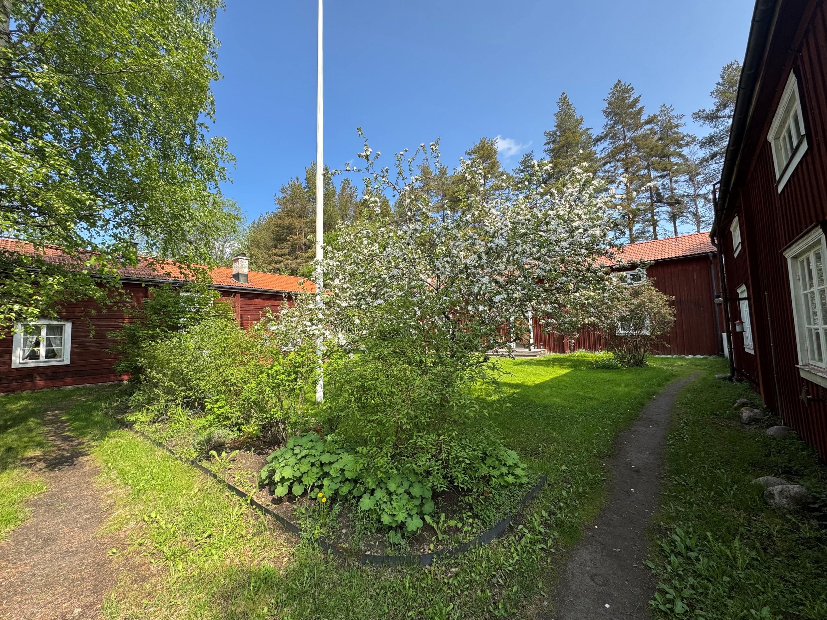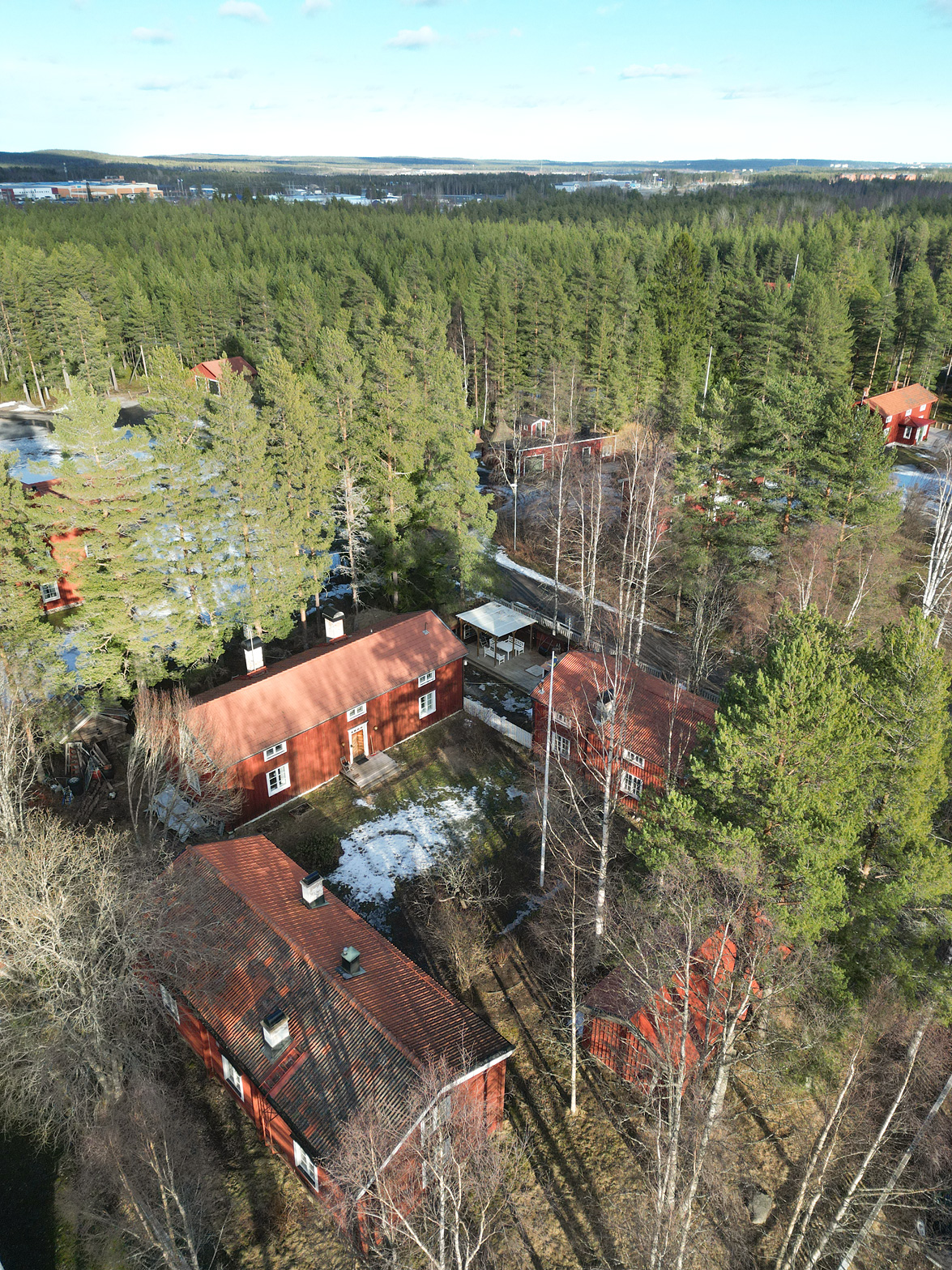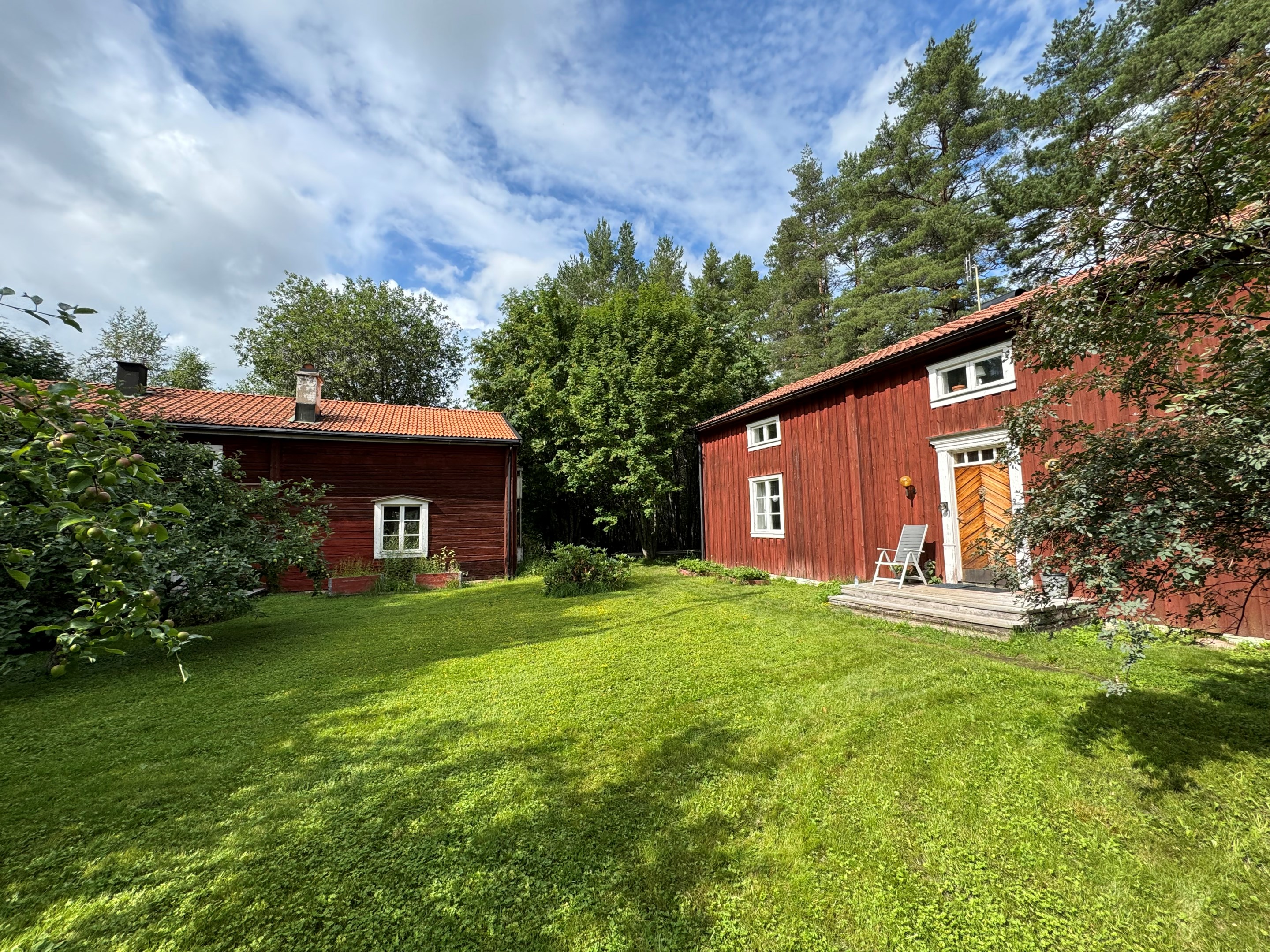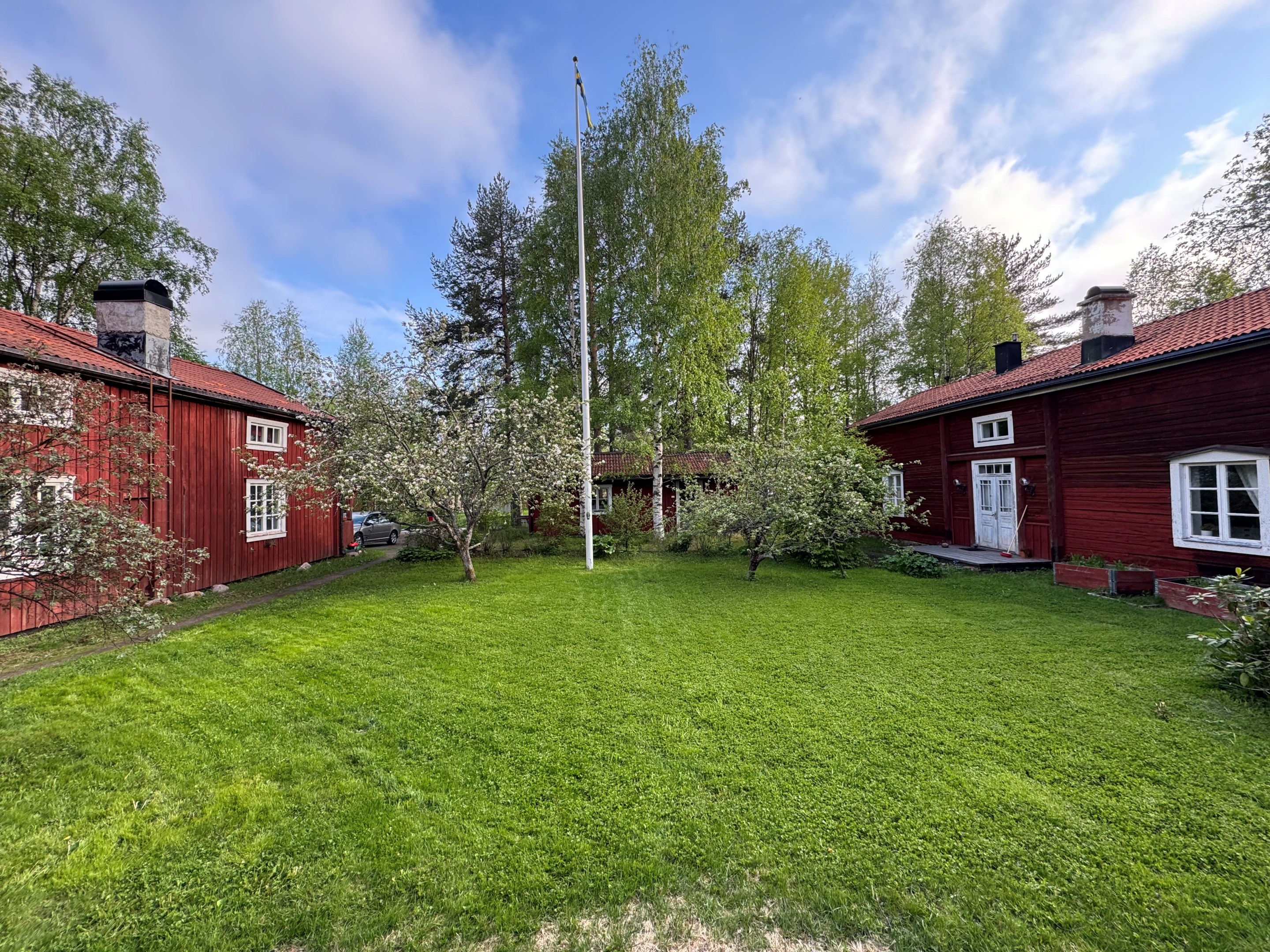 Välkommen till en extraordinär gårdsfastighet med anor från 1700-talet – en sällsynt möjlighet att förvärva ett stycke levande historia där tidlös arkitektur möter moderna bekvämligheter. Här samspelar karaktär, kvalitet och generösa ytor i en harmonisk helhet, där varje detalj vittnar om omsorg, hantverksskicklighet och en genomgående hög standard. De två första Västerbottensgårdarna projekterades och uppfördes av den välrenommerade arkitekten Bengt Lidström, vilket ytterligare förstärker fastighetens unika och kulturhistoriska värde. Trots fastigheten ursprung och historia finns ingen K-märkning eller dylikt vilket ger förutsättningar till att kunna forma bostäderna efter egen smak och tycke! Den inramade gårdsbilden skapar ett privat och rofyllt gårdstun där fyra byggnader tillsammans omfamnar och skyddar miljön. Här finns huvudbostad, två gårdshus samt ett fristående garage som idag nyttjas som snickarbod. Tillsammans bildar de en harmonisk helhet med tydlig gårdskaraktär och en känsla av avskildhet. Den insynsskyddade tomten är smakfullt disponerad med äppelträd, prunkande planteringar och sol från morgon till kväll. Här finns även en trivsam uteplats med altan och pergola – en självklar plats för långa sommarkvällar och umgänge i en avskild och naturnära miljö. Detta är ett boende som erbjuder en ovanlig flexibilitet och potential. Oavsett om du söker ett exklusivt generationsboende, en representativ plats för verksamhet eller en fastighet med attraktiva uthyrningsmöjligheter, finns här alla förutsättningar för ett liv utöver det vanliga. Huvudbostaden välkomnar med en generös och inbjudande hall som leder vidare till ett rymligt vardagsrum med öppen spis – en naturlig samlingspunkt med varm och ombonad atmosfär. Här finns även ett arbetsrum eller extra sovrum, en praktisk wc samt ett smakfullt kök med generösa arbetsytor och modern maskinpark. Den nyligen renoverade tvättstugan är både praktisk och estetiskt tilltalande. På övre plan väntar ett stämningsfullt allrum med öppen spis, upp till fyra sovrum samt ett badrum – perfekt anpassat för både familjeliv och gäster. Det första gårdshuset erbjuder ett charmfullt och självständigt boende med välkomnande hall, wc, ett rymligt vardagsrum med kakelugn som skapar en klassisk och ombonad känsla, samt ett funktionellt kök. Här finns även badrum, sovrum och tvättstuga. Övervåningen rymmer ett stort sovrum samt en öppen yta som med lätthet kan anpassas efter önskemål, exempelvis till ytterligare sovrum, ateljé eller arbetsrum. Det andra gårdshuset byggt ovanpå ett dubbelgarage kompletterar helheten med ytterligare boendemöjligheter och erbjuder en enklare hall, ett stort allrum med öppen spis, kök, sovrum samt wc med kombimaskin. Genom hela fastigheten löper en röd tråd av genuina materialval och tidstypiska detaljer – breda plankgolv, synliga timmerväggar och vackra takbjälkar – vilket skapar en varm, exklusiv och autentisk känsla. Fastigheten är dessutom energieffektiv med bergvärme som ger låga driftskostnader och har resulterat i energiklass B, vilket möjliggör fördelaktigt grönt bolån. Alla ved-spisar samt kakelugn är besiktigade och godkända. Här bor du i ett stillsamt och privat läge utan genomfartstrafik – en plats där lugnet, rymden och historien får ta plats, samtidigt som du erbjuds alla moderna bekvämligheter.