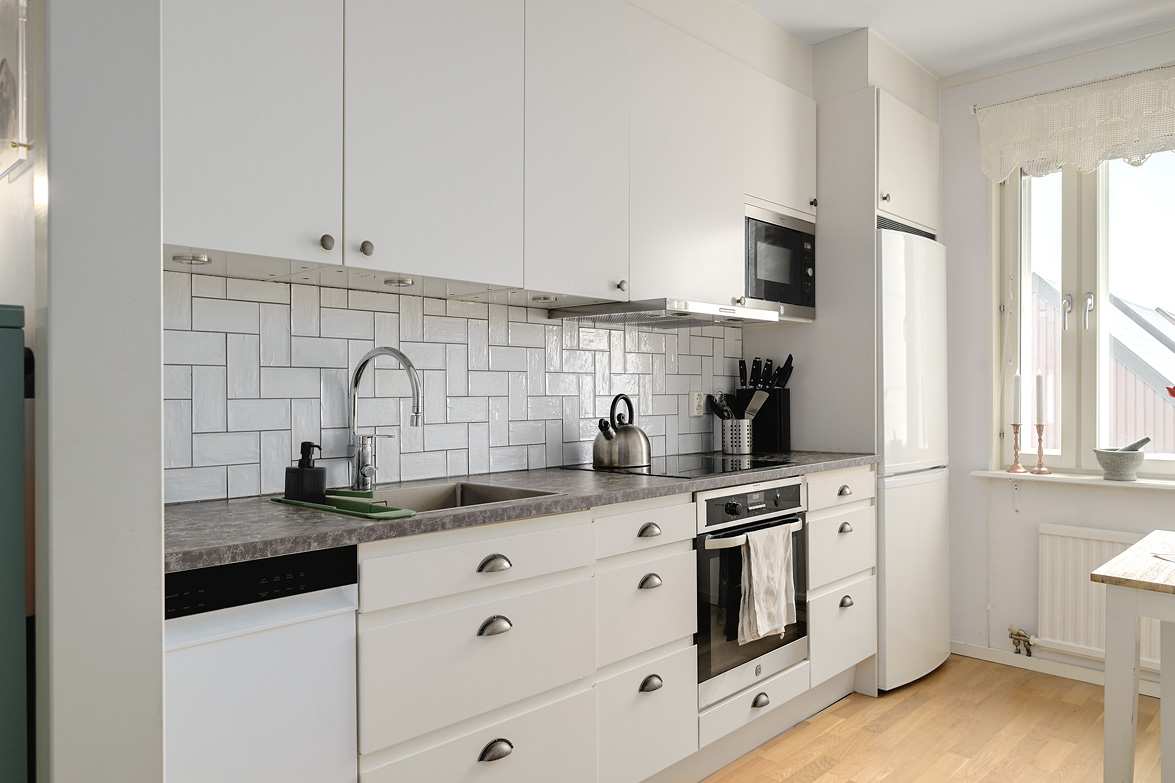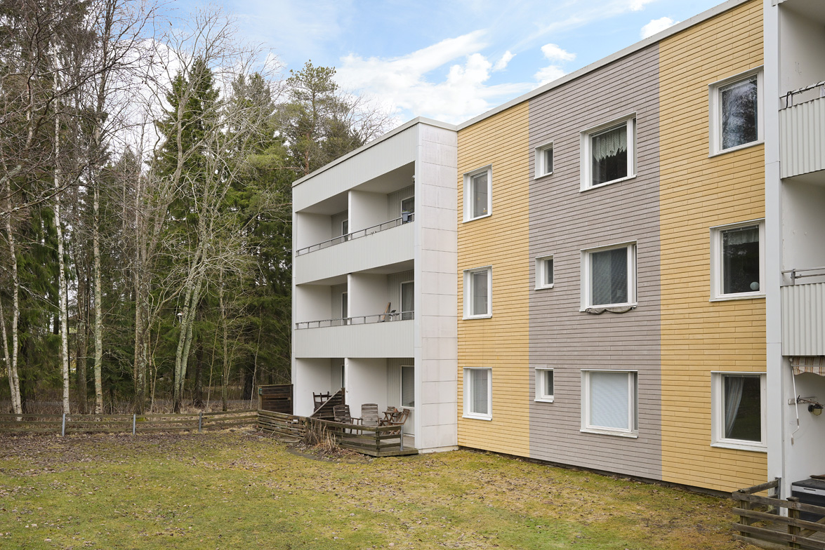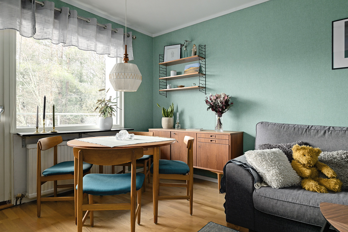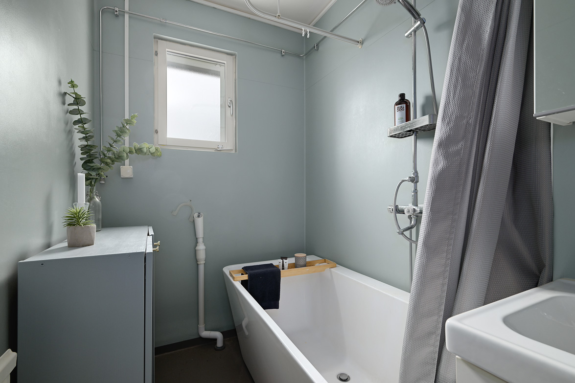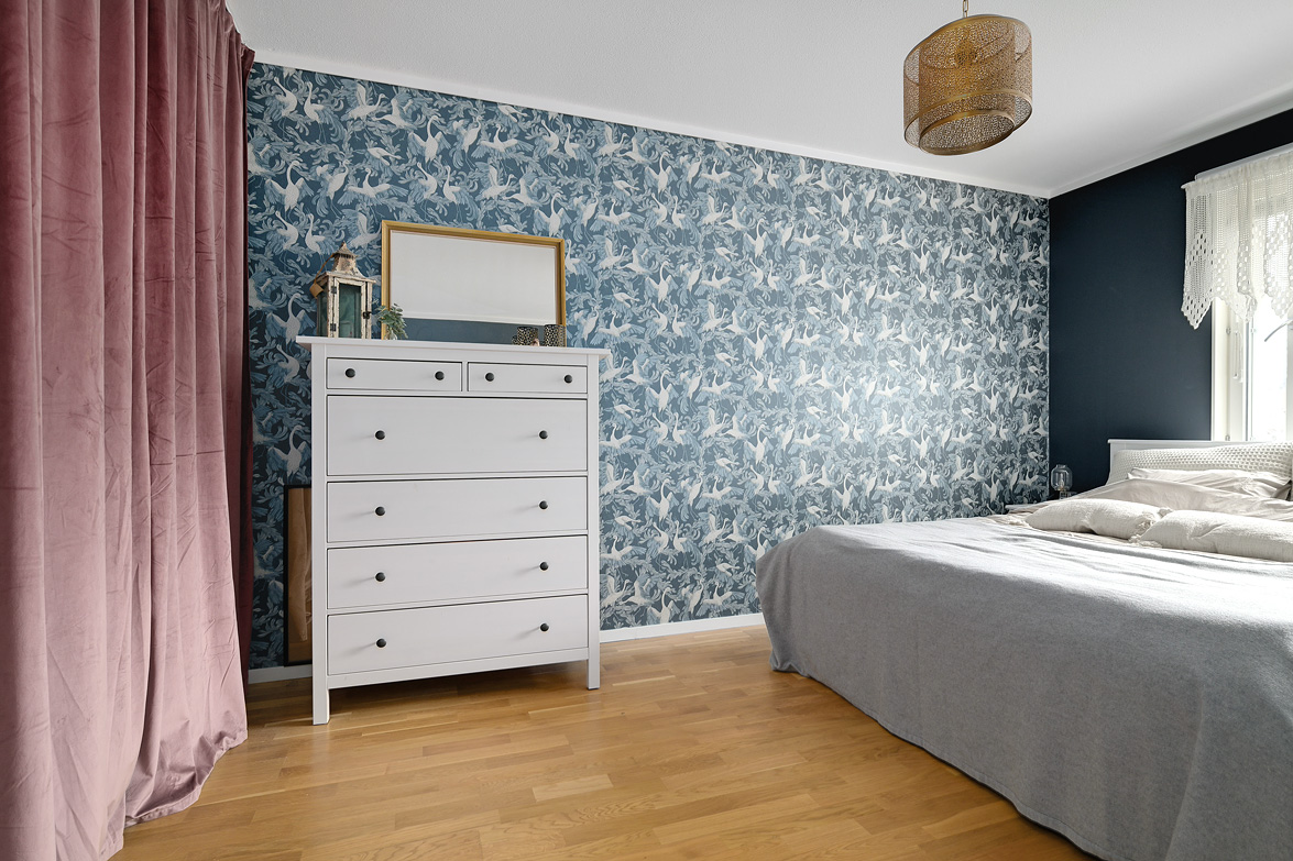 Hall Välkomnande hall med plats för avhängning av ytterkläder samt förvaring i garderober. I anslutning finns även en klädkammare som ger extra förvaringsutrymme. Kök Praktiskt kök med goda arbetsytor och förvaringsmöjligheter. Köksinredningen består av ljusa skåpluckor i kombination med gråmelerad bänkskiva som ger ett mjukt och enhetligt uttryck. Ovan arbetsbänken sitter ett ljust kakel som stänkskydd. Köket erbjuder gott om förvaring i både över- och underskåp samt bra med lådförvaring. Arbetsbänken erbjuder generösa ytor för matlagning. Maskinparken består av spis med ugn, fläkt, kyl/frys samt diskmaskin. Vid fönstret finns plats för matbord. Vardagsrum Rymligt och lättmöblerat vardagsrum med plats för soffgrupp, tv-möbel och eventuell matplats. Härifrån nås bostadens balkong. Balkong Balkong med plats för utemöbler och möjlighet att skapa en trivsam uteplats med utsikt över närområdet. Sovrum Sovrum i bra storlek med plats för dubbelsäng och förvaring. Lugn placering i bostaden. Badrum Badrum utrustat med wc, handfat med kommod, spegelskåp samt badkar med dusch. Fönster ger naturligt ljusinsläpp.