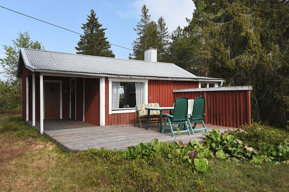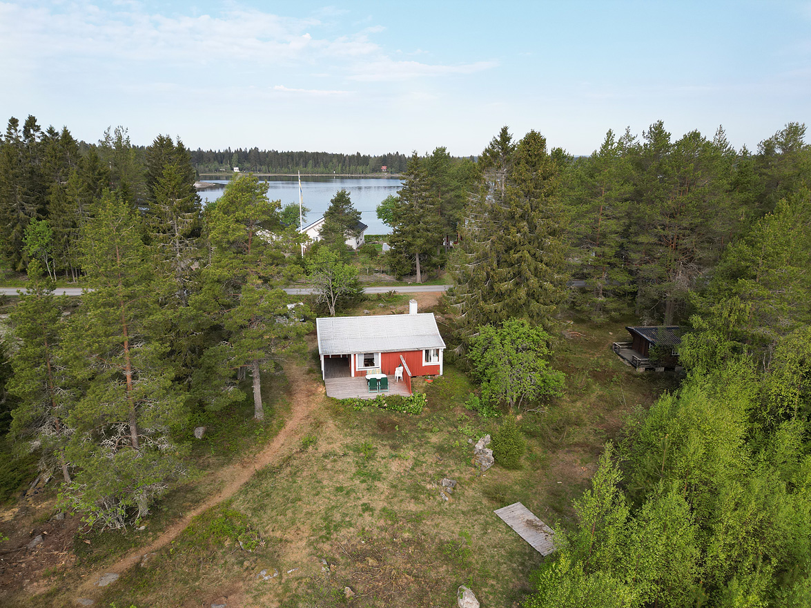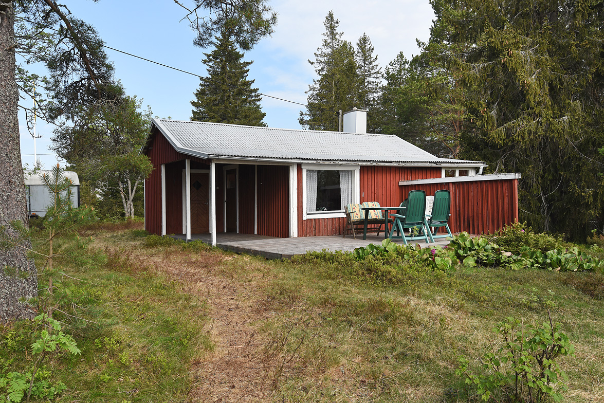 Äldre huvudbyggnad ca 40 kvm. Överbyggd entré. Allrum med plastmatta, matplats och allrumsdel med havsutsikt. I allrummet finns en fungerande öppen spis. Från allrummet har man utsikt ned mot havsviken. Kök med spis och kyl/frys, i köket finns en matkällare som nås via en lucka i golvet. . Litet förråd. Vid entrén finns ett separat rum med duschplats och portapotti. På gården finns också en separat sovstuga på ca 20 kvm, denna är byggd på 90-talet. En hel del lösöre kommer att ingå i köpet.
