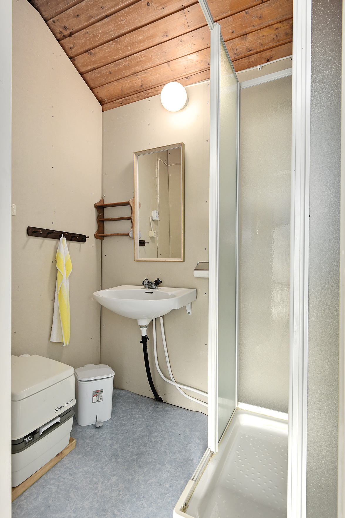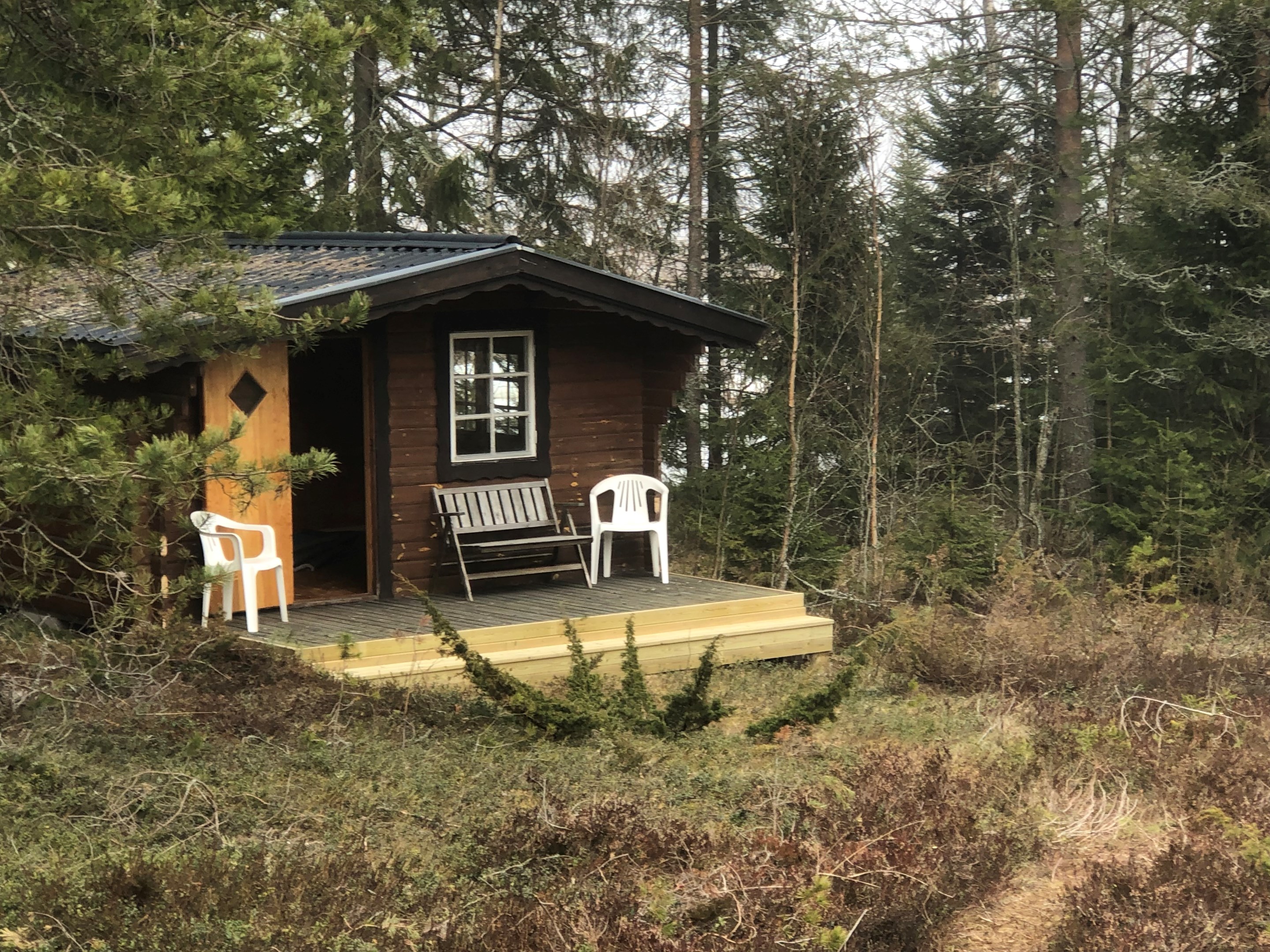 20 Kvm sovstuga. Båthusnära vattnet. Ovan detta ett förråd.