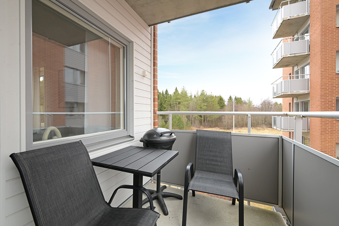 Balkong, uteplats och bilplats