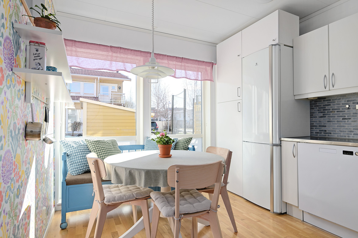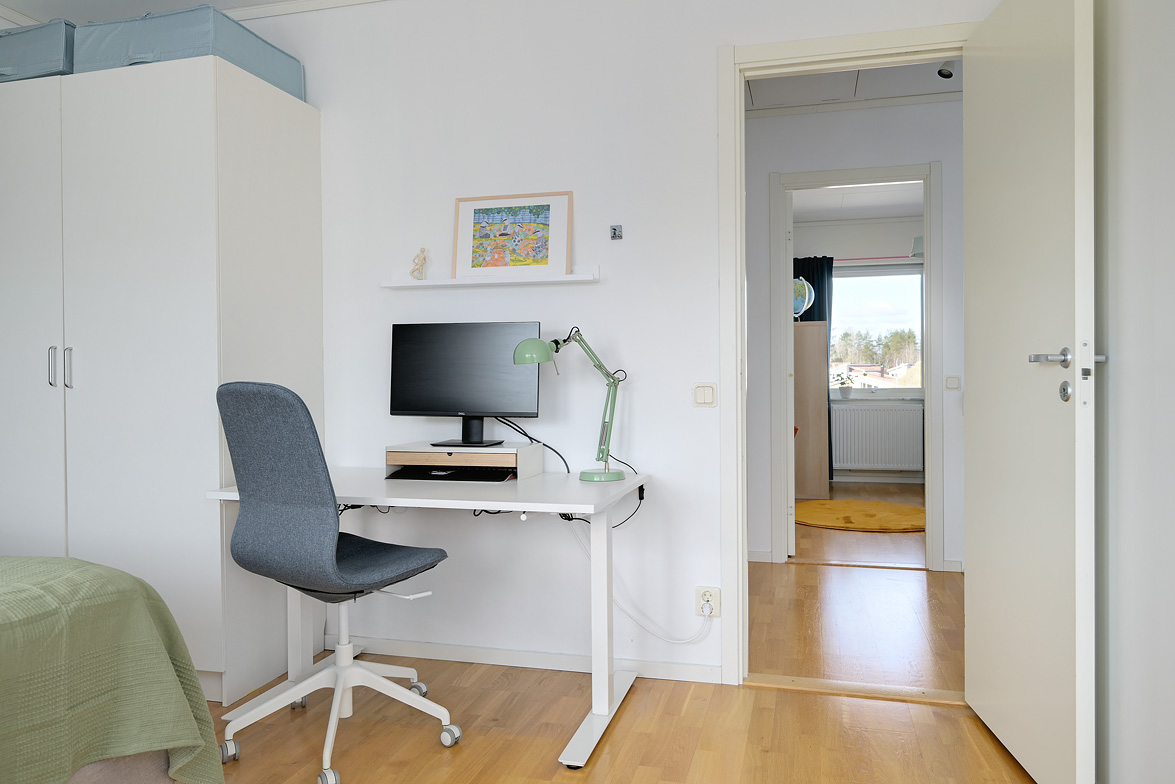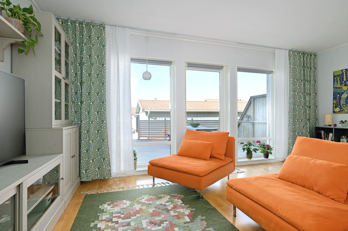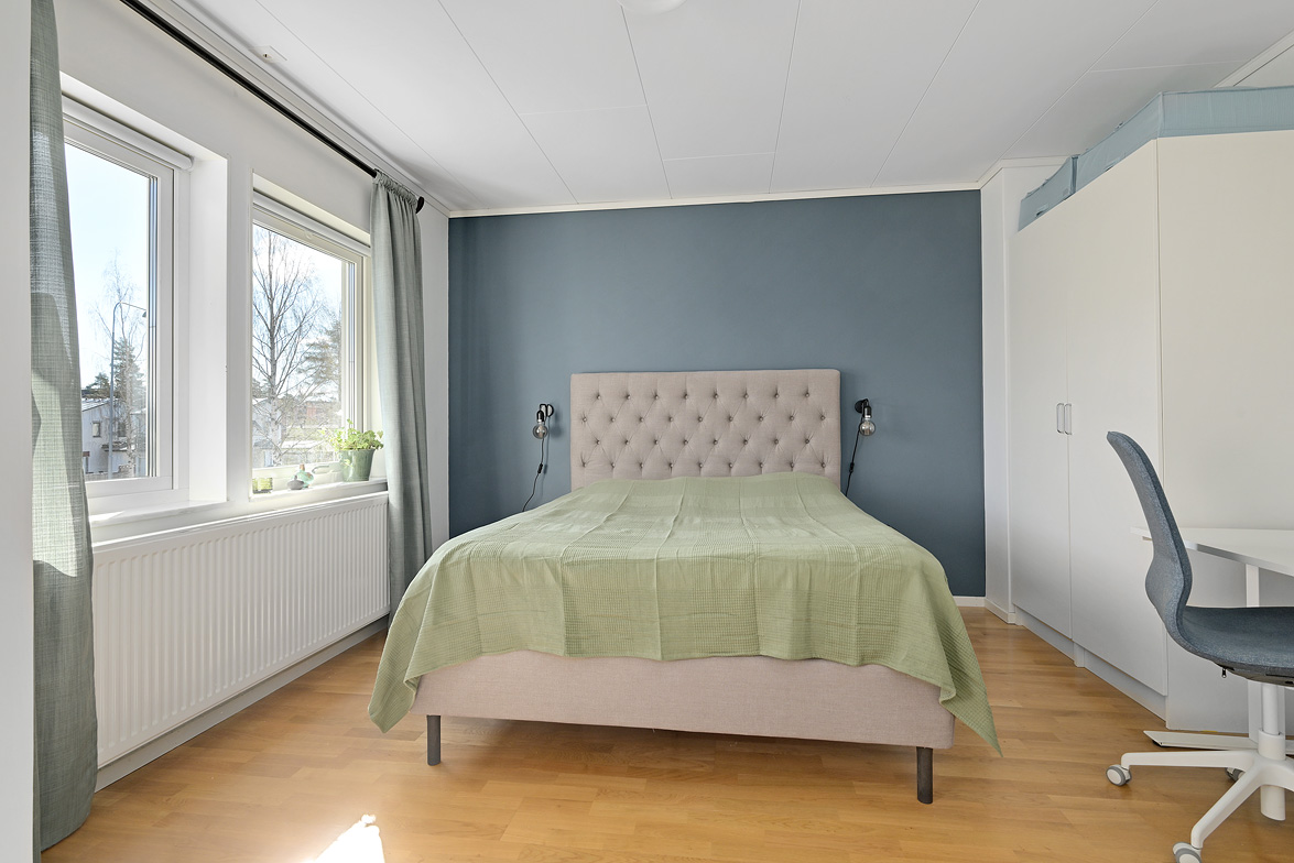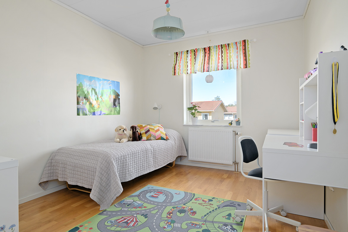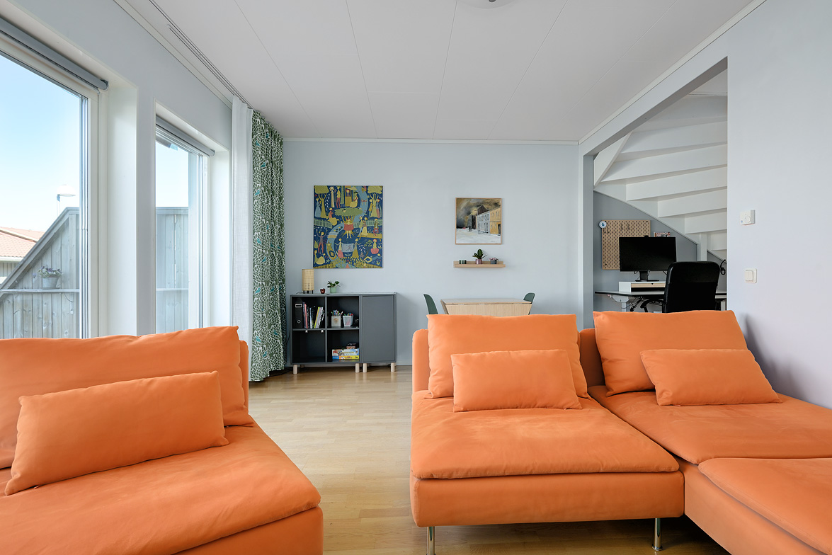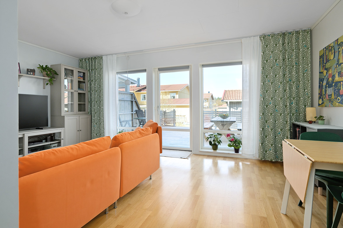 Trivsamt och välplanerat radhus med två uteplatser i populärt område Välkommen till detta ljusa och välplanerade radhus som erbjuder ett bekvämt och harmoniskt boende i ett omtyckt område. Här bor du i en välskött bostad som genom åren genomgått flera renoveringar – perfekt för dig som söker ett hem att trivas i från första stund. Redan i hallen möts du av ett stilrent klinkergolv och generösa avhängningsmöjligheter som gör vardagen smidig. Vidare in i bostaden finner du ett rymligt och fräscht kök med modern maskinpark, gott om arbetsyta och plats för ett större matbord – en naturlig samlingspunkt för familj och vänner. Det luftiga vardagsrummet erbjuder gott om utrymme för en stor soffgrupp där hela bekantskapskretsen får plats, samt möjlighet till ytterligare möblering såsom matplats eller hemmakontor. Härifrån nås bostadens ena uteplats – den större modellen – som är generöst utbyggd och ger plats för både loungemöbler, matgrupp, grill och odlingar. En perfekt plats för avkoppling och sociala tillställningar. Bostaden har två stilrena badrum med kakel och klinker, praktiskt fördelade med ett på vardera plan. På övre plan finner du även tre rymliga sovrum med goda förvaringsmöjligheter. Det största sovrummet erbjuder extra komfort med både klädkammare och egen balkong. Här får du ett hem som kombinerar funktion, komfort och livskvalitet – med närhet till allt du behöver. Till bostaden hör även en carport med intillliggande förråd. Varmt välkommen på visning! Renoveringar: 2019: - Målat fasad 2021: - Nya vitvaror; kyl/frys, spis, köksfläkt (Mats Åke på Teg) - Ny fasadbelysning framsida och baksida (Nordelektro) - Renovering av trappan (Sandström snickeri) 2025: - Renovering badrum (Haga bygg) - Utökat ytor på vinden för ytterligare möjlighet till förvaring (Haga bygg) - Byta av tegelpannor (Haga bygg) 2026: - Nybyggt cykelförråd med förrådsdel (Haga Bygg) - Ny tvättmaskin Mellan 2021 och 2026 har fjärrvärmesystemet underhållits och löpande delar har bytts ut eller uppdaterats (Johanssons rör). Övrigt: Det finns ett rymligt kallförråd i separat länga vid parkeringarna. I detta hus finns även återvinning av paper, plast, tidning, metall, lampor, batterier samt brännbart. Till huset finns en plats carport. I dagsläget är den el-säkrad för att kunna ladda en hybrid bil. Utredning om eventuell installation av laddstolpe pågår inom föreningen. På samfälligheters mark finns några bärbuskar, hallonplantor och en gräsmatta. Gräsmattan nås enkelt från baksidan av huset via altanen.