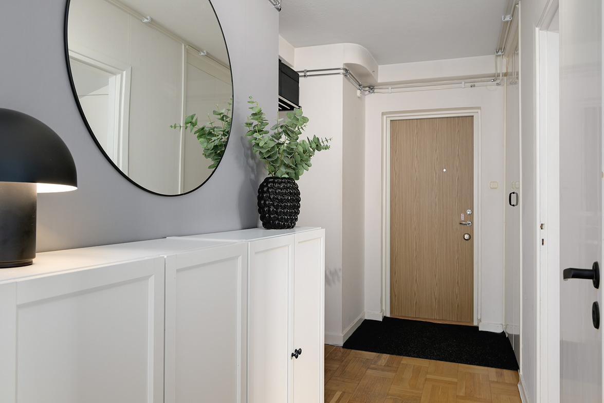 Förråd antingen i källaren eller på vinden. Morgontidning i fack vid lägenhetsdörr, övrigt i låst postfack vid entrédörr.