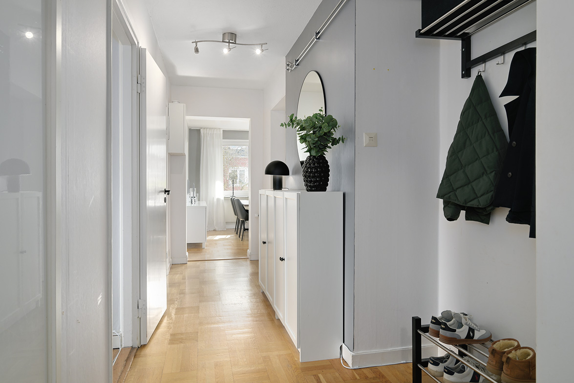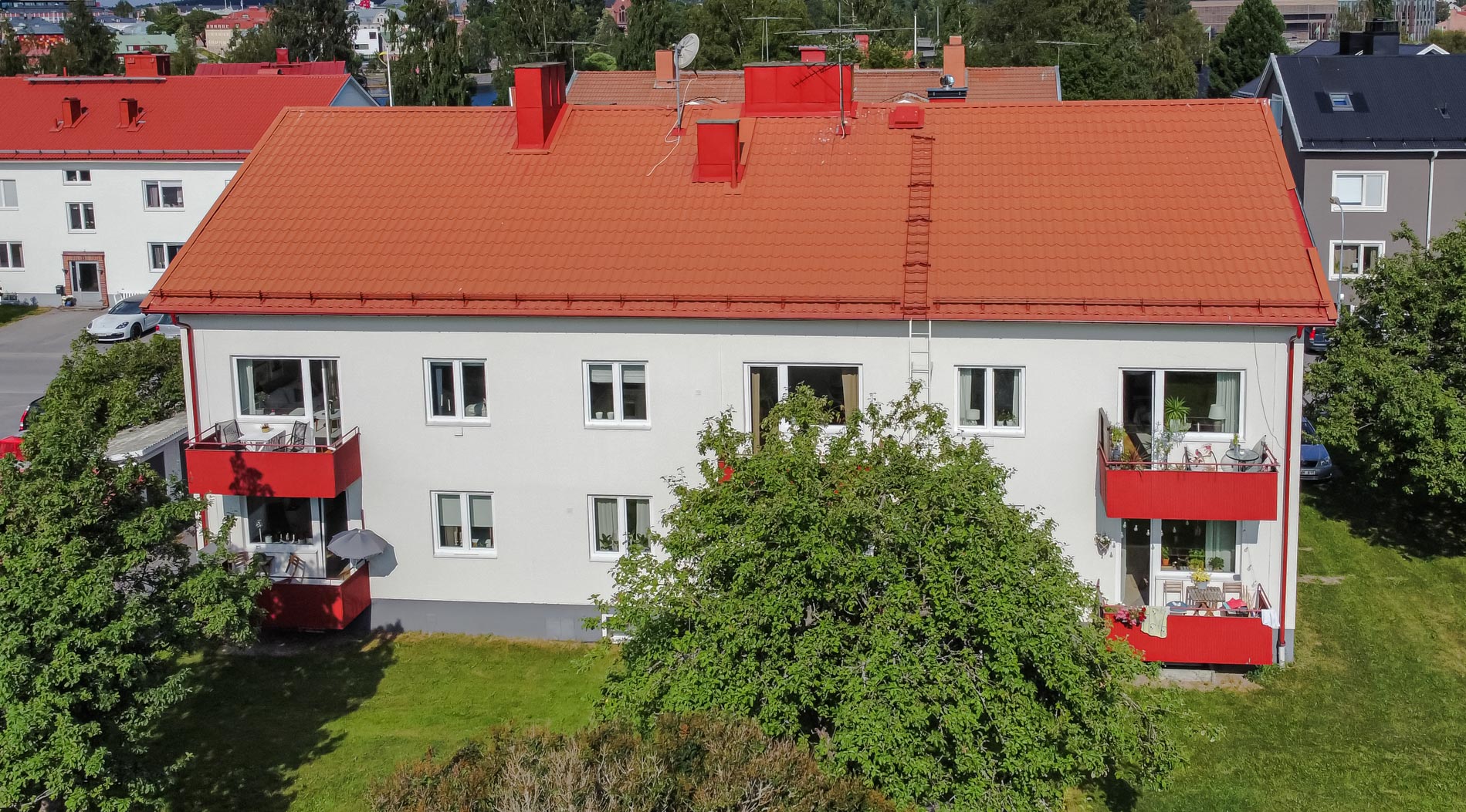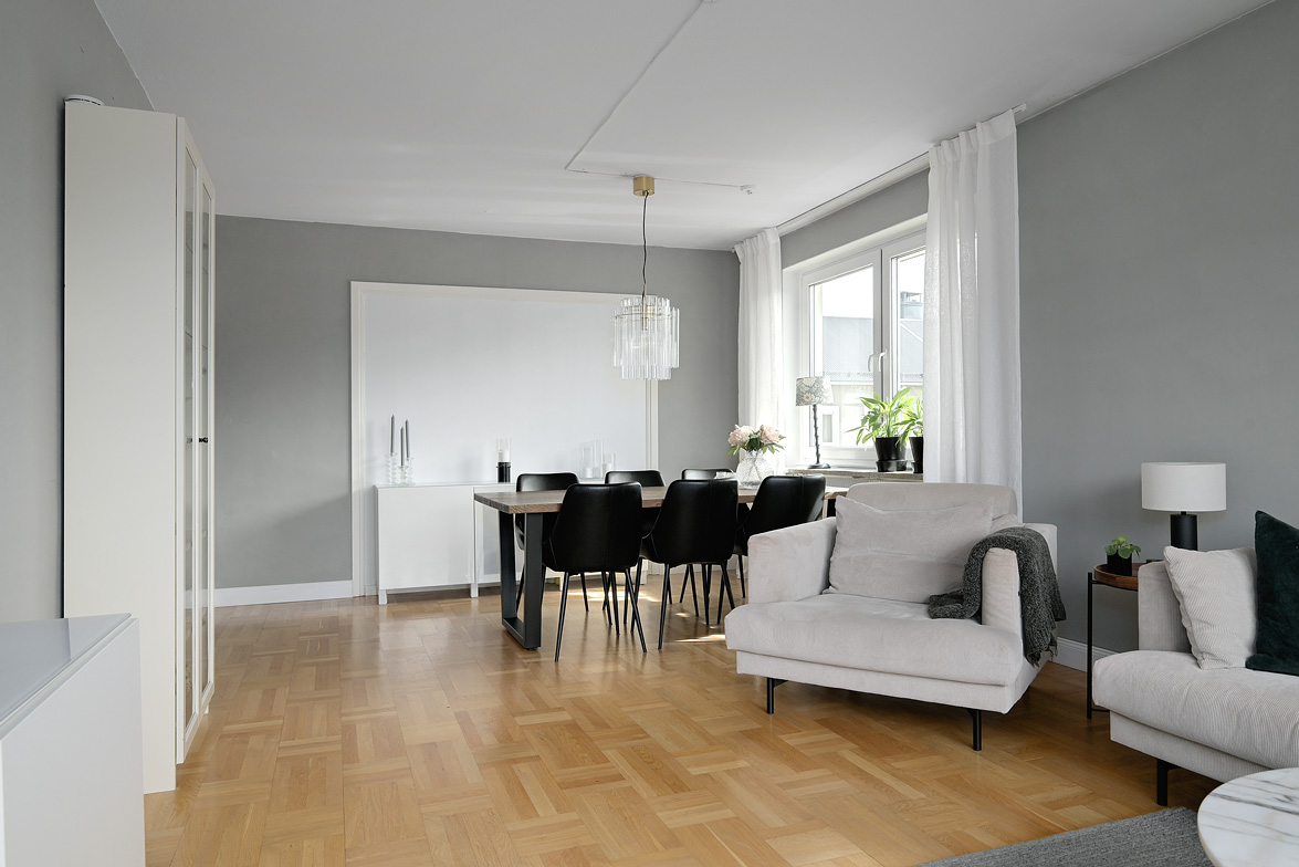Välplanerad gavelfyra med balkong i bästa söderläge – attraktivt läge på Teg Varmt välkommen till denna ljusa och mycket välplanerade fyrarummare med gavelläge, vilket ger ett fantastiskt ljusinsläpp från flera väderstreck. Hallen välkomnar med praktisk avhängningsyta, garderober samt ett enhetligt ekparkettgolv som löper vidare genom bostaden och skapar en harmonisk helhet. Bostaden erbjuder ett stilrent och modernt kök med vita skåpluckor, köksö samt rostfria hushållsmaskiner – en perfekt plats för både vardagsmatlagning och sociala tillställningar. Vardagsrummet är rymligt och inbjudande med vackert parkettgolv i ek samt utgång till en härlig balkong i söderläge, där du kan njuta av solen större delen av dagen med utsikt över den trevliga innergården. Vardagsrummet rymmer soffan åt hela bekantskapskretsen samt matbord för hela familjen. Lägenheten rymmer tre generösa sovrum, samtliga med ekparkett och goda förvaringsmöjligheter, vilket gör bostaden idealisk för såväl familjen som den som önskar extra arbets- eller gästrum. Det helkaklade badrummet är fräscht och modernt utrustat med golvvärme, kommod, duschvägg och stilrena materialval. Här bor du med ett centralt och attraktivt läge med närhet till älven, centrala Umeå samt shopping och restauranger i Utopia. Området erbjuder dessutom fina gång- och cykelstråk längs vattnet – perfekt för både motion och avkoppling. En bostad som kombinerar ljus, rymd och ett svårslaget läge – varmt välkommen på visning!